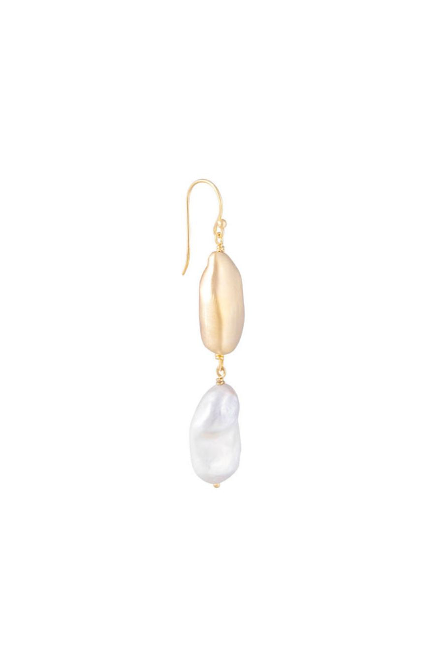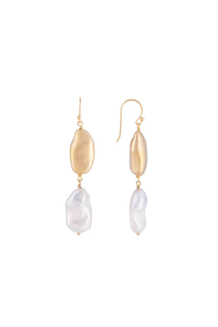 These dazzling show-stopping hook earring showcase 2 magnificent keshi and gold gold coated pearls.