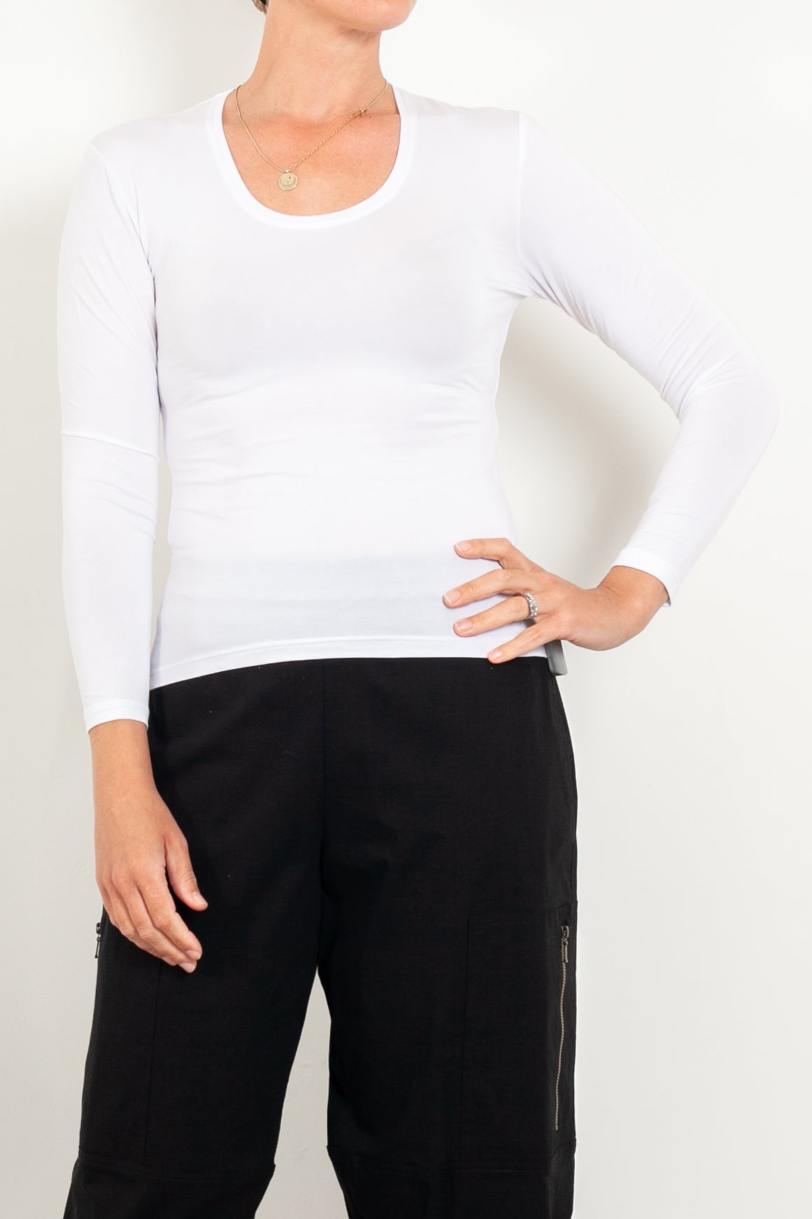 The Scoop Neck Long Sleeve Top by Tani is great worn on its own, or a perfect basic for layering. A fitted top with a soft scoop neckline; created from renewable Beechwood, the soft Tani fabric can be worn year round.