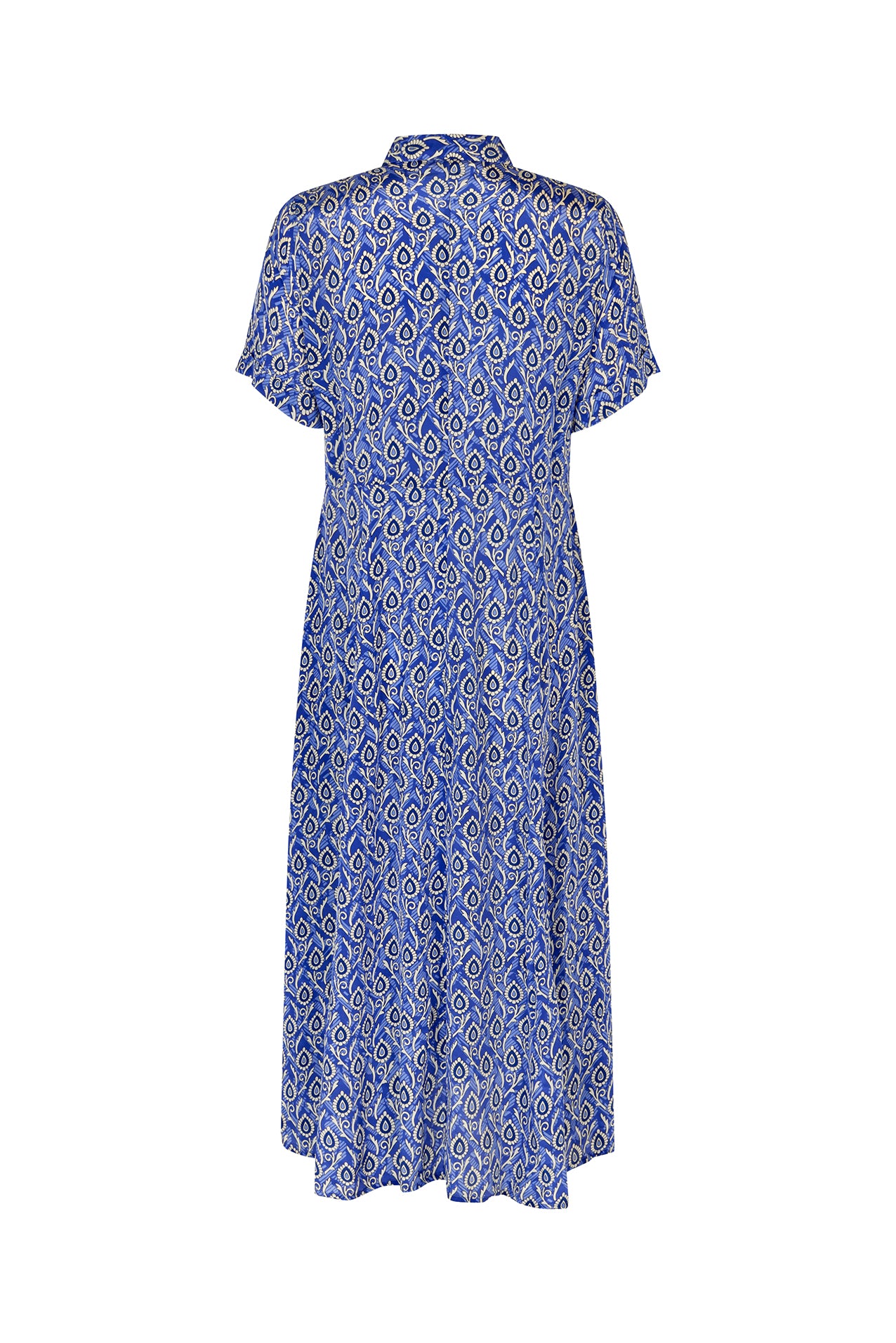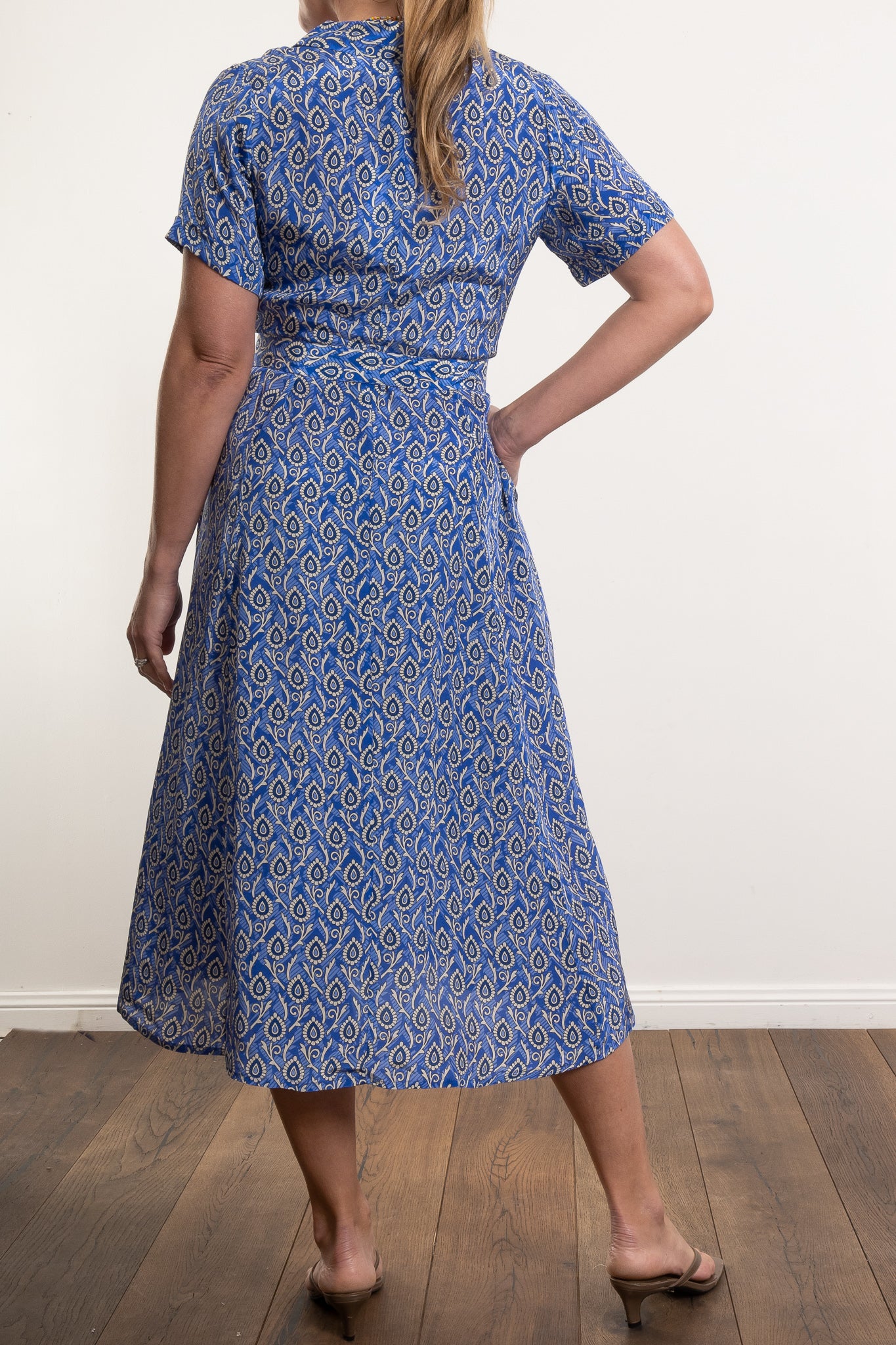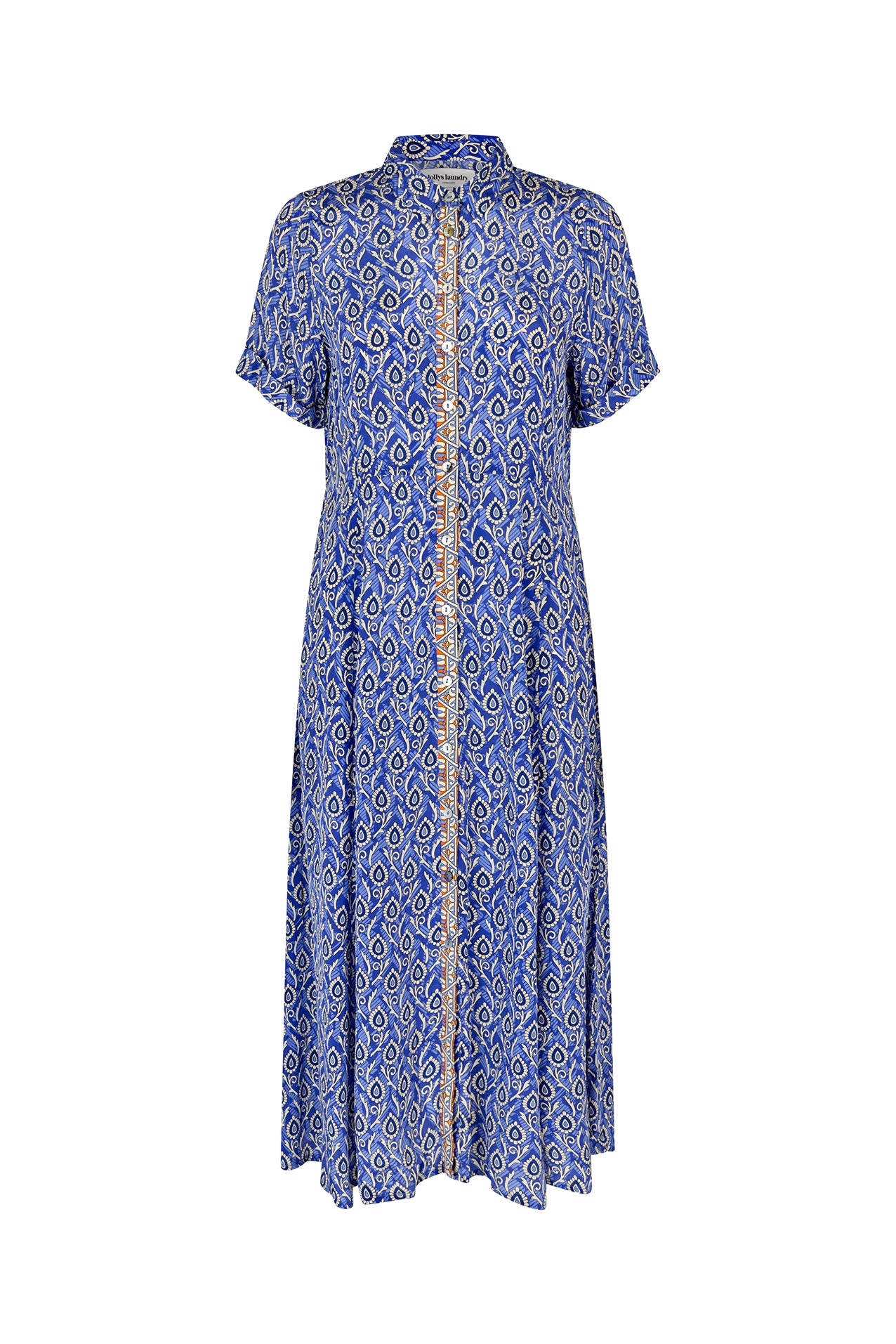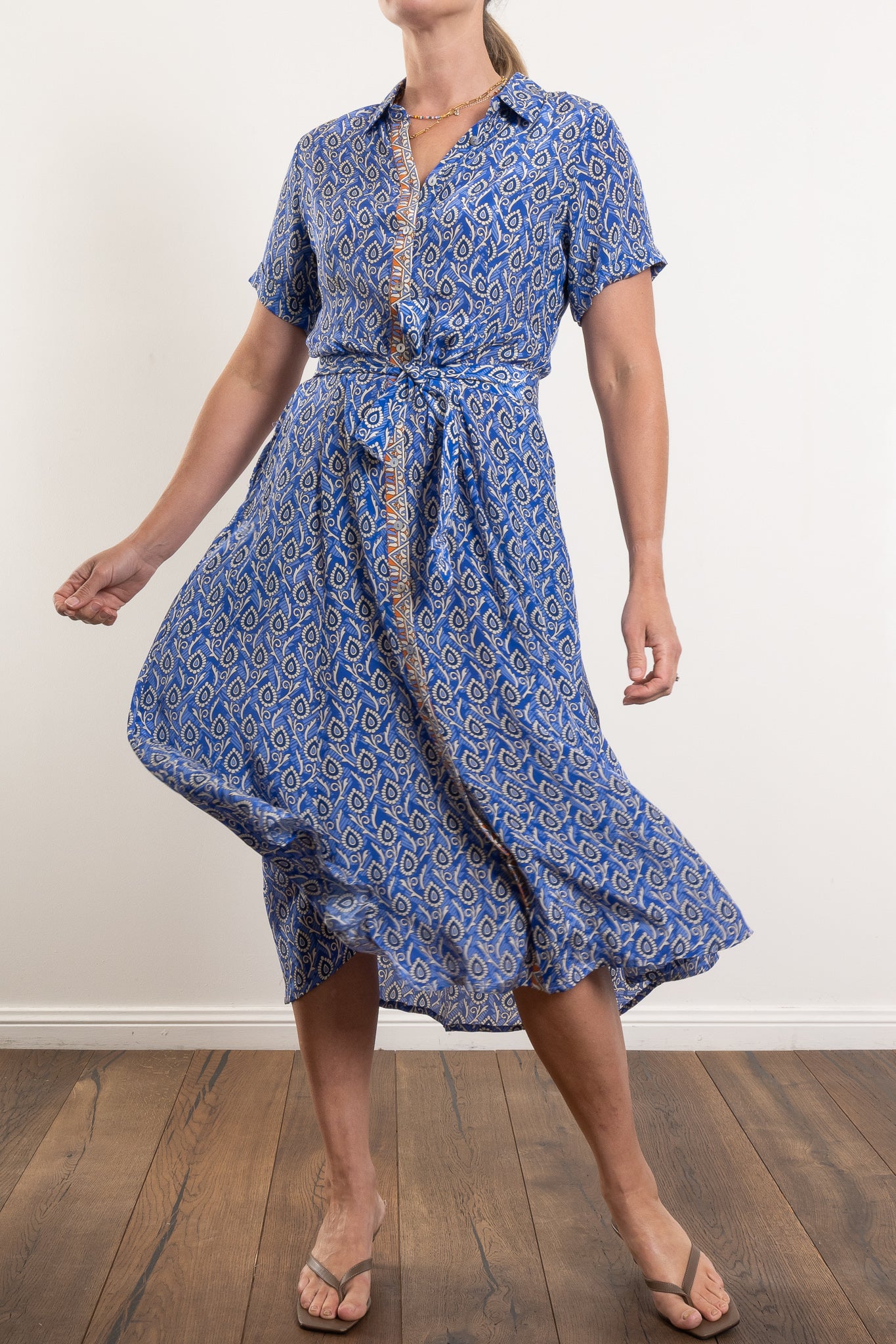 Floaty, fresh and full of personality, the Blake Dress is the ultimate no-fuss throw-on. Crafted from soft, breathable viscose with a relaxed A-line silhouette, it features a striking blue motif and contrast placket trim that adds an artisan touch. With short sleeves and a button-through front, it's equal parts practical and pretty—ready to dress up or pare back depending on the moment.