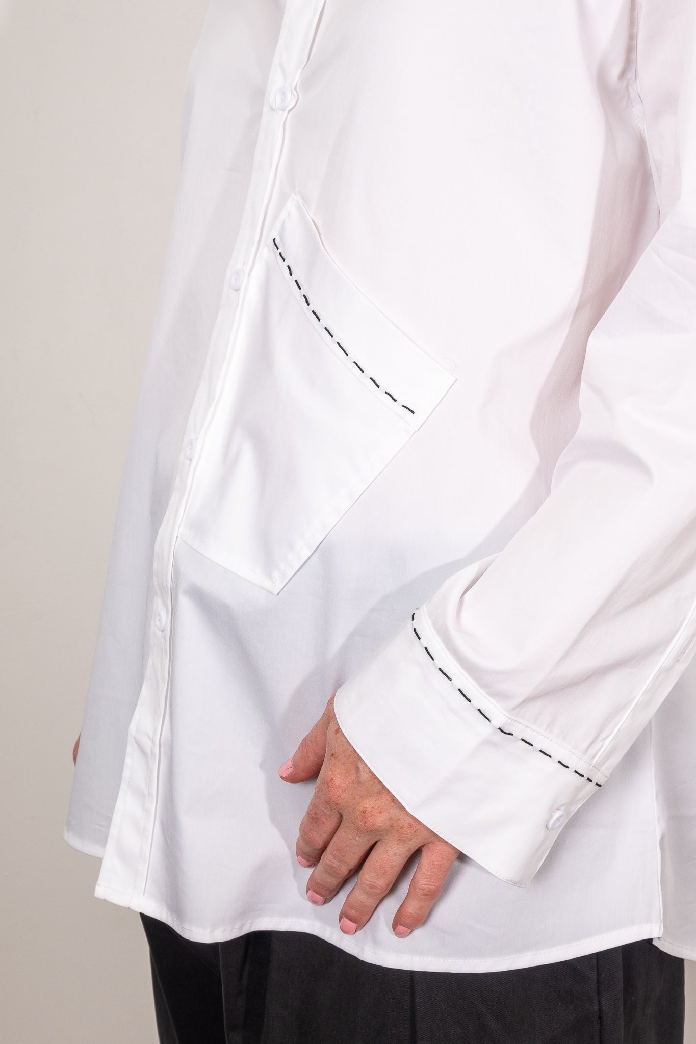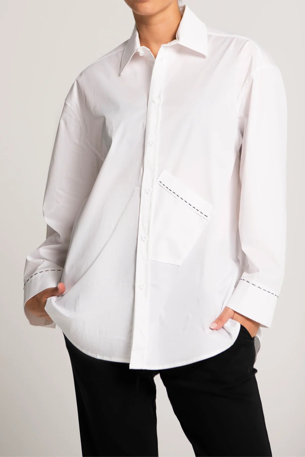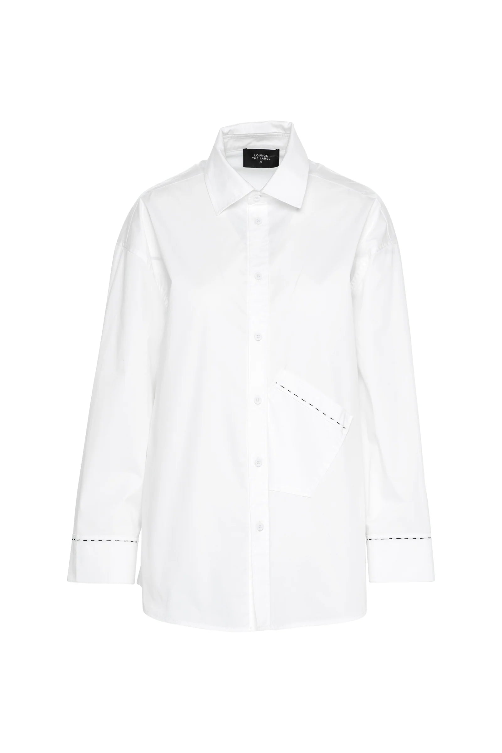 Elevate your style with the Lounge the Label Whistler Shirt. Made from stretch cotton, this top features detailed stitching and cuffed long sleeves for effortless comfort. In a crisp white colour, it's the perfect addition to your wardrobe. Look and feel your best in this versatile shirt!