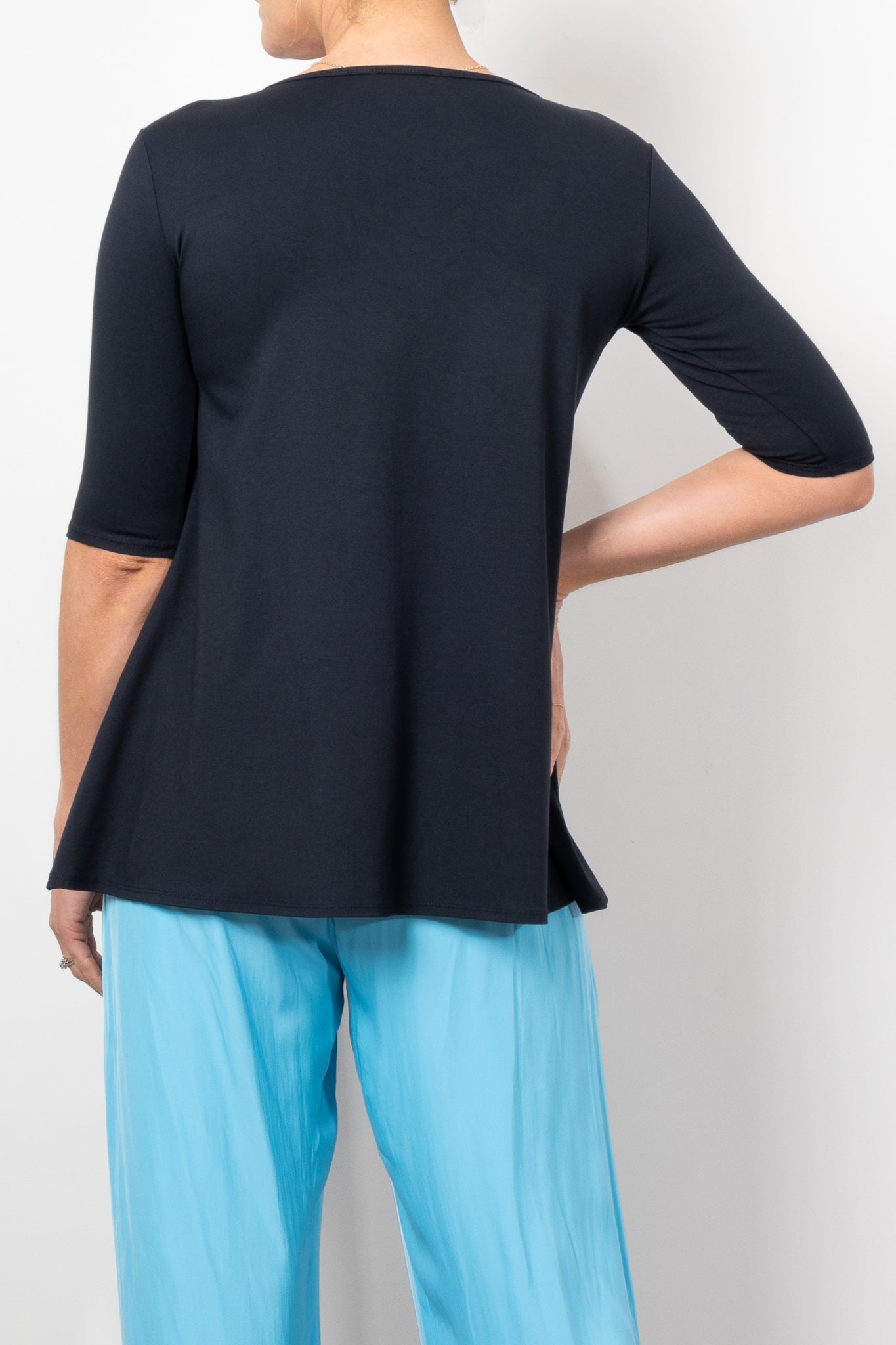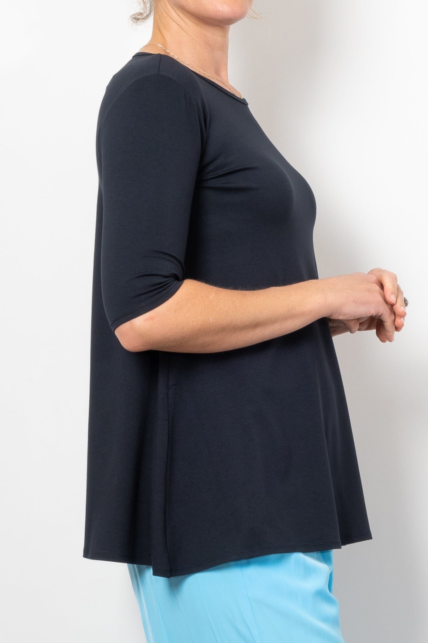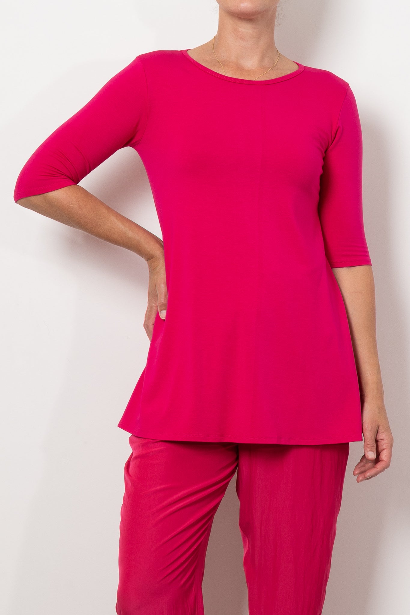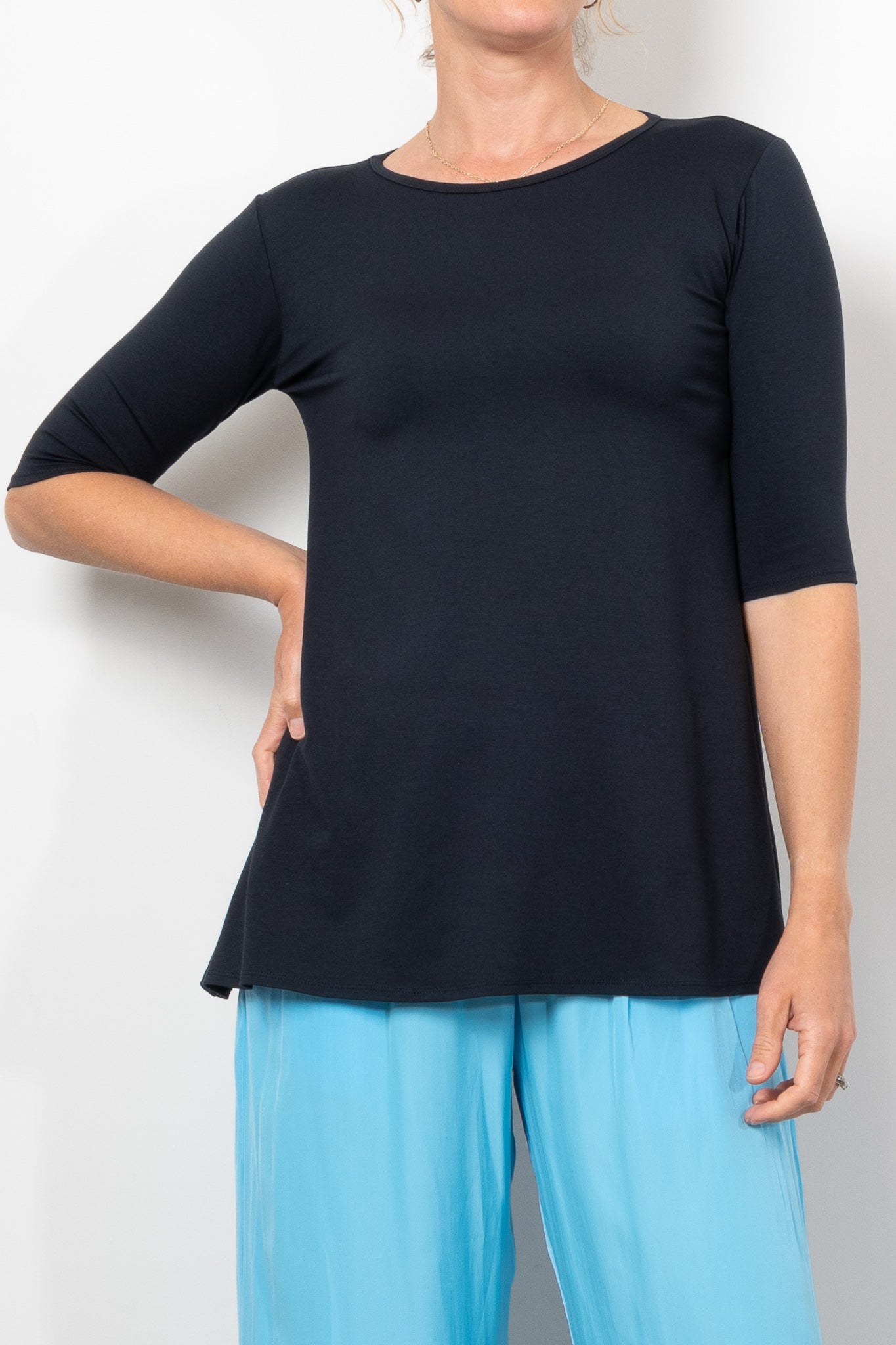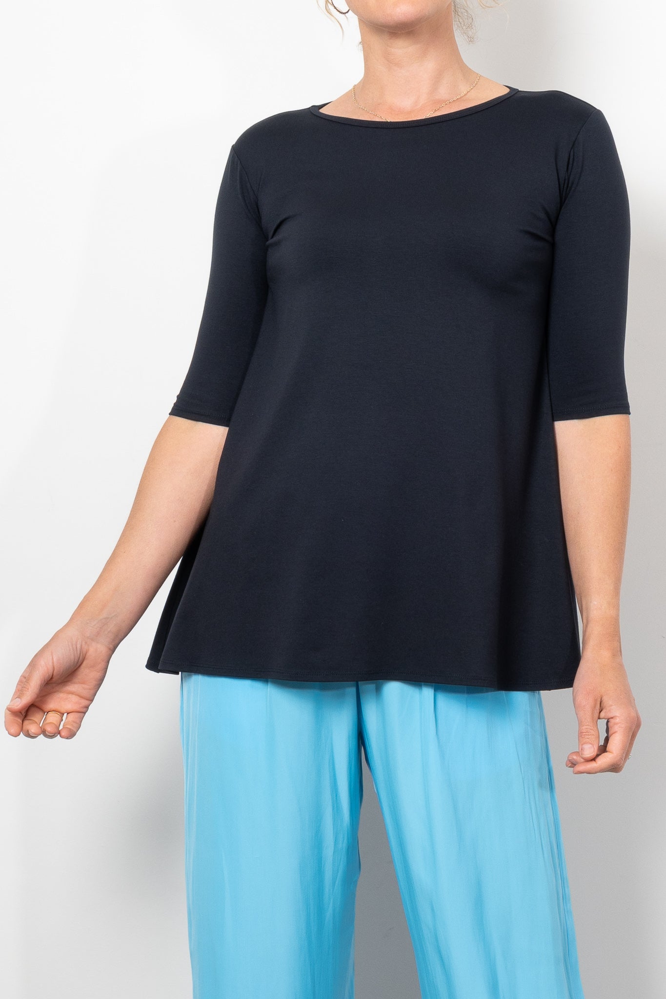 Upgrade your wardrobe staples with the Mela Purdie Elbow Flared Top. Made from soft, stretchy, and colour-rich Matte Jersey, this top features a bound boat neckline, 3/4 sleeves, and a longline length for a flattering fit. Designed and made in Australia with passion and precision.