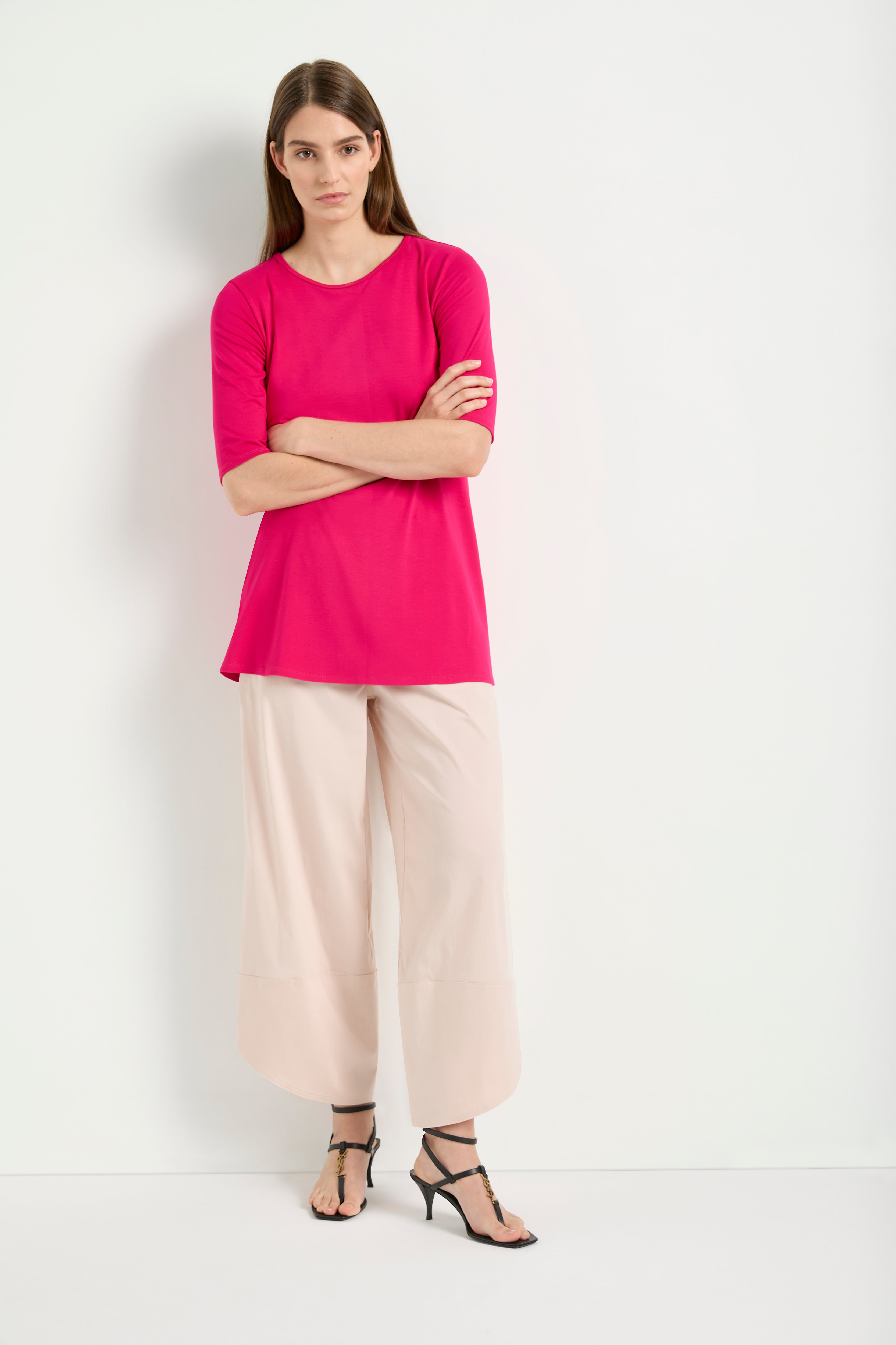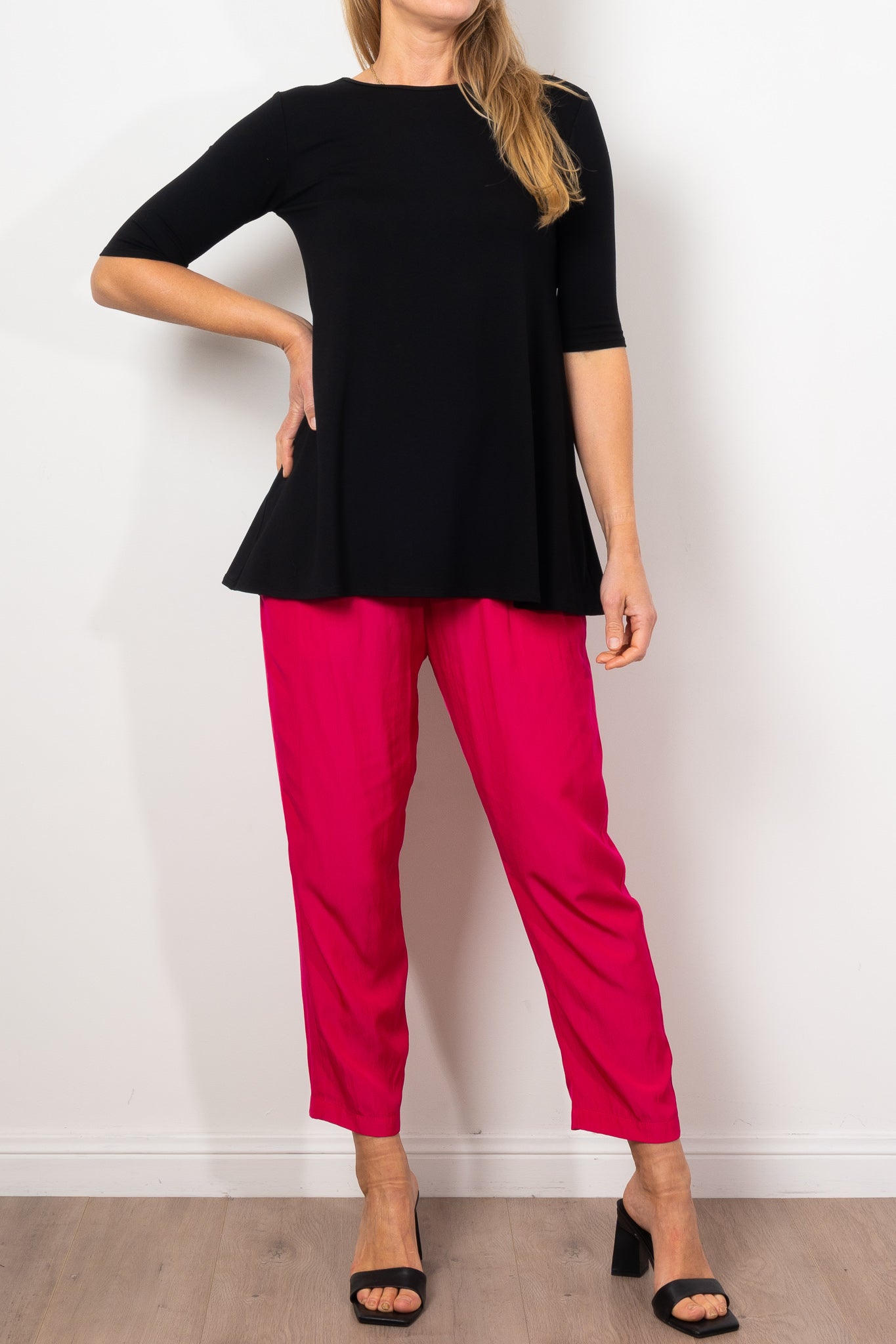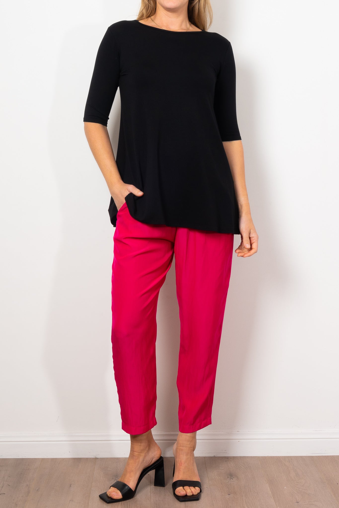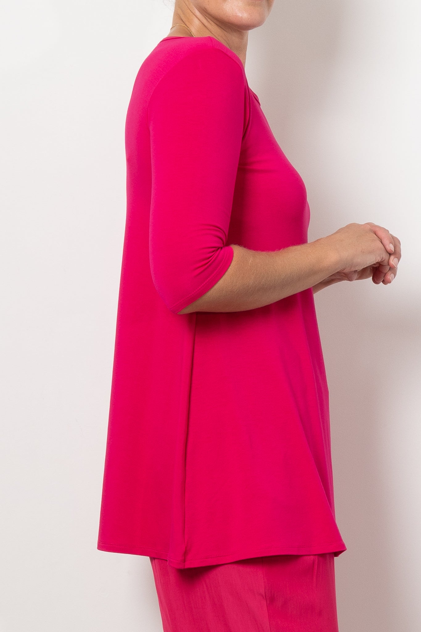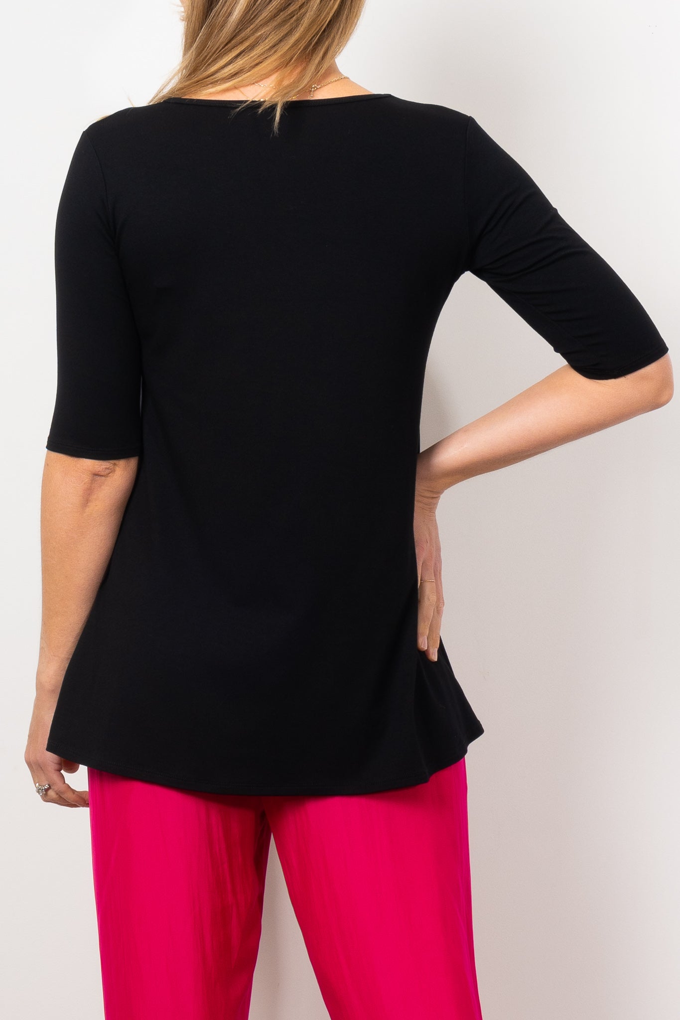 Upgrade your wardrobe staples with the Mela Purdie Elbow Flared Top. Made from soft, stretchy, and colour-rich Matte Jersey, this top features a bound boat neckline, 3/4 sleeves, and a longline length for a flattering fit. Designed and made in Australia with passion and precision.
