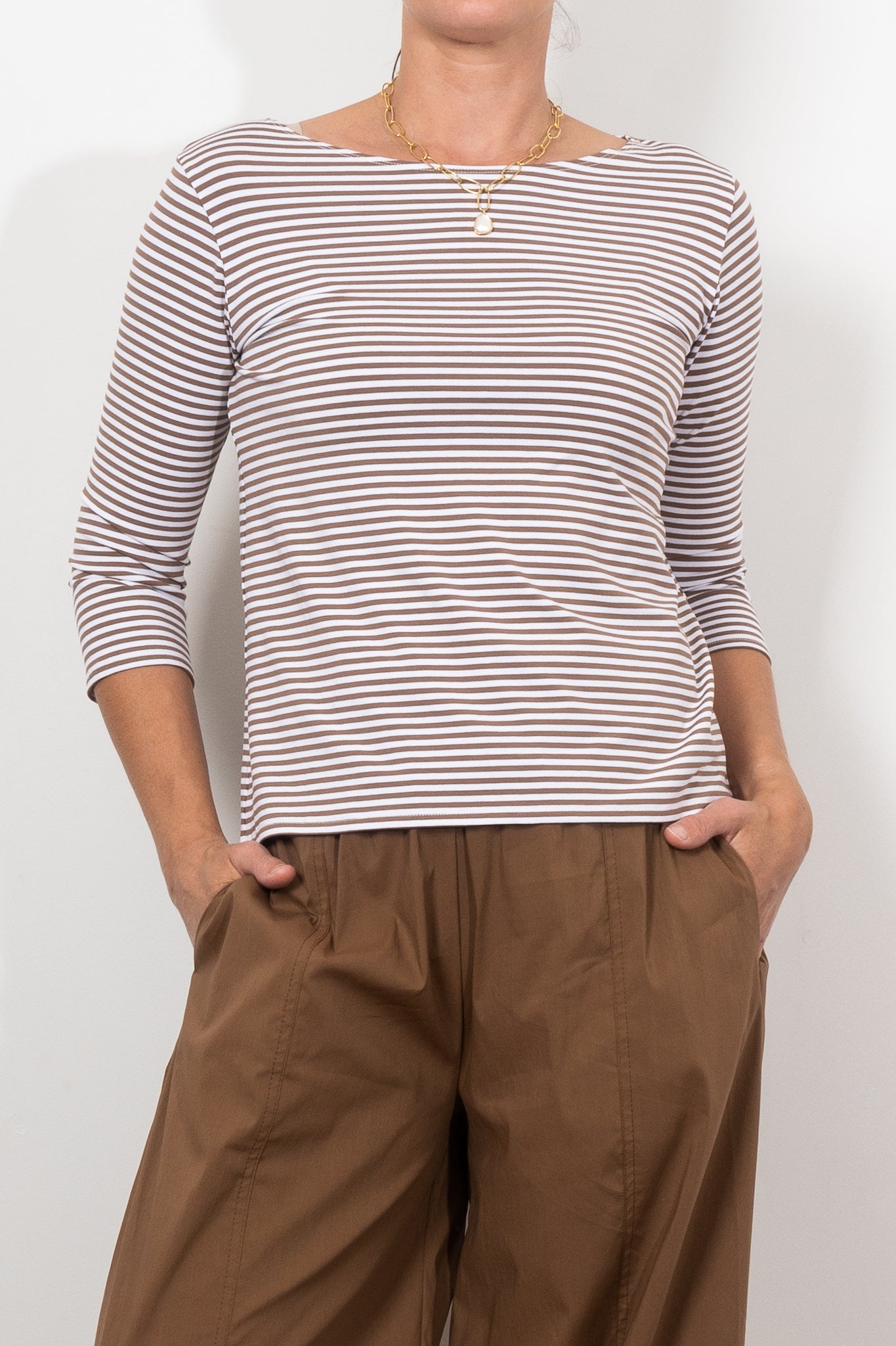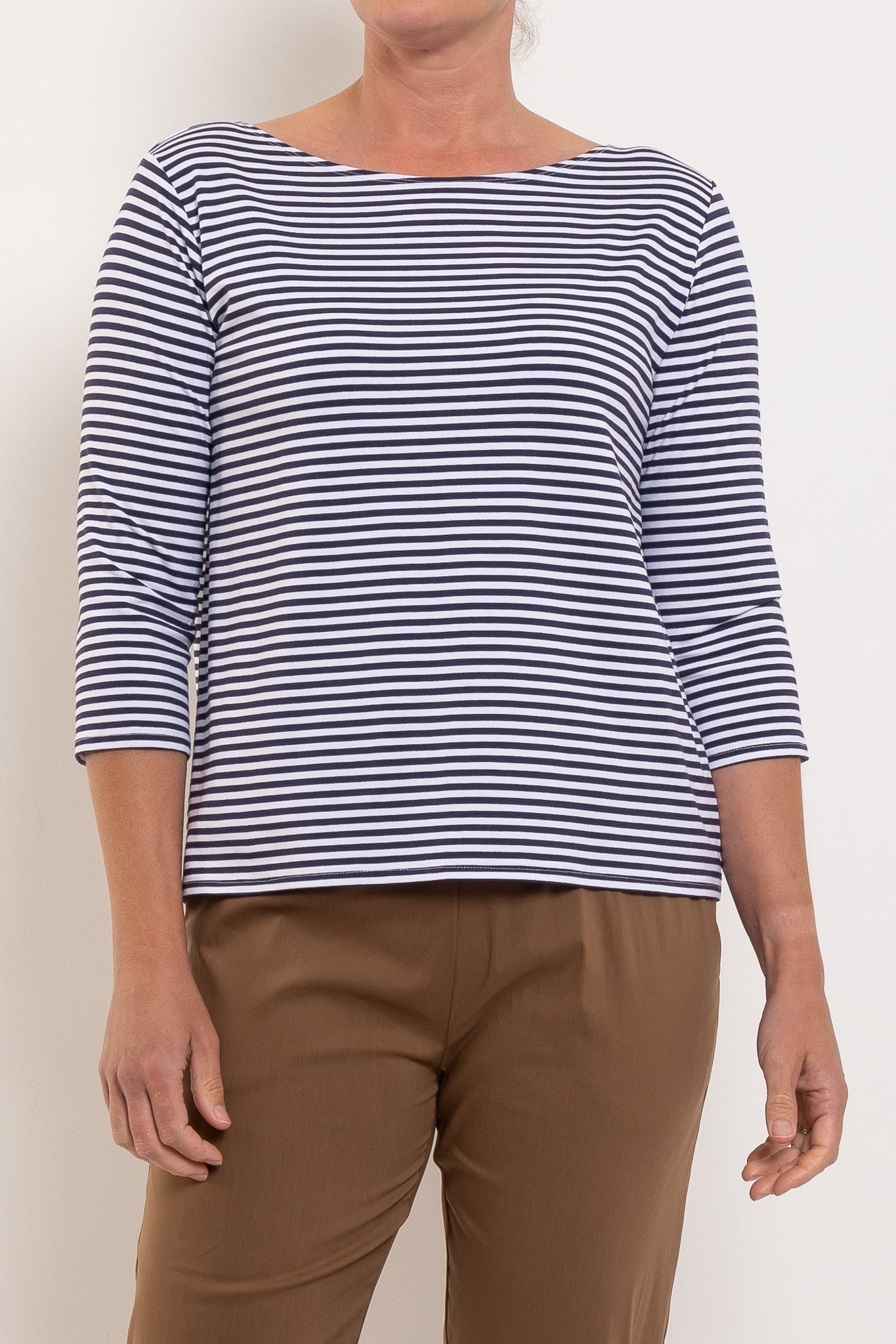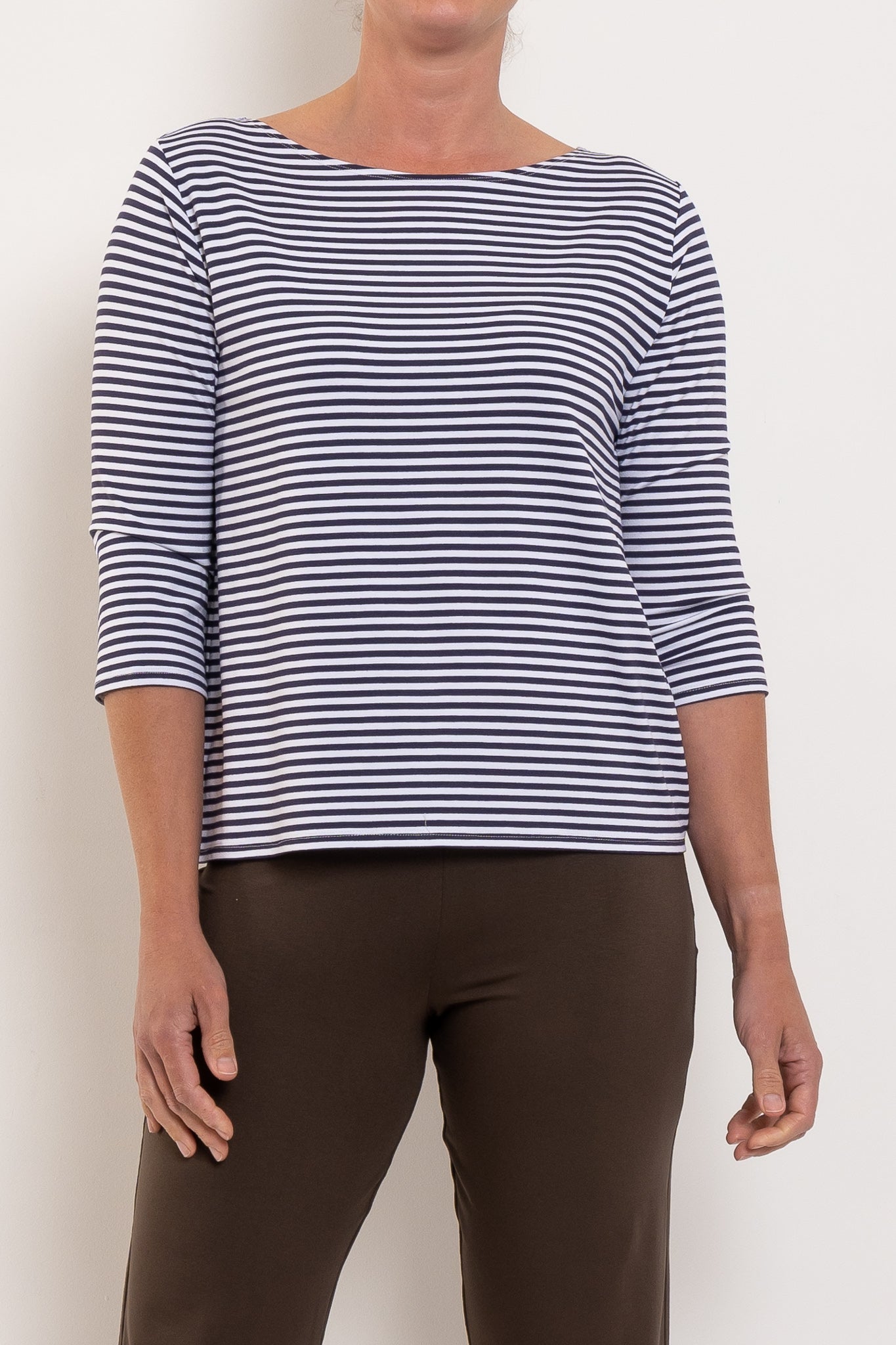 Crafted from Mela’s signature Yacht Stripe Jersey, this top offers the perfect amount of stretch with a soft, breathable hand feel. The relaxed fit makes it easy to layer or wear alone, while the 3/4 length sleeves add year-round practicality. Designed & made in Australia, it’s a core silhouette elevated by thoughtful details.