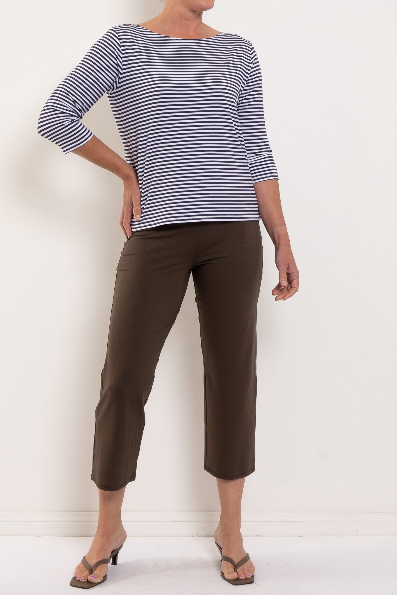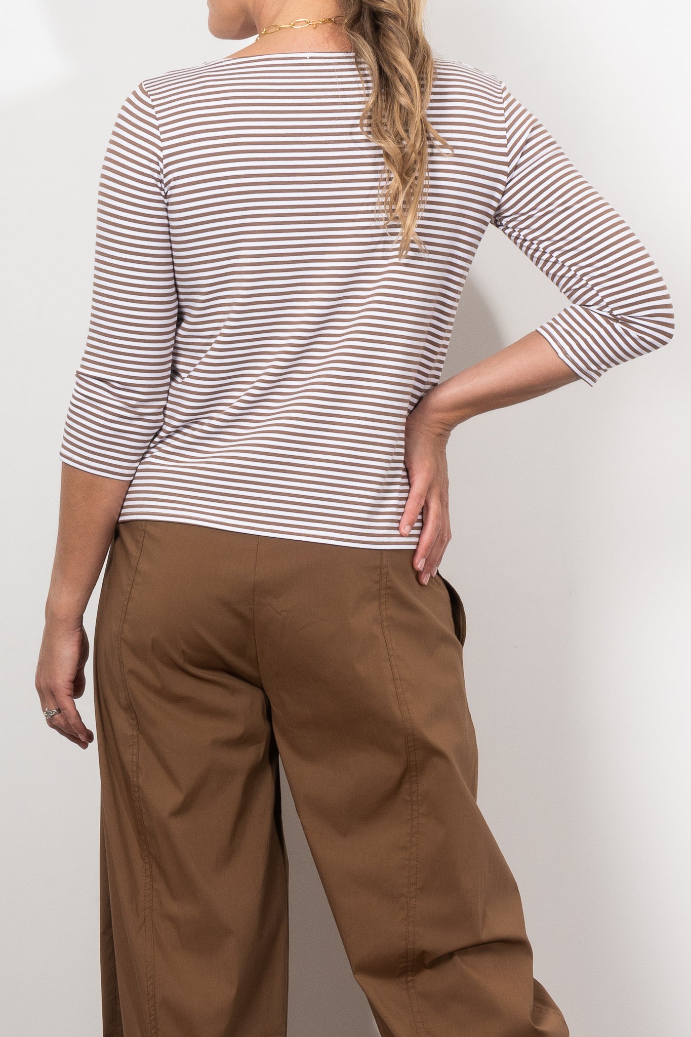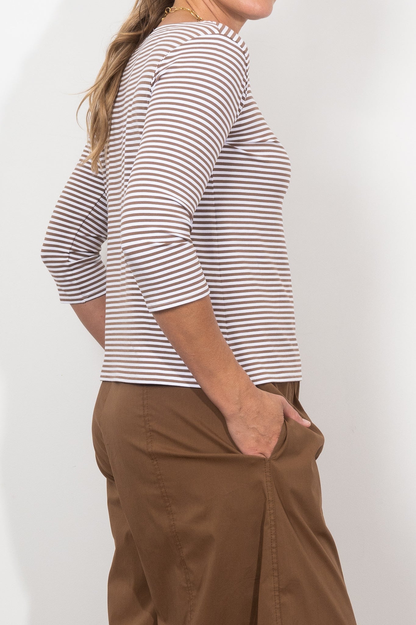 Crafted from Mela’s signature Yacht Stripe Jersey, this top offers the perfect amount of stretch with a soft, breathable hand feel. The relaxed fit makes it easy to layer or wear alone, while the 3/4 length sleeves add year-round practicality. Designed & made in Australia, it’s a core silhouette elevated by thoughtful details.