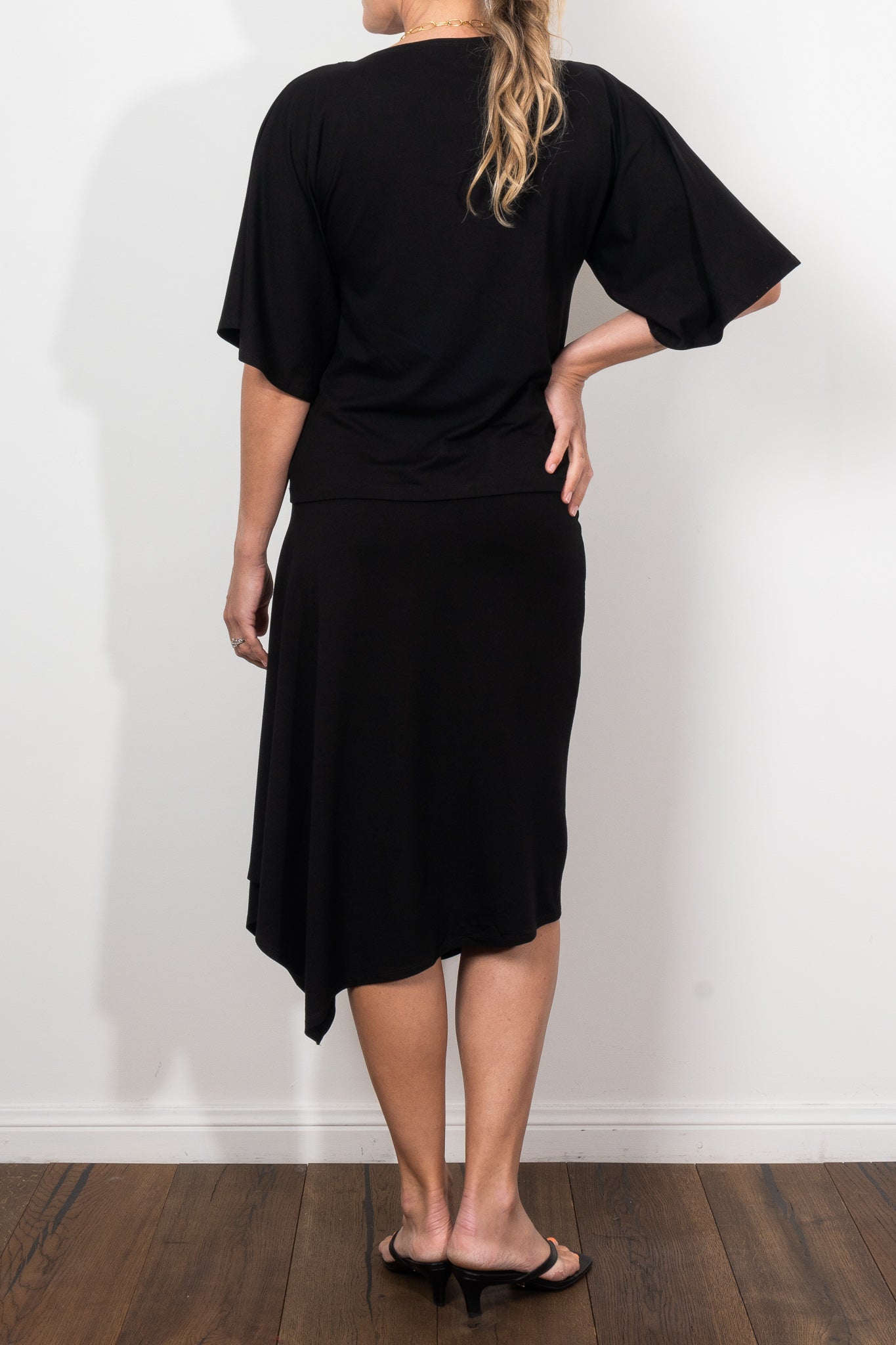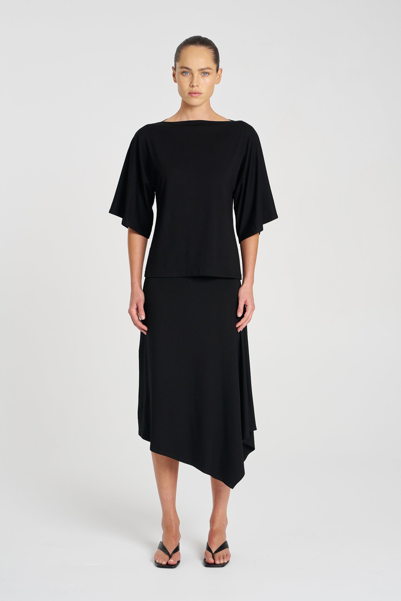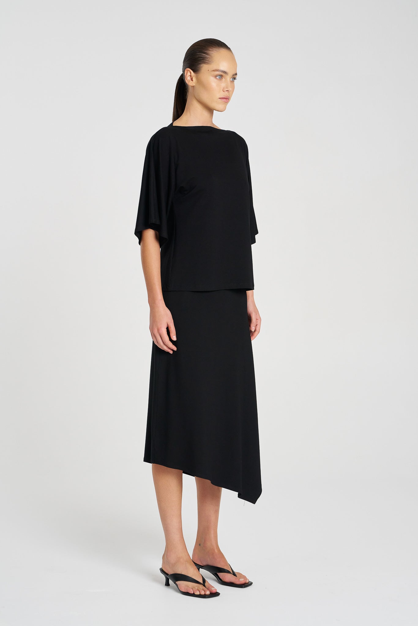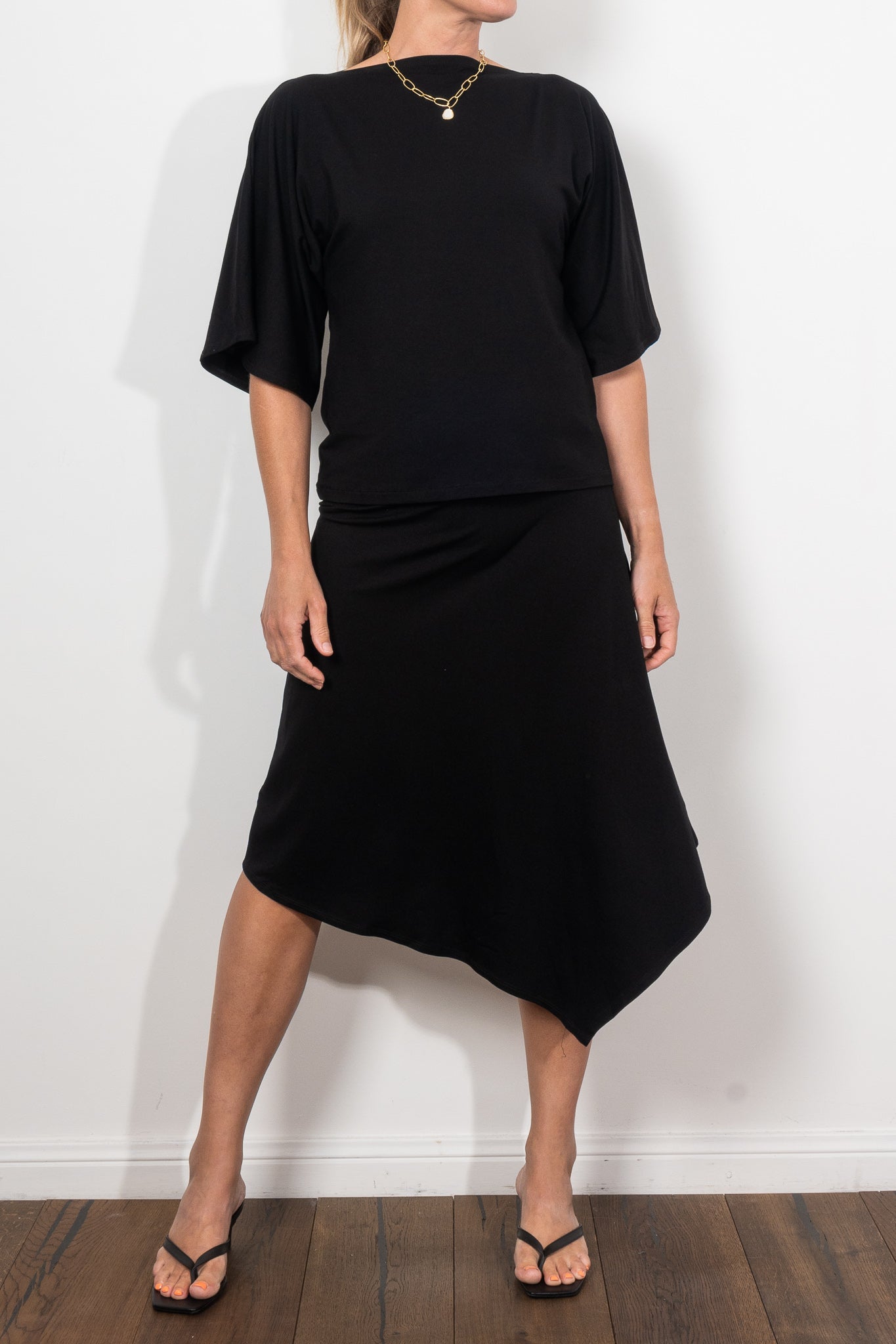 The Slant Skirt takes your everyday skirt and gives it a modern twist — think clean lines, effortless drape, and that swish of an asymmetric hem that makes every step feel elegant. Cut in Mela Purdie’s heritage Matte Jersey, it’s comfortable enough for long lunches, easy days at work, or even a stroll along the esplanade — yet polished enough to wear on repeat for years.