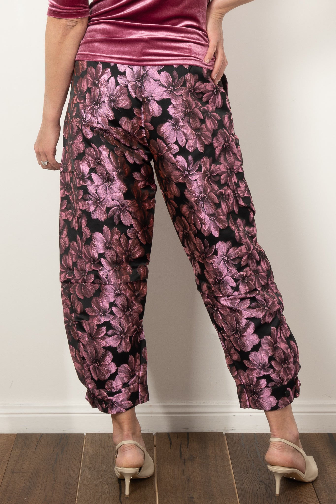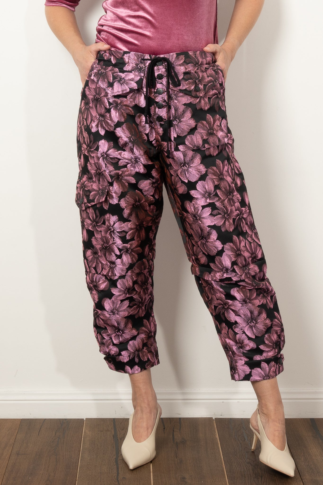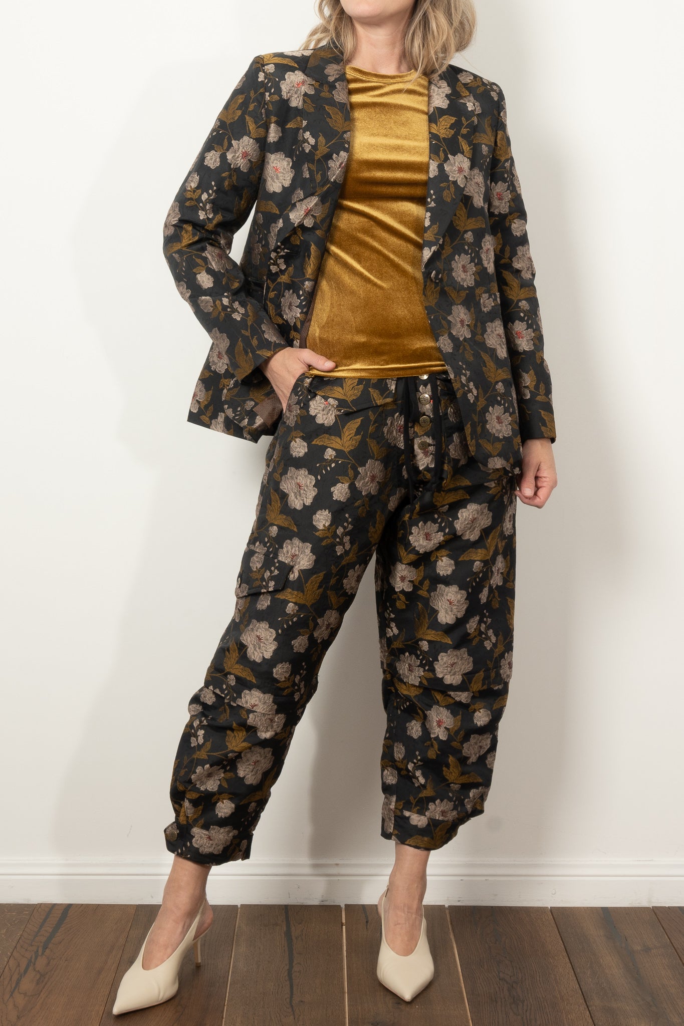 A longtime best-seller from M.A. Dainty, the Trucker Pant returns this season in a luxe, glossy brocade. Available in two standout colourways—blush pink floral or rich brassy tones—this cult-favourite style combines relaxed utility with bold fashion appeal. Designed with a drawstring waist, statement pockets, and zip-off legs that convert them into shorts, they offer ultimate versatility with a twist. Pair with the matching blazer or style them back with simple knits for effortless impact.