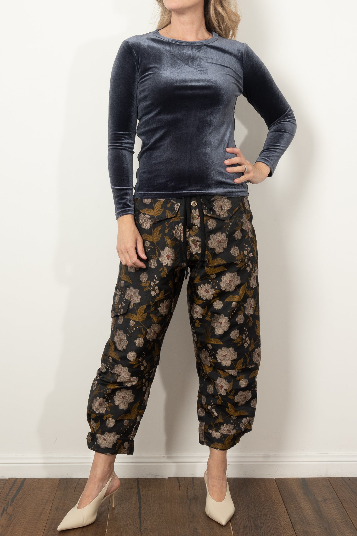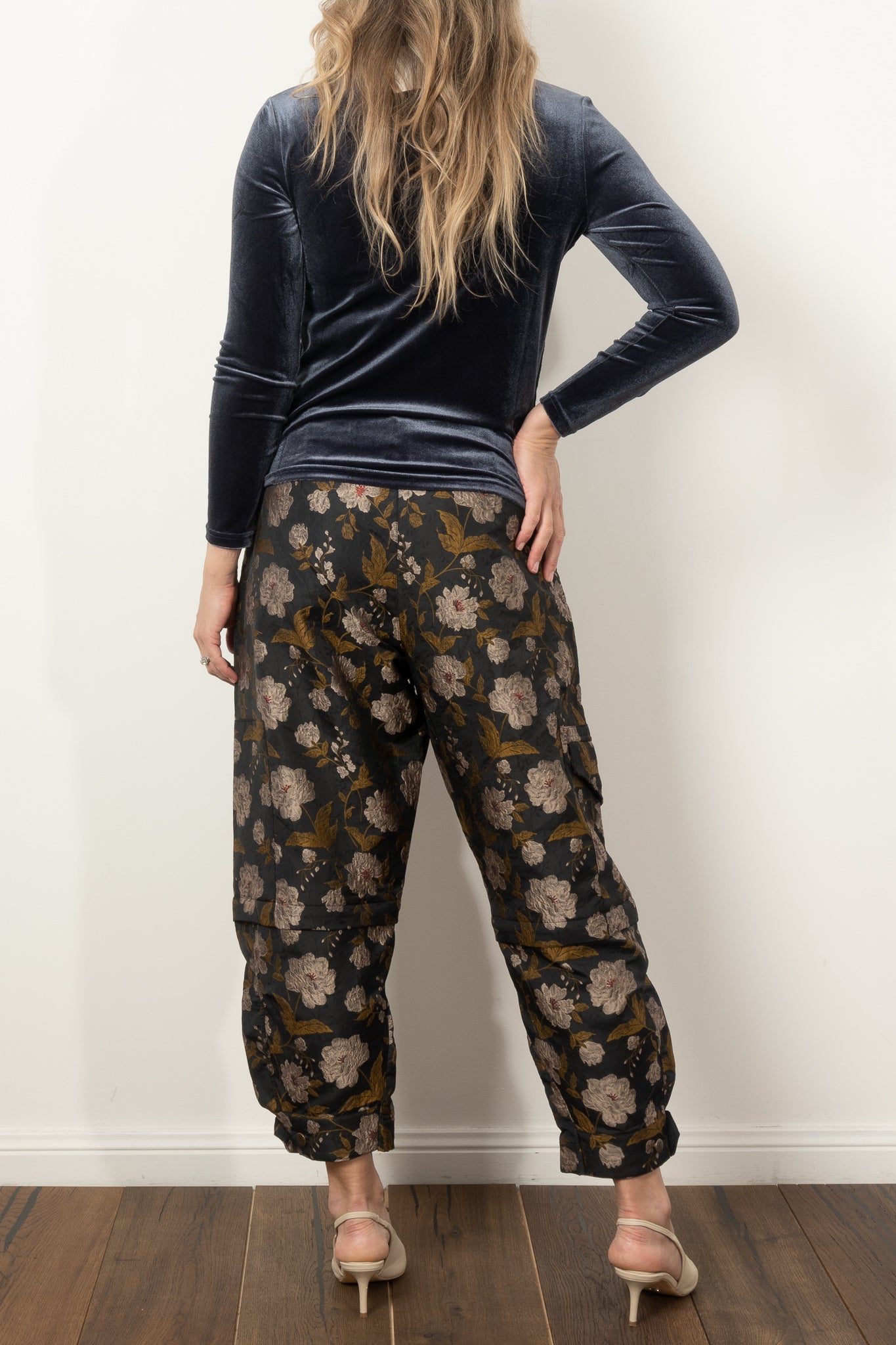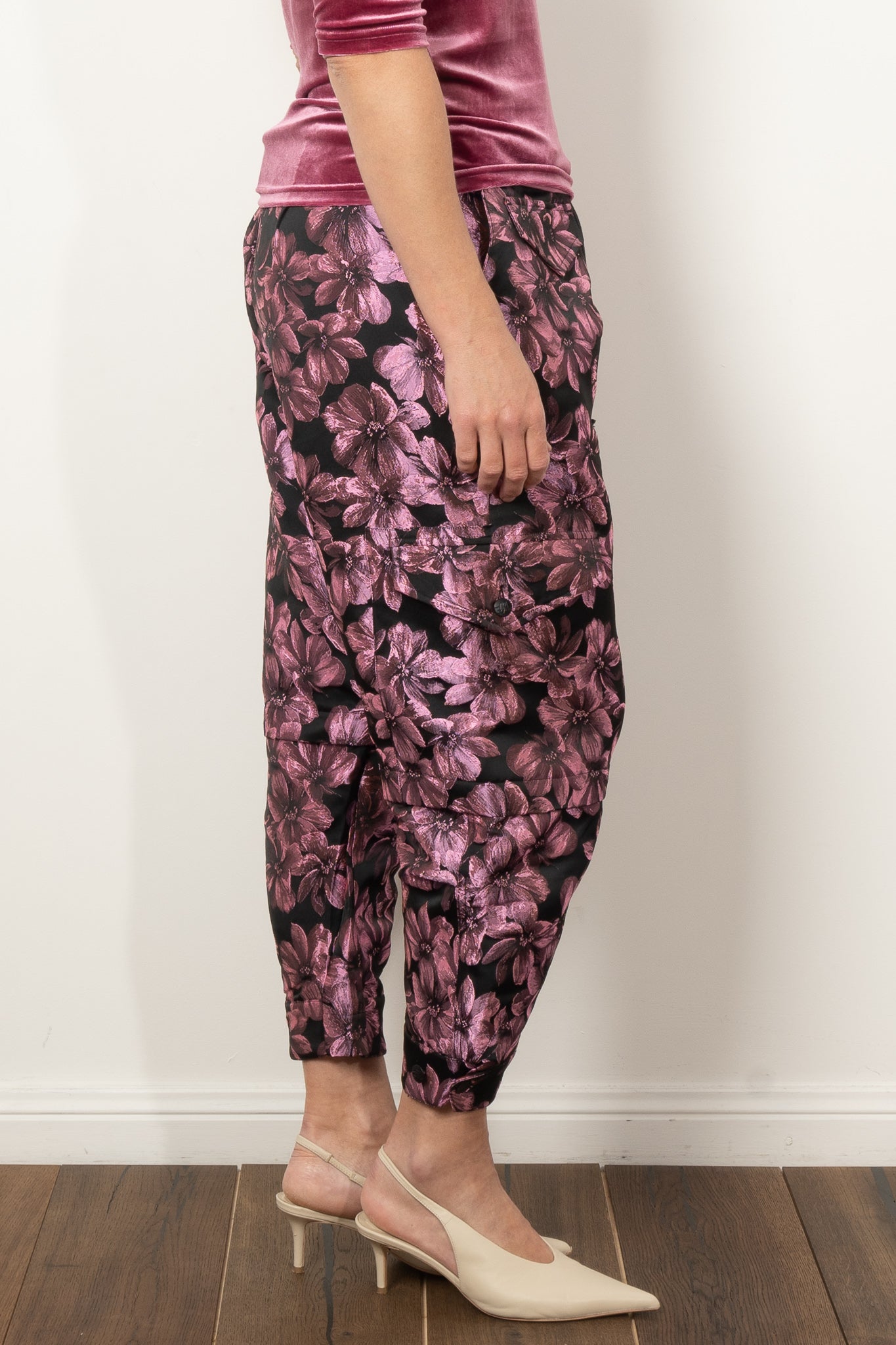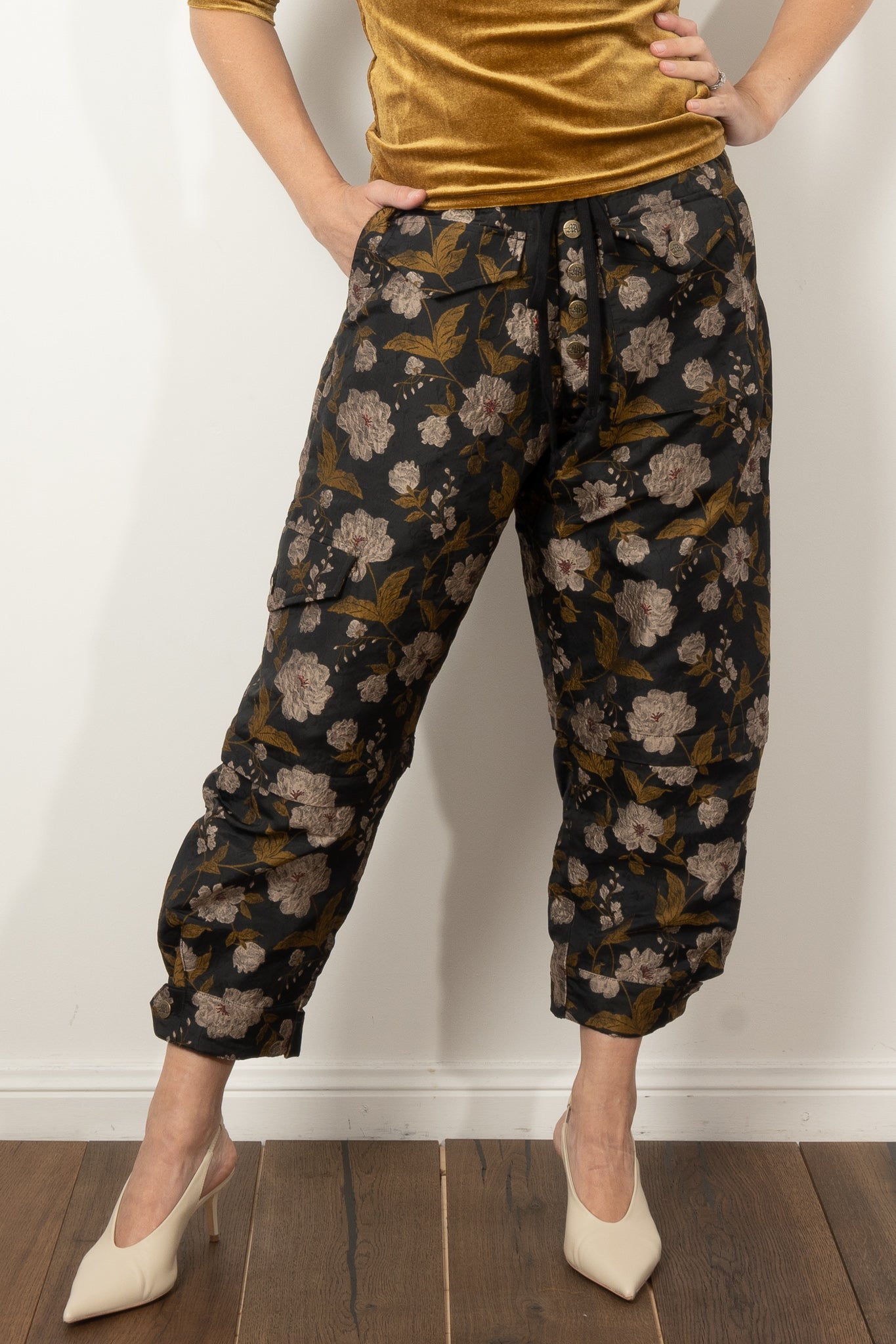 A longtime best-seller from M.A. Dainty, the Trucker Pant returns this season in a luxe, glossy brocade. Available in two standout colourways—blush pink floral or rich brassy tones—this cult-favourite style combines relaxed utility with bold fashion appeal. Designed with a drawstring waist, statement pockets, and zip-off legs that convert them into shorts, they offer ultimate versatility with a twist. Pair with the matching blazer or style them back with simple knits for effortless impact.