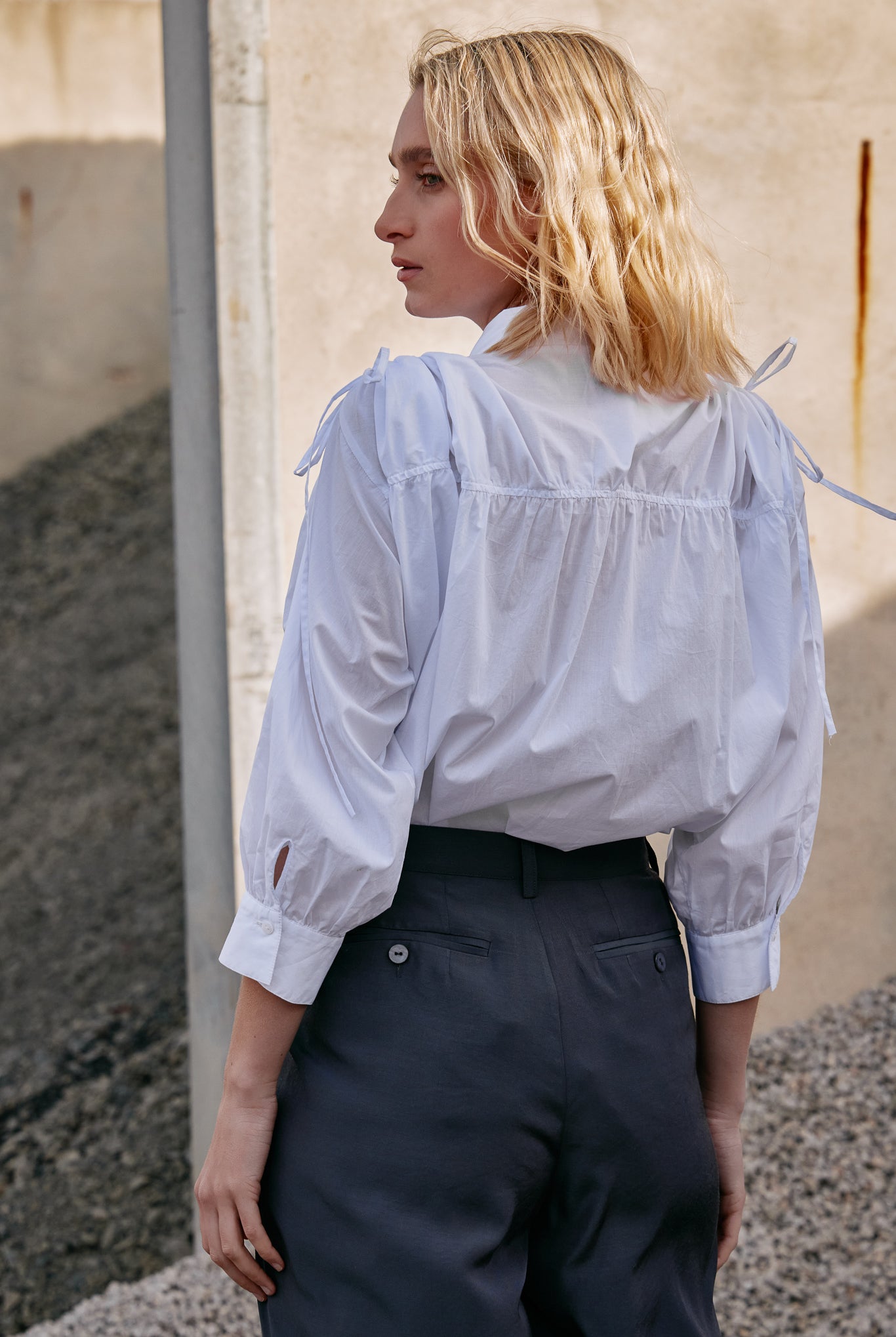 The MA Dainty Bobby Pin shirt is a wardrobe staple and the perfect white shirt! We love the pin tuck details which give this cotton shirt a unique point of difference that is synonymous with Maud Dainty's design.