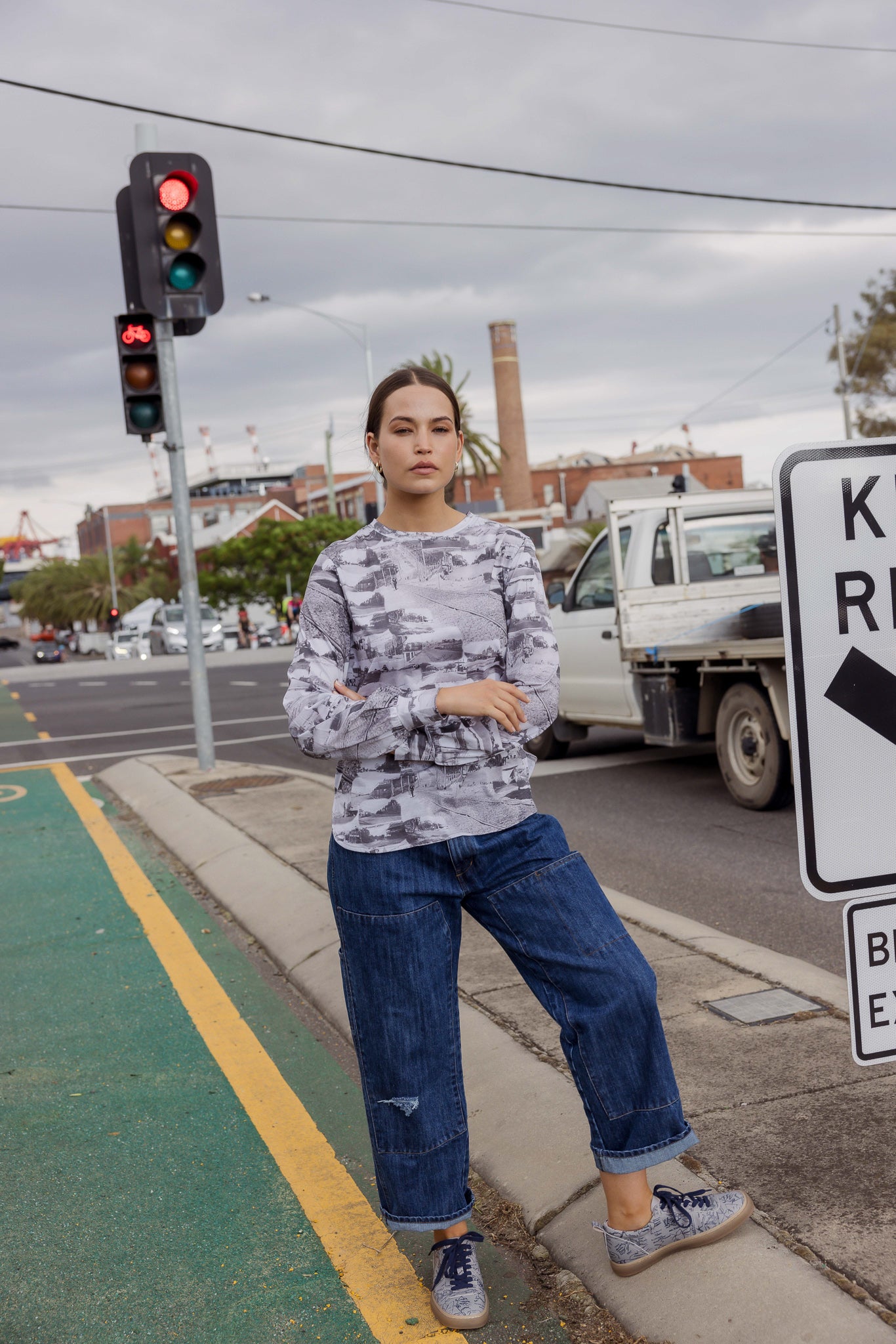 Take a ride on the wild side with the Tram Lines top by Maud Alice Dainty! Made from soft, comfortable Cotton, it showcases a black and white photo collage of historic tram lines around Australia. See full product description below for fabric and fit info.