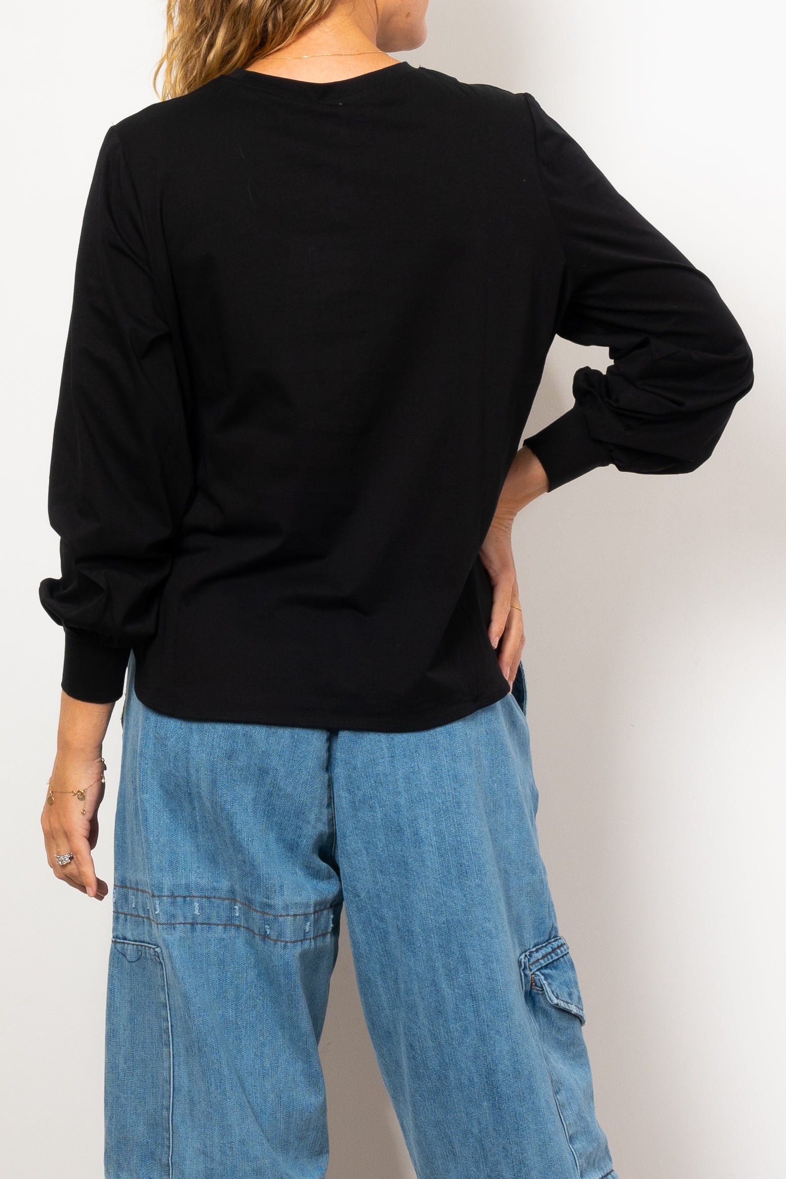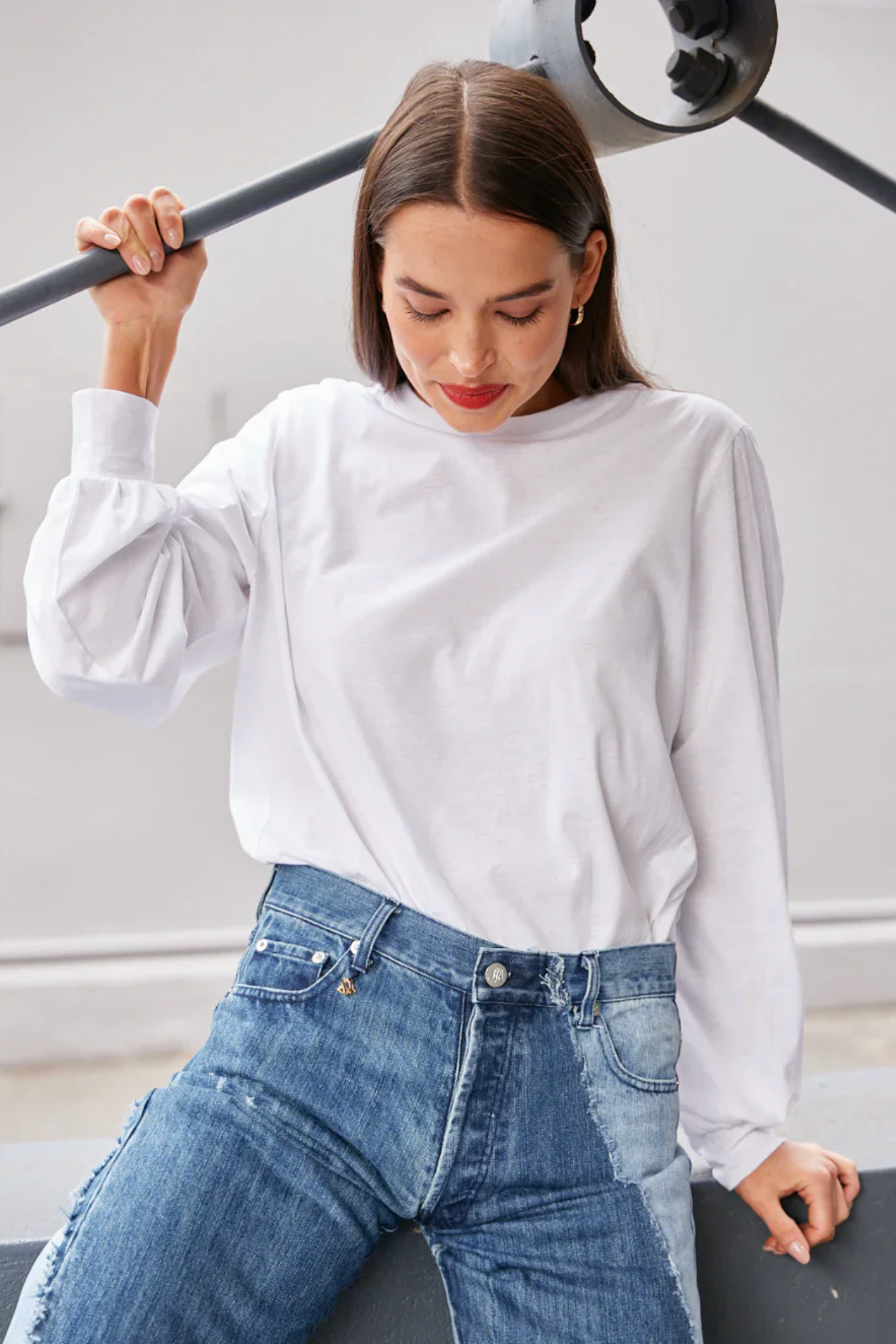 Elevate your winter wardrobe with the M.A. Dainty Baxter Top. Crafted from 100% crisp cotton, this long sleeve top boasts a loose pull over style, delicate gathering and cuff details. Perfect for layering, this top is a versatile and stylish starting piece for any winter outfit.