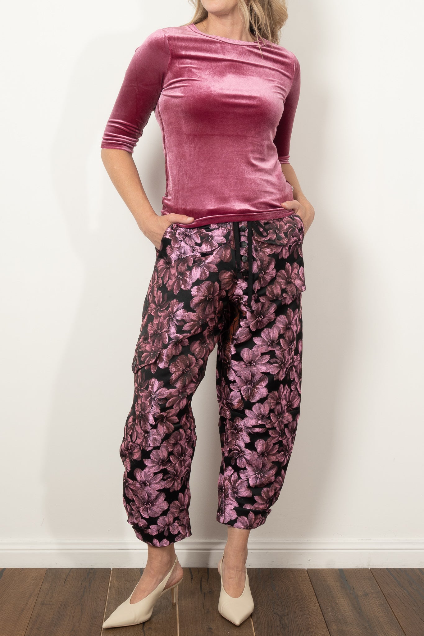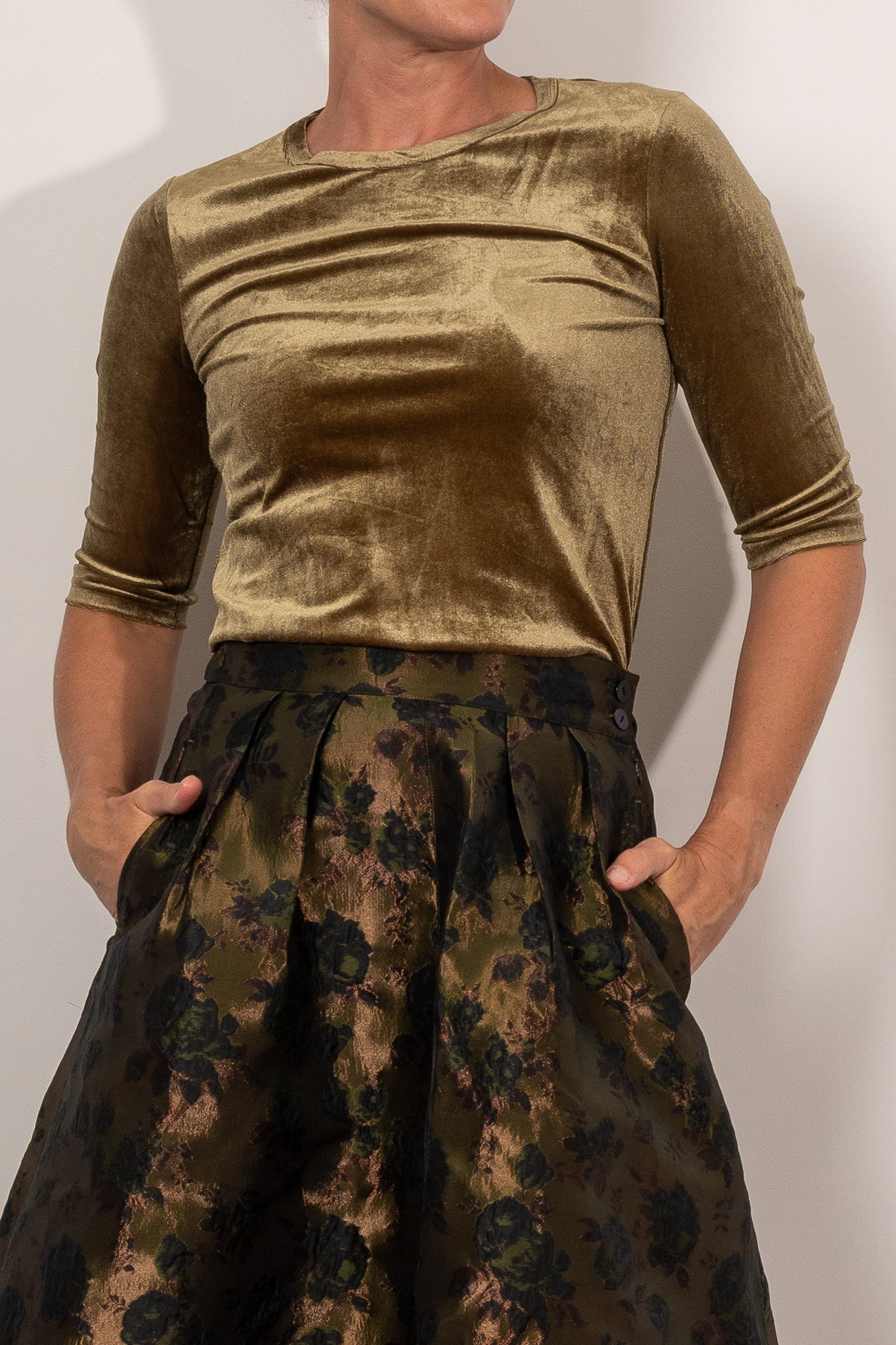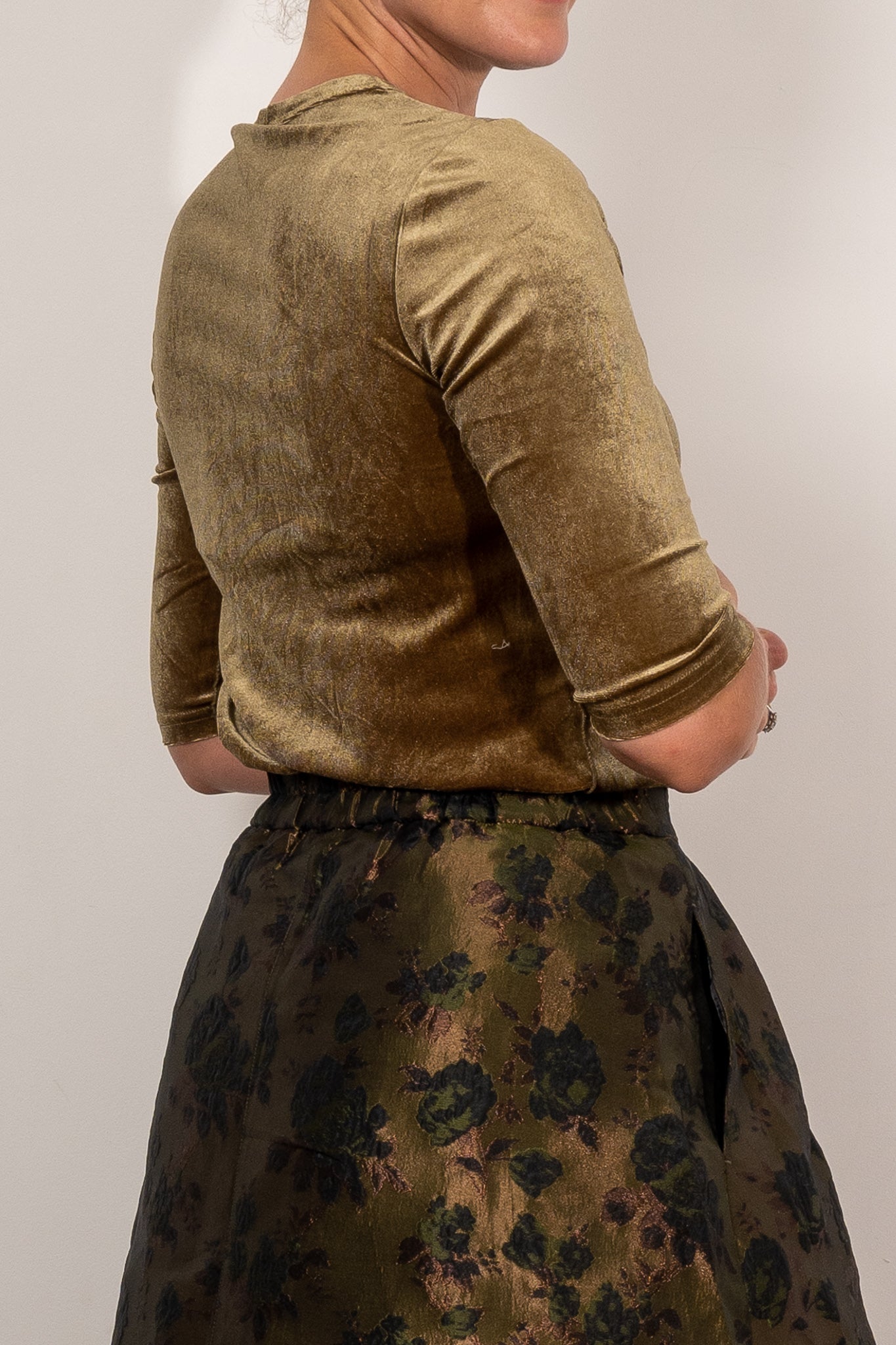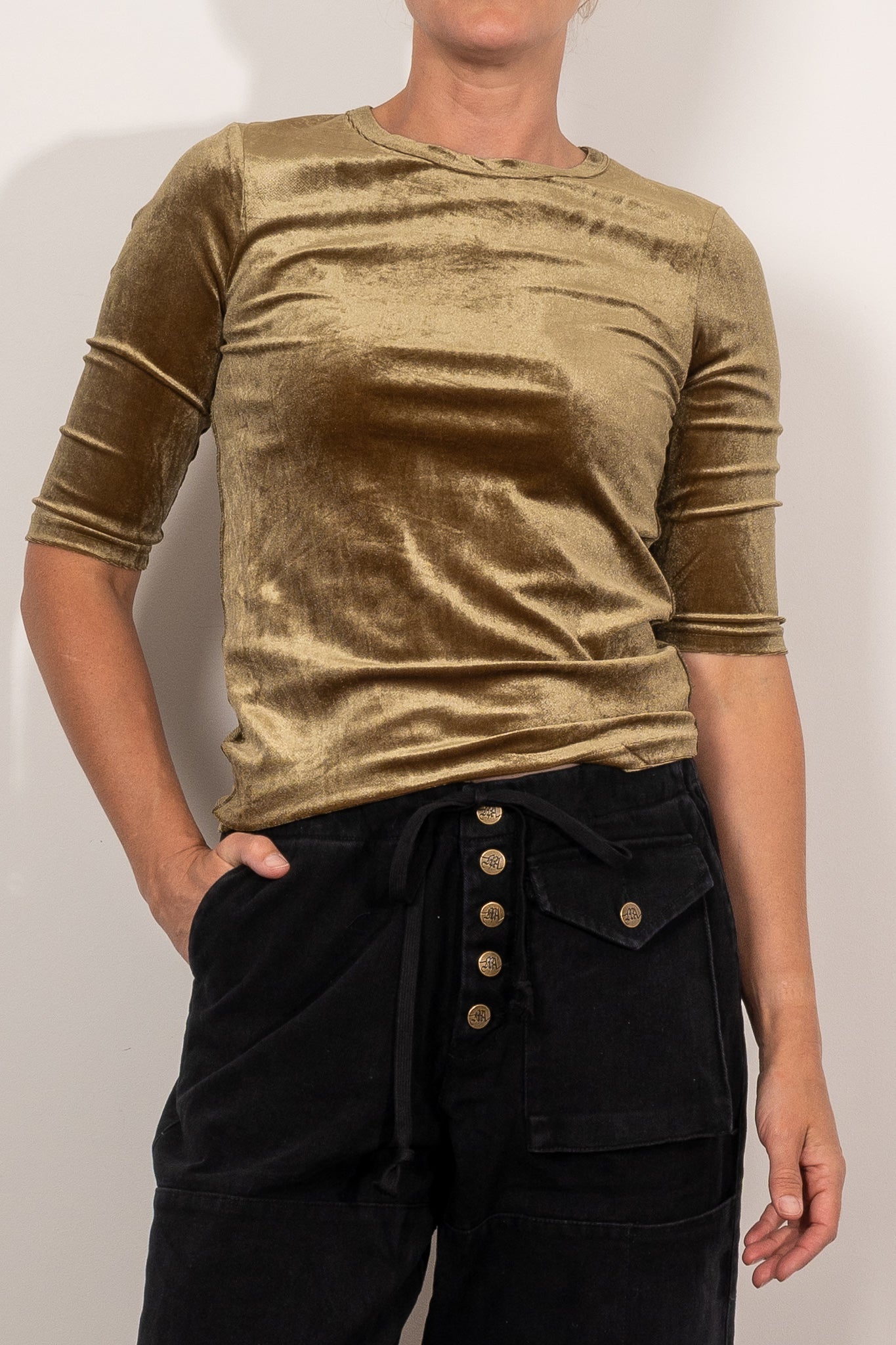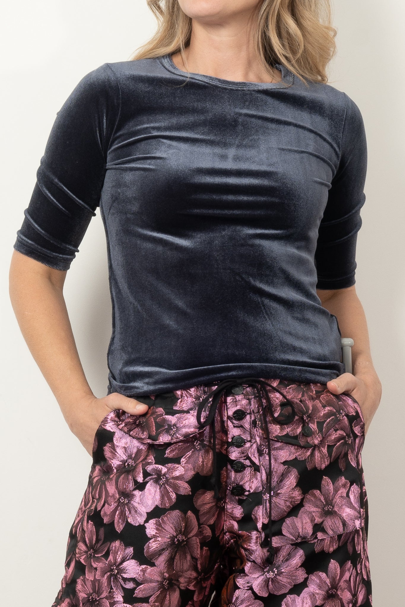 Discover the timeless elegance of the M.A. Dainty Patti Top! Made from luxurious velvet, this top features a flattering fitted style with 3/4 sleeves and a high rounded neckline. Its soft, stretchy fabric makes it both comfortable and easy to style, making it a must-have for any wardrobe.