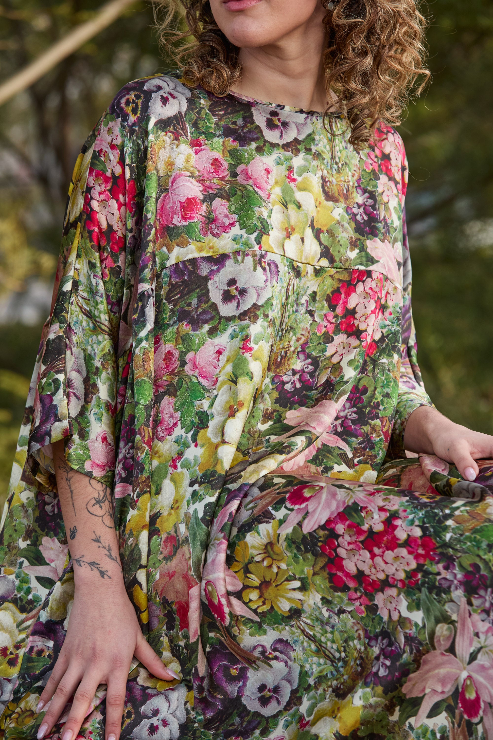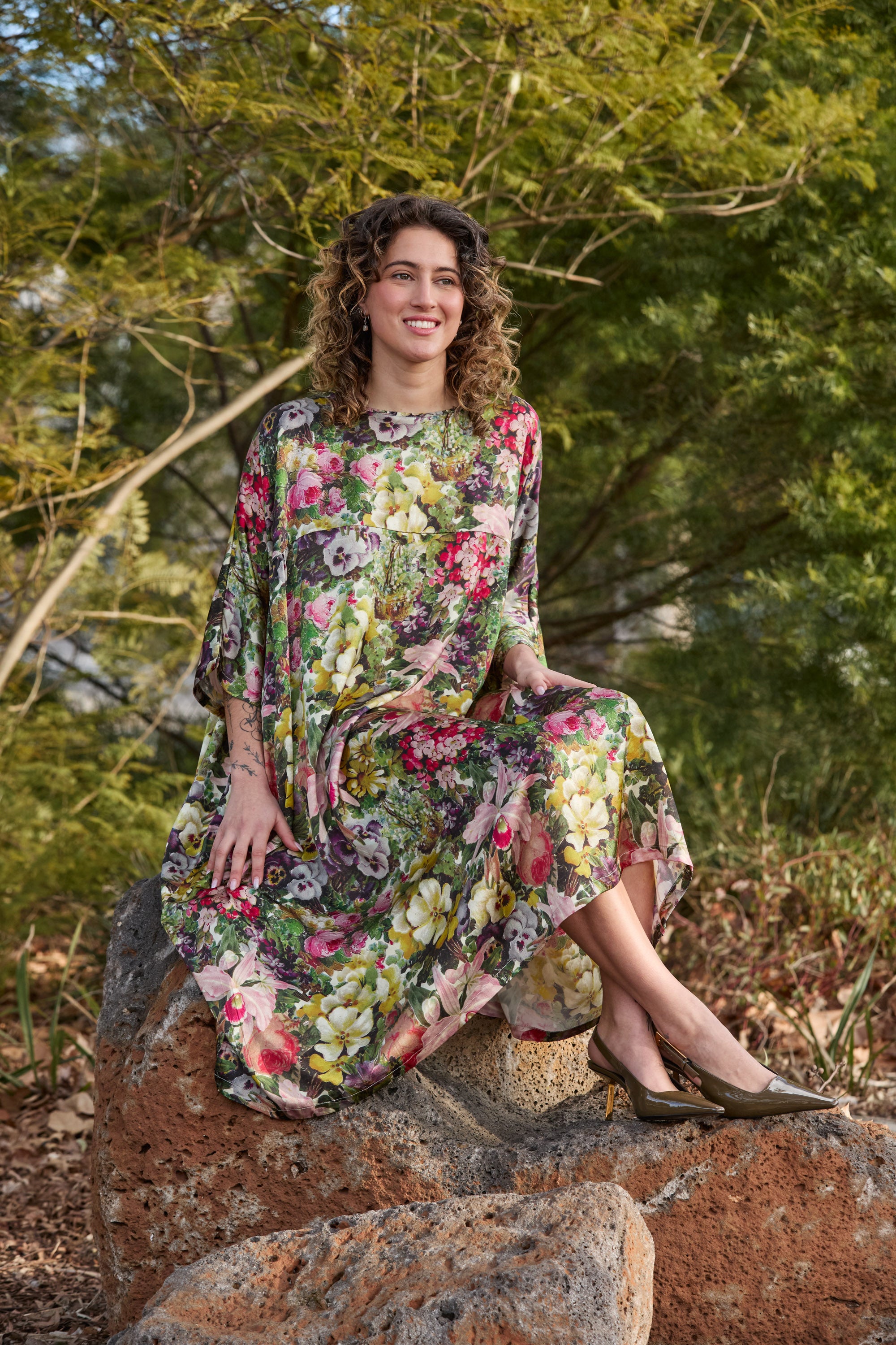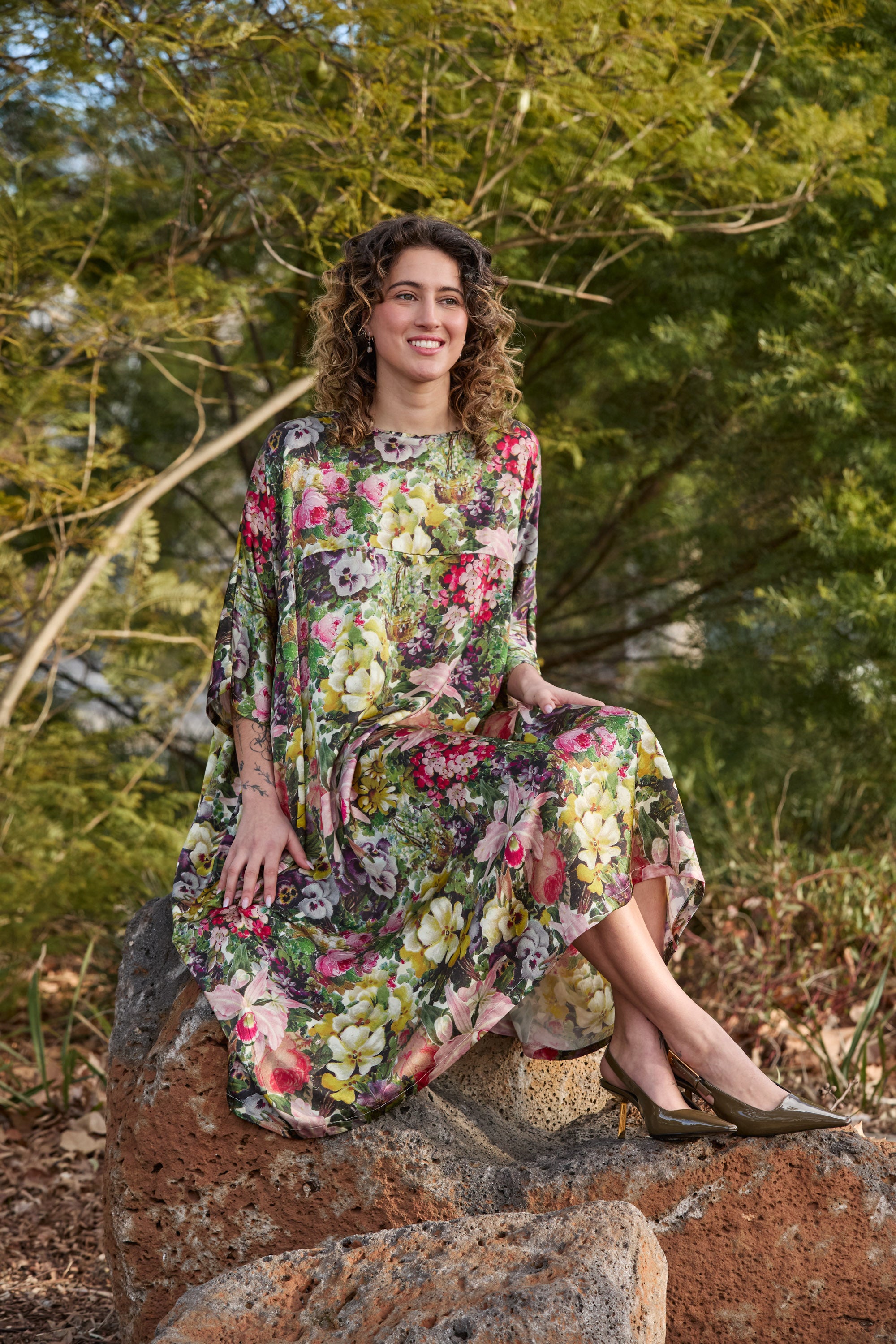 When comfort meets luxury, you get the Circular by M.A.Dainty Playground Dress in the exclusive Blooms print. Crafted from 100% silk, it skims and sways with every step, giving you that effortless, “oh this old thing?” kind of elegance. The oversized fit and flowy shape make it as comfortable as it is polished.
