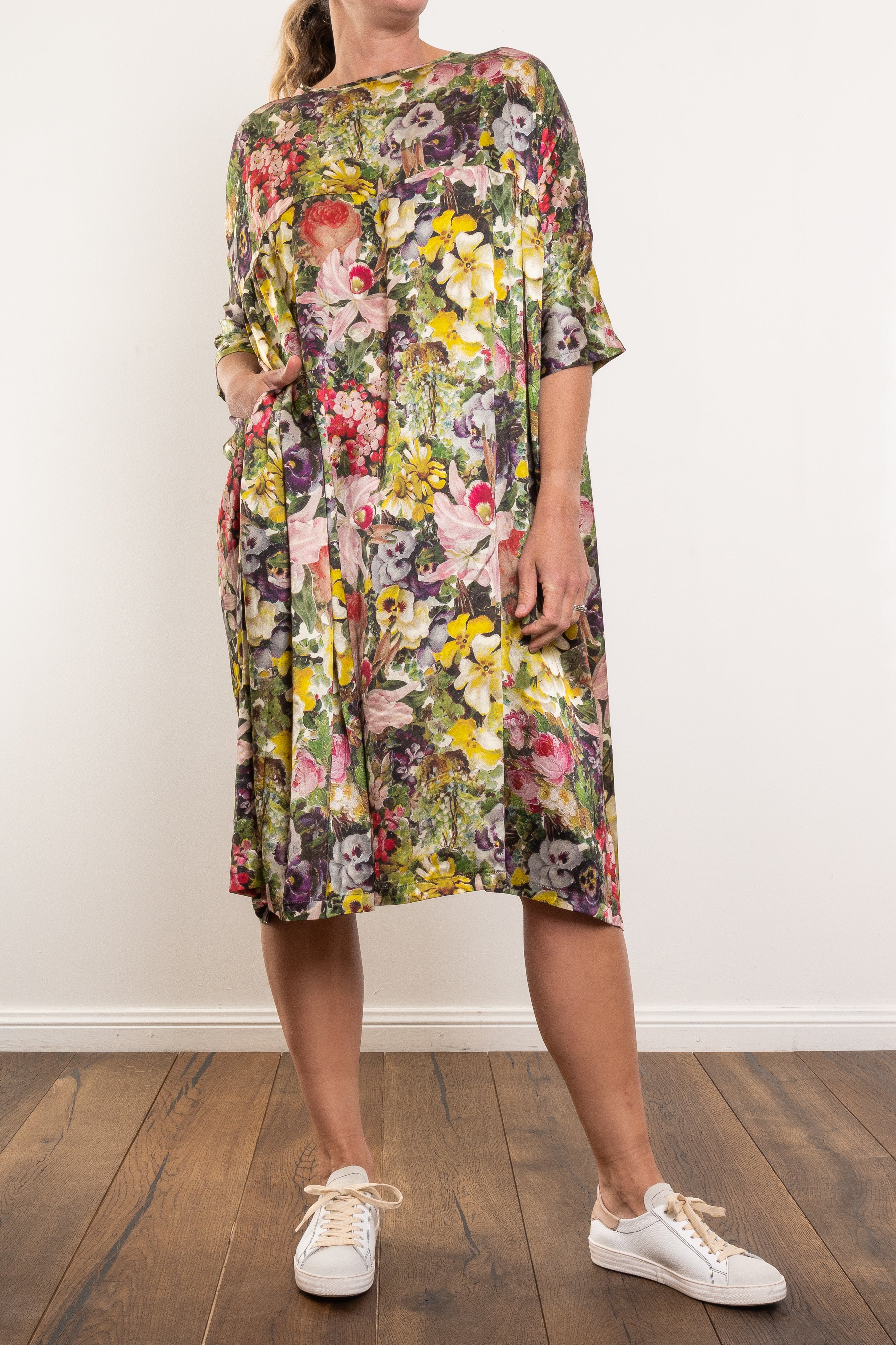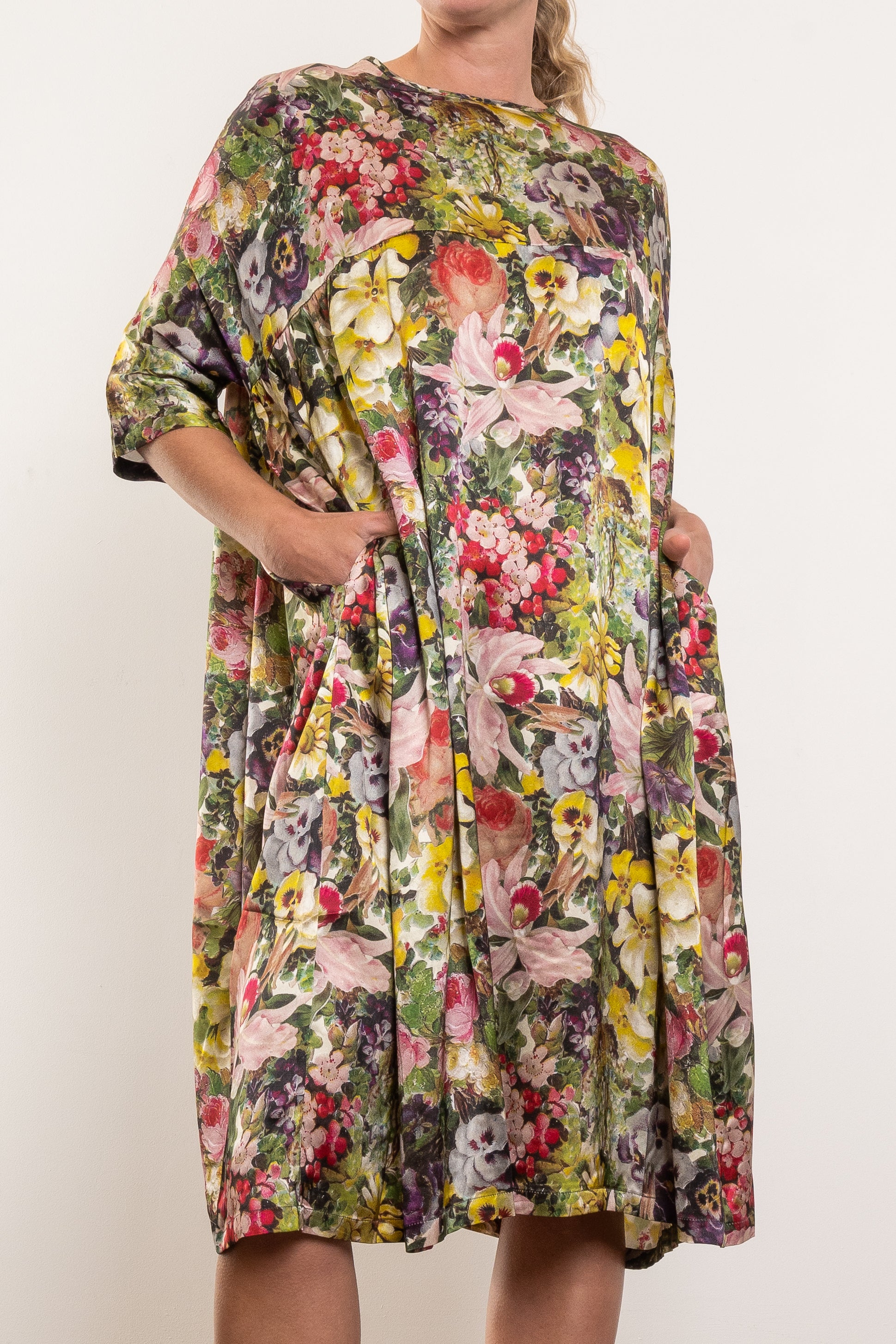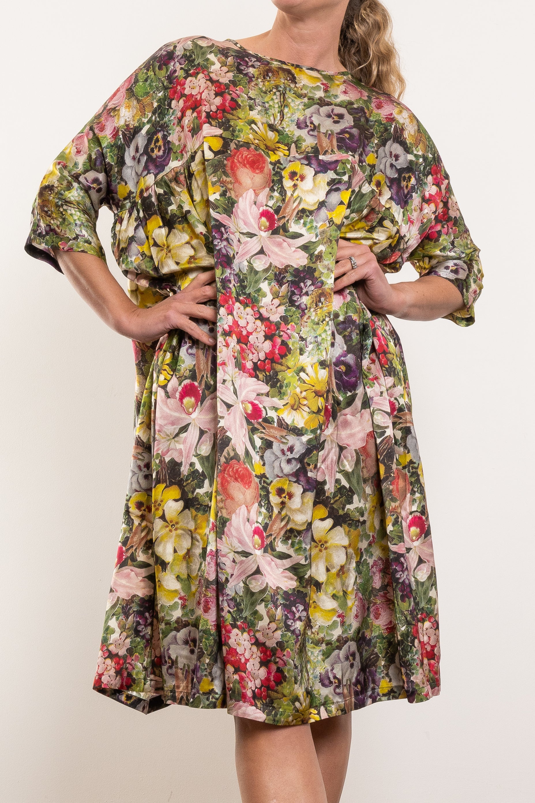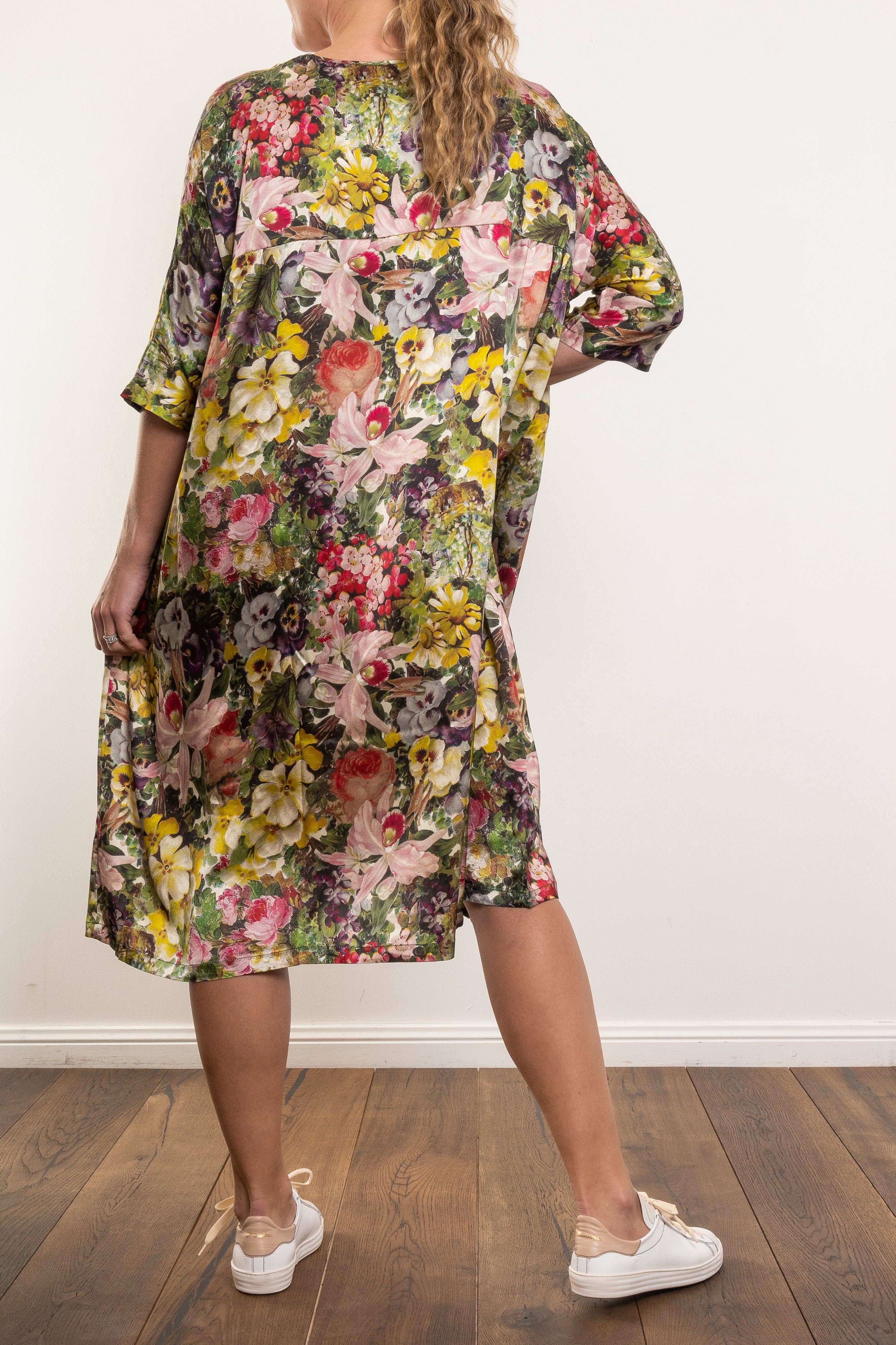 When comfort meets luxury, you get the Circular by M.A.Dainty Playground Dress in the exclusive Blooms print. Crafted from 100% silk, it skims and sways with every step, giving you that effortless, “oh this old thing?” kind of elegance. The oversized fit and flowy shape make it as comfortable as it is polished.