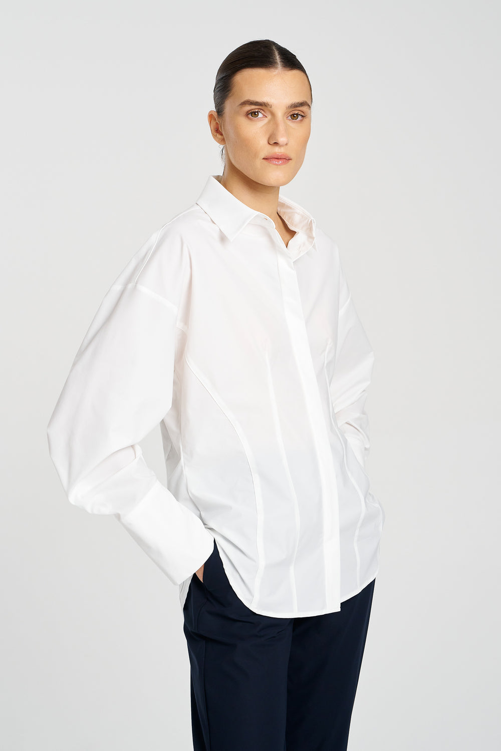 Known for her perfectly fitting garments, Mela Purdie tops are designed to flatter and fit impeccably. A Mela Purdie shirt is timeless and will stand the time of time with its premium quality and classic styling. Complete your outfit by matching you top with your favourite Mela Purdie pants.