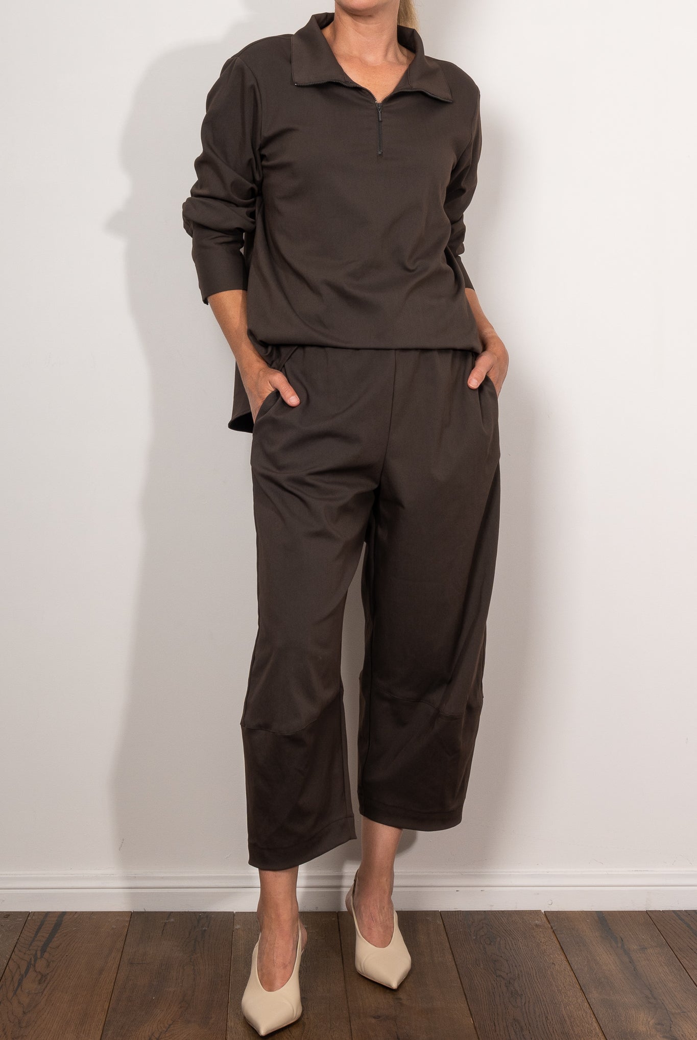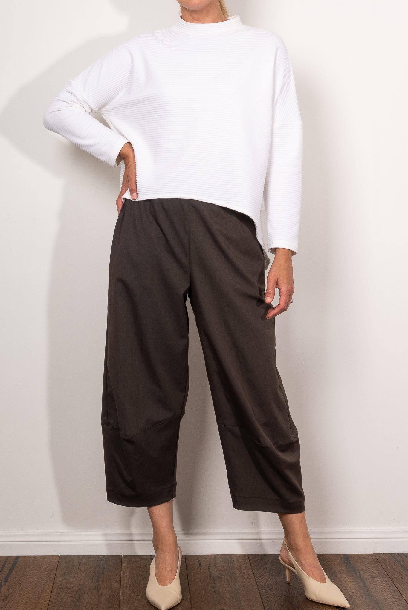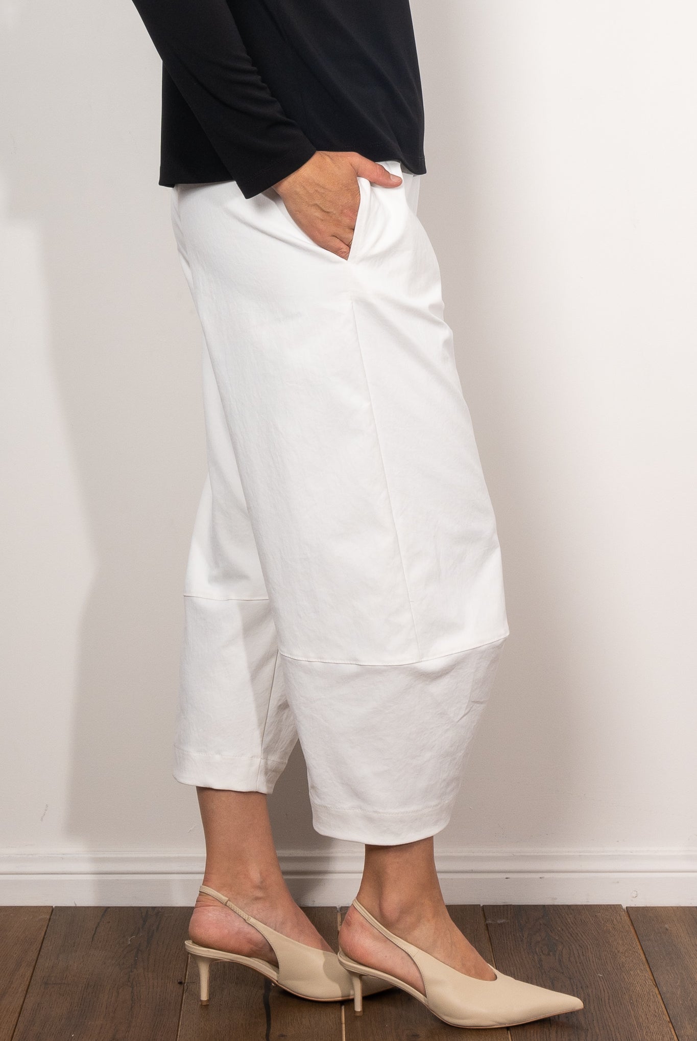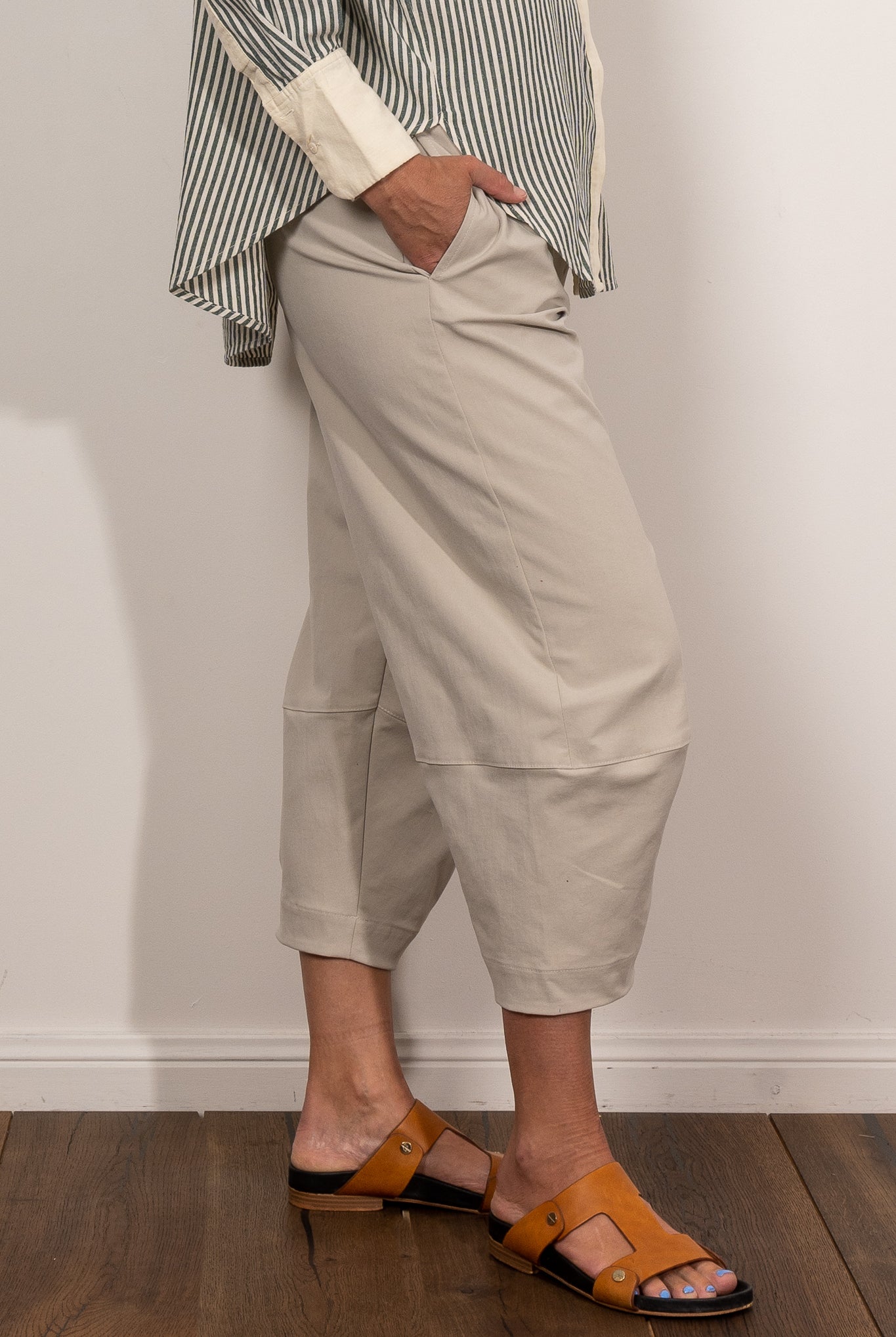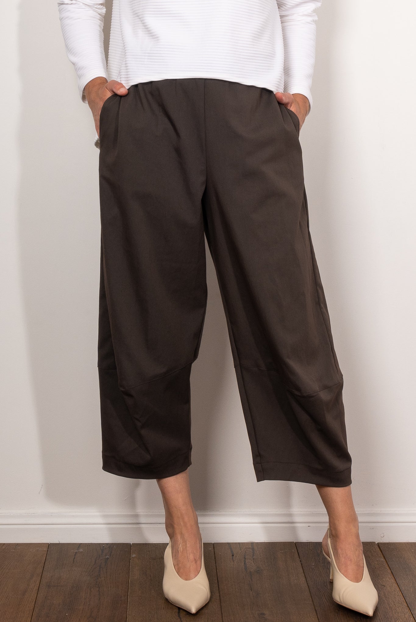 Cropped Pants are a versatile workhorse in the wardrobe. The right capri length cuts the leg at the slimmest point of the ankle to ensure a flattering shape. Why not try the Mela Purdie nomad pant, the Mela Purdie Cropped Pant or the ever so comfortable jersey Mela Purdie 3/4 pants.