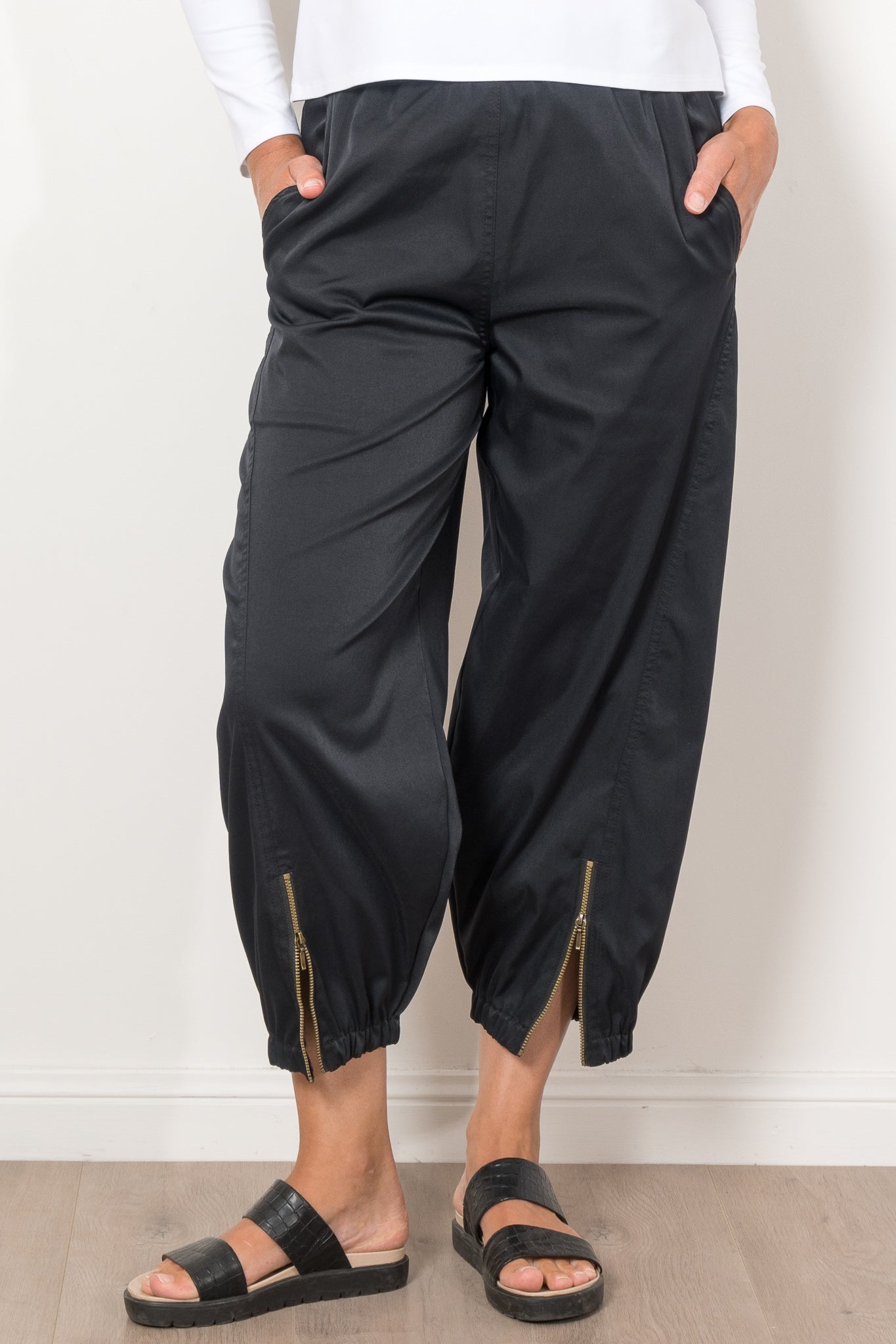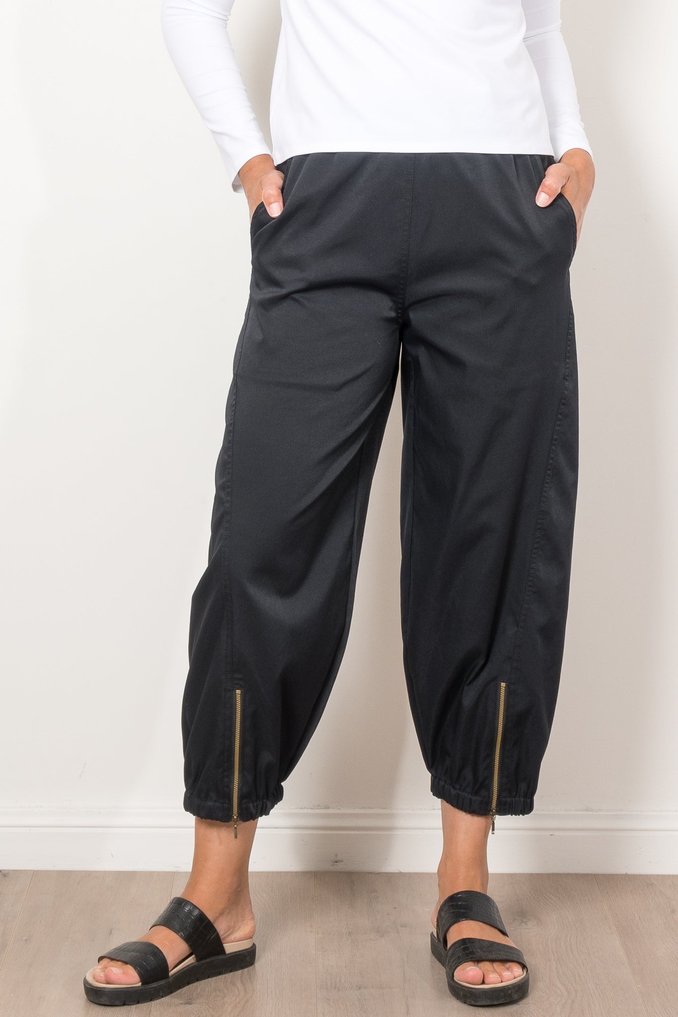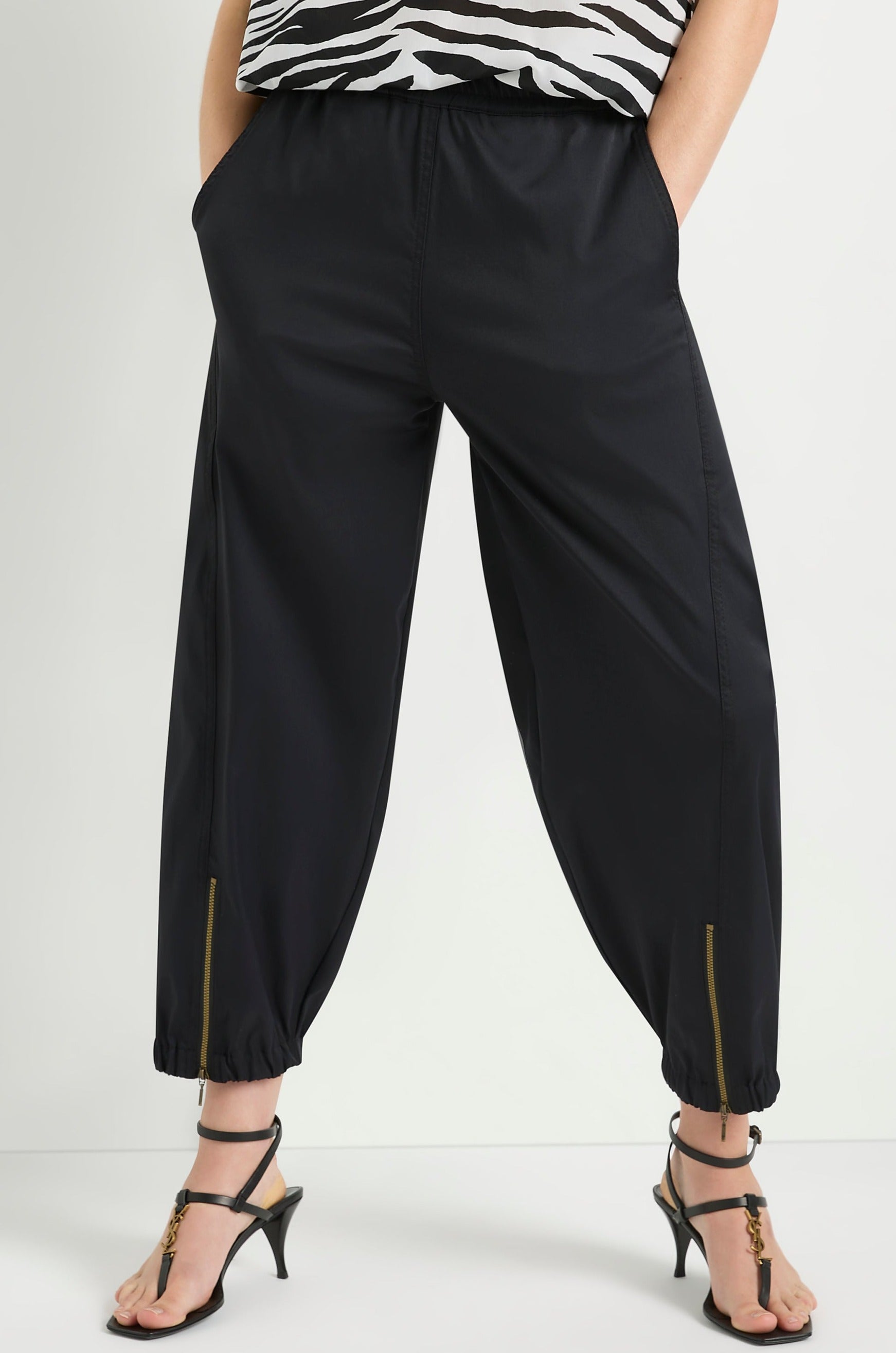 Embrace effortless style with the Mela Purdie Crop Club Pant Stretch Chintz. Crafted from refined micro twill, this pant offers a subtle stretch for ultimate comfort. Enjoy a relaxed fit and a dramatic barrel leg with zip detailing and an elasticated cuff hem. Made in Australia from Japanese fabrication.
