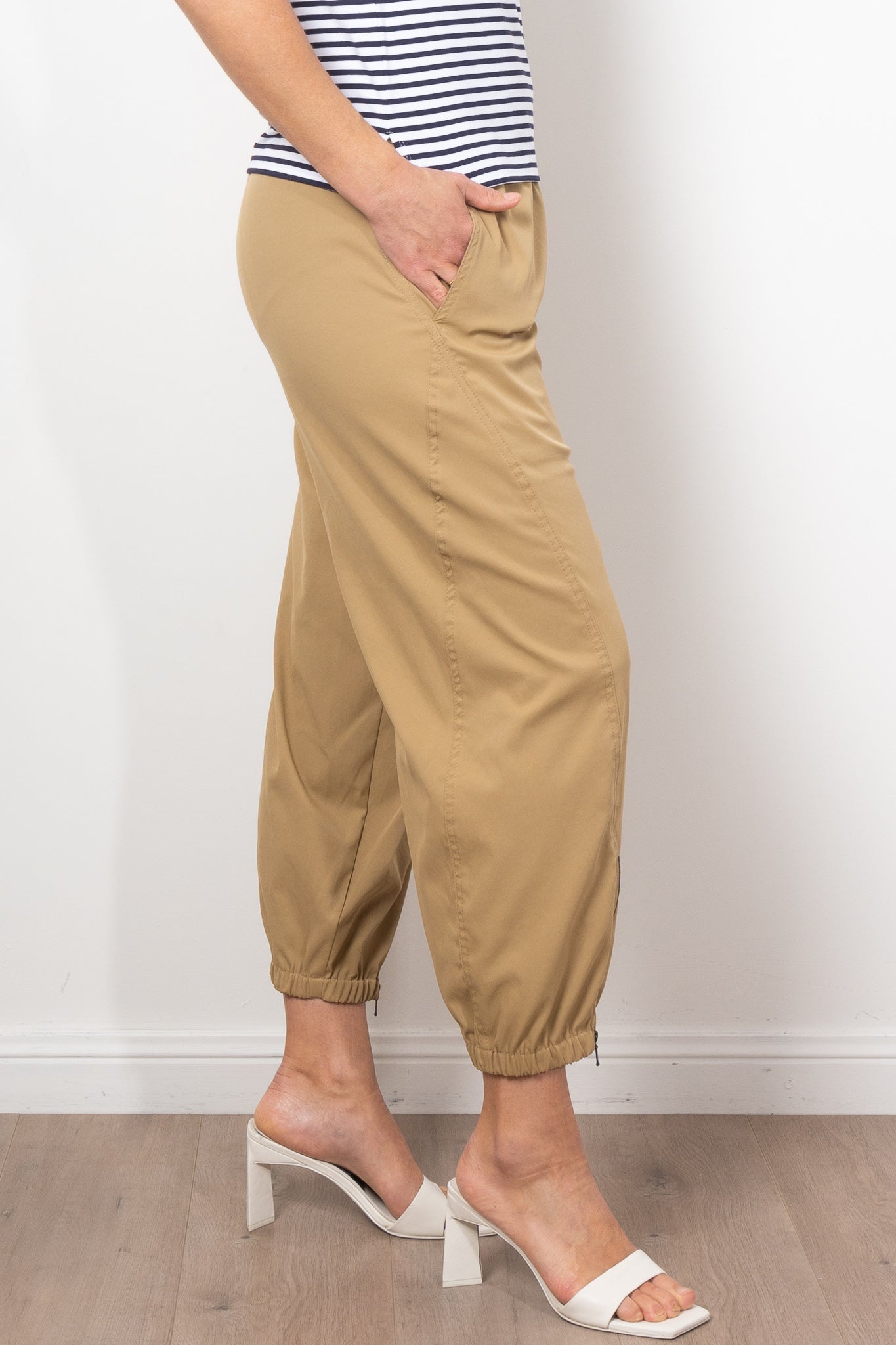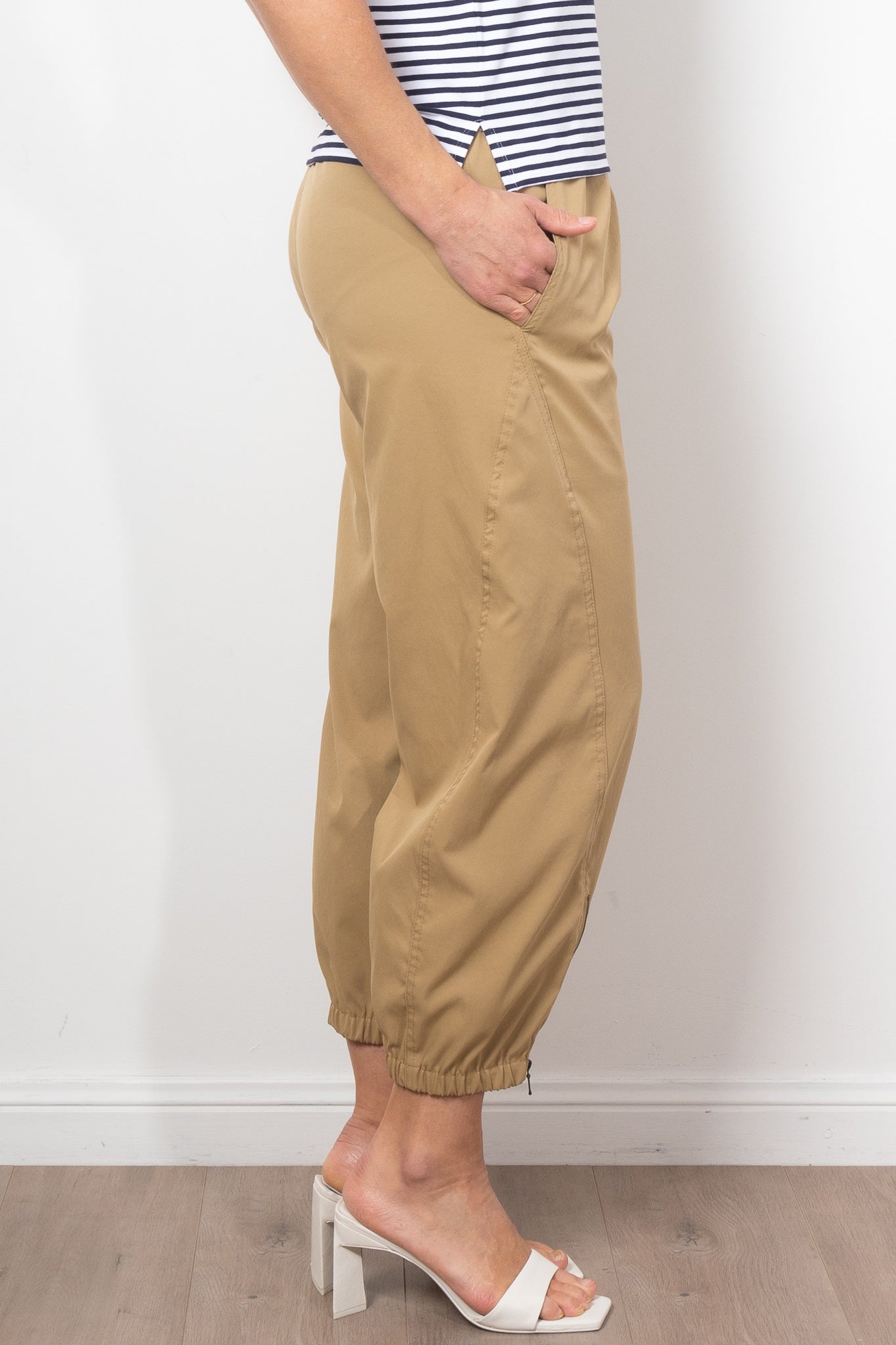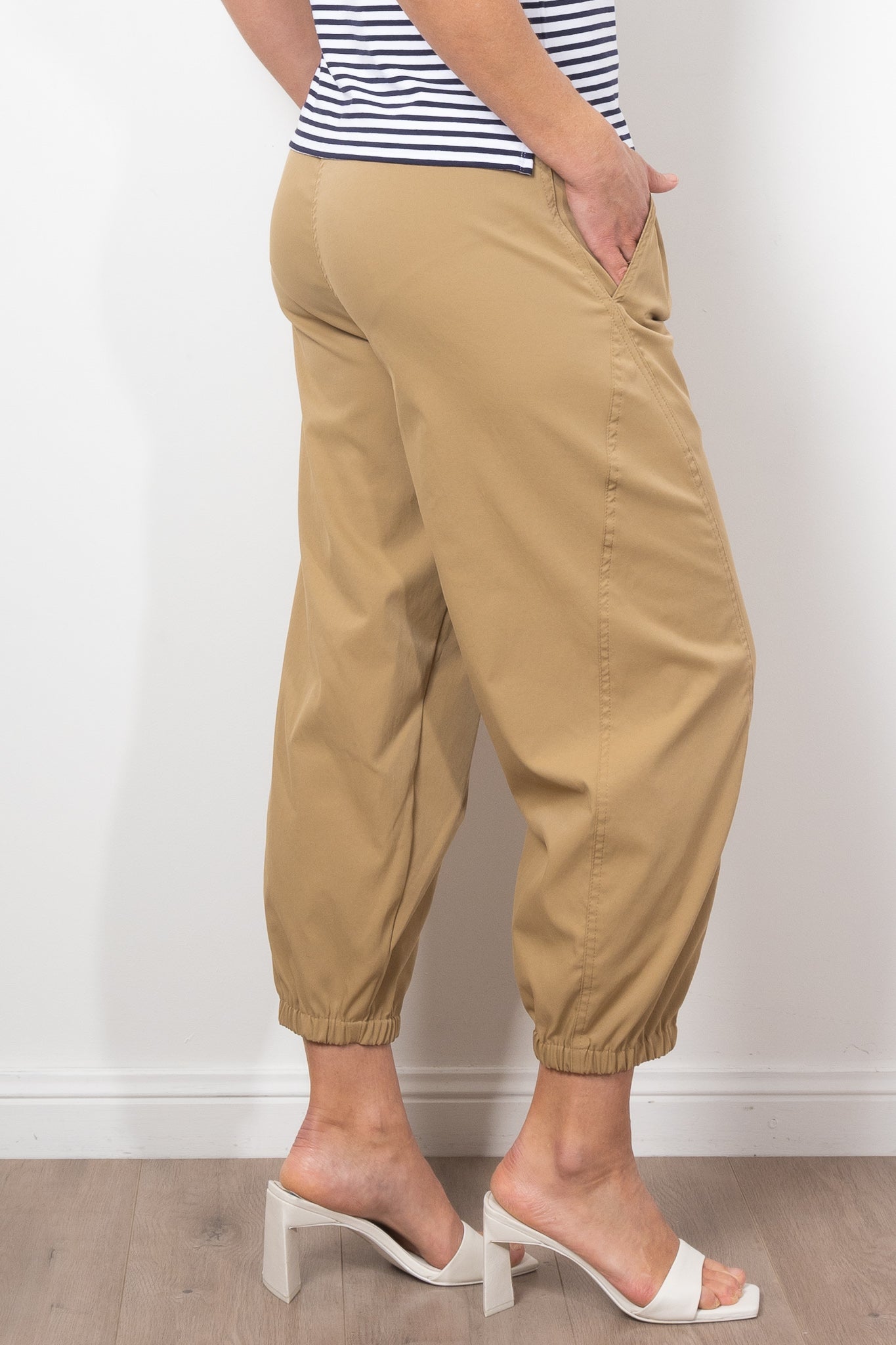 Embrace effortless style with the Mela Purdie Crop Club Pant Stretch Chintz. Crafted from refined micro twill, this pant offers a subtle stretch for ultimate comfort. Enjoy a relaxed fit and a dramatic barrel leg with zip detailing and an elasticated cuff hem. Made in Australia from Japanese fabrication.