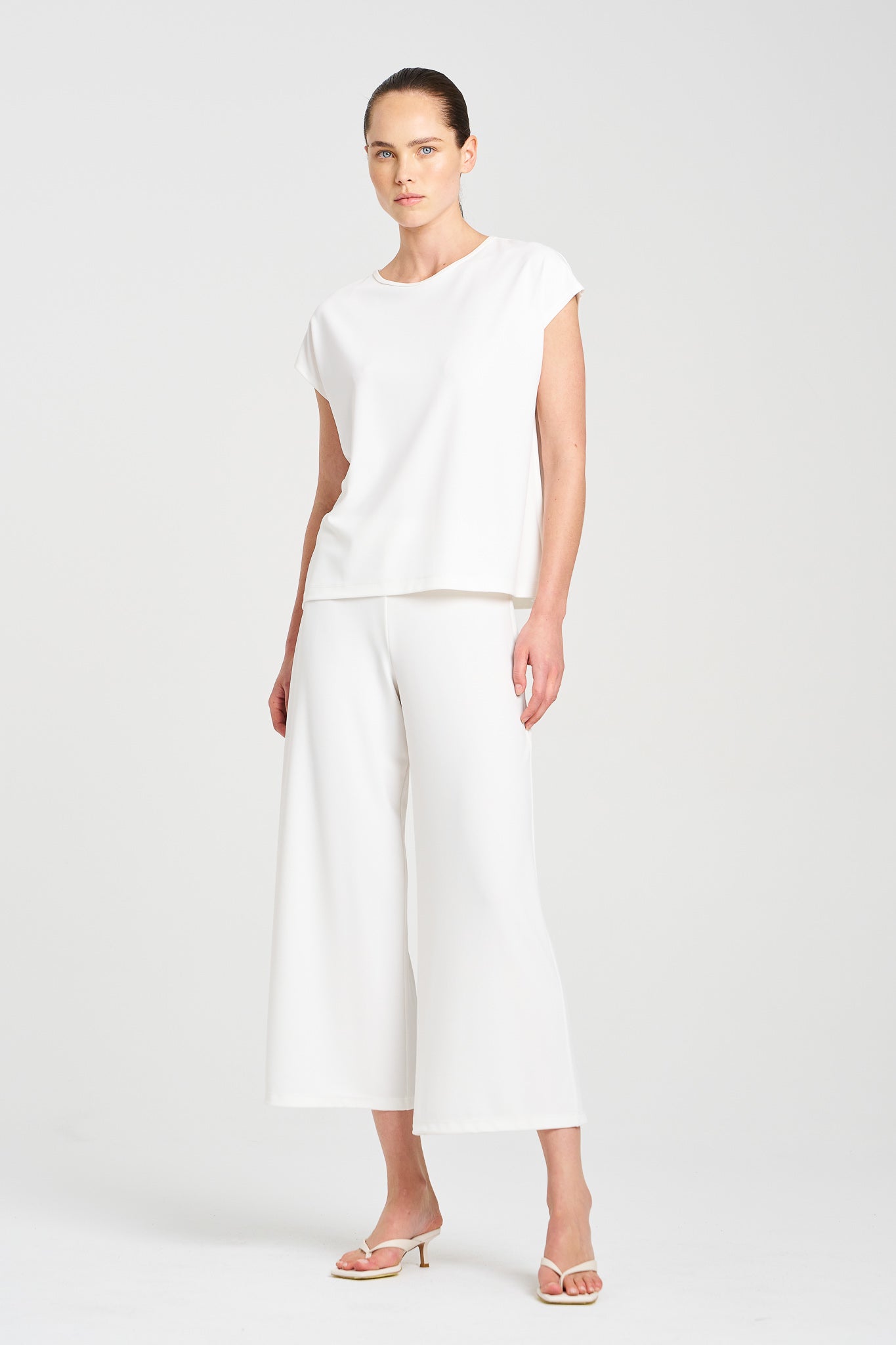 These Mela Purdie Crop Palazzo Pants are made from a compressed, matte finish Japanese fabrication that's comfortable and easy-care. The wide leg, cropped length, and elasticated waist make them a flattering and stylish choice. This limited edition powder knit fabric is designed and made in Australia.