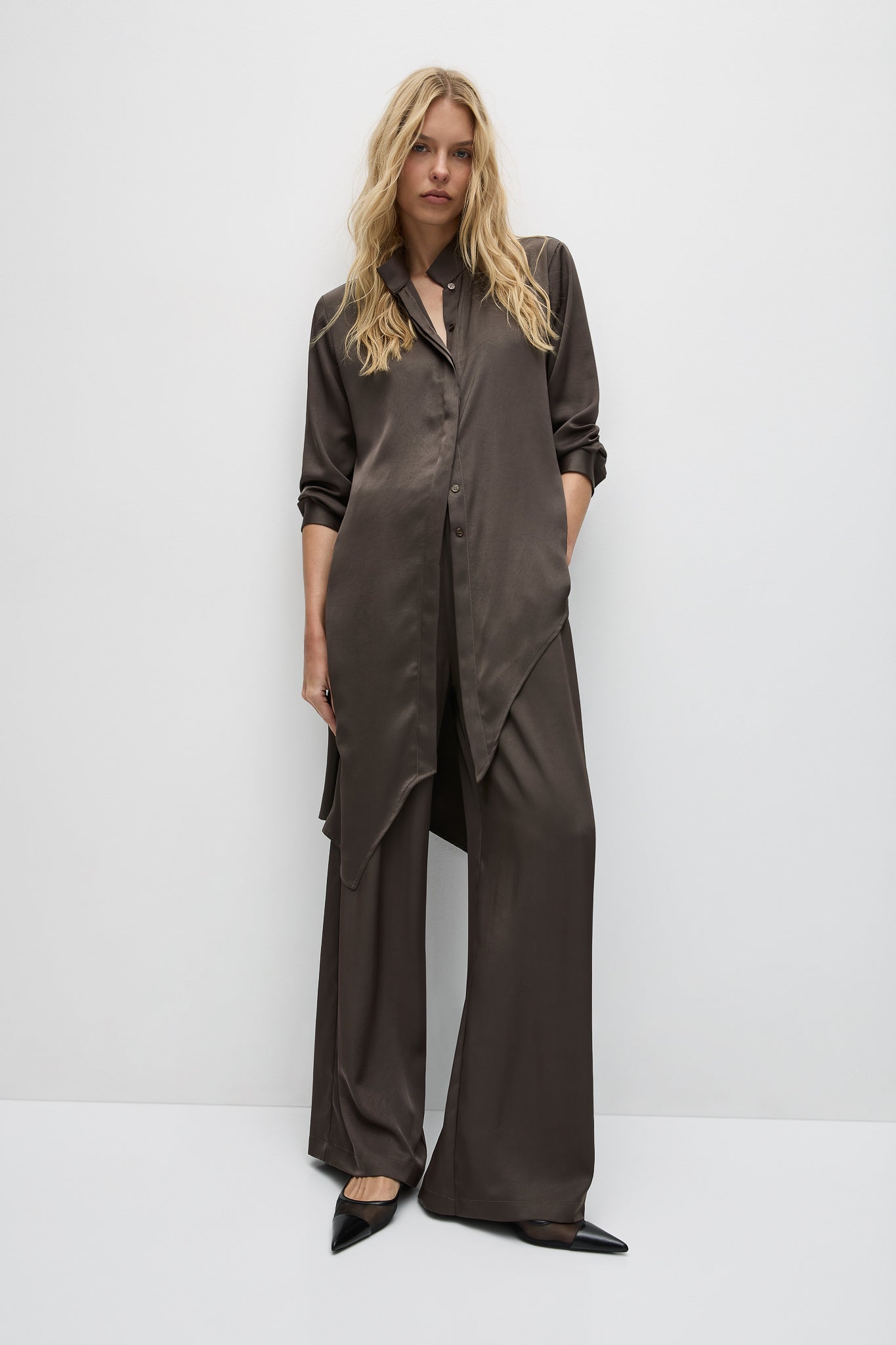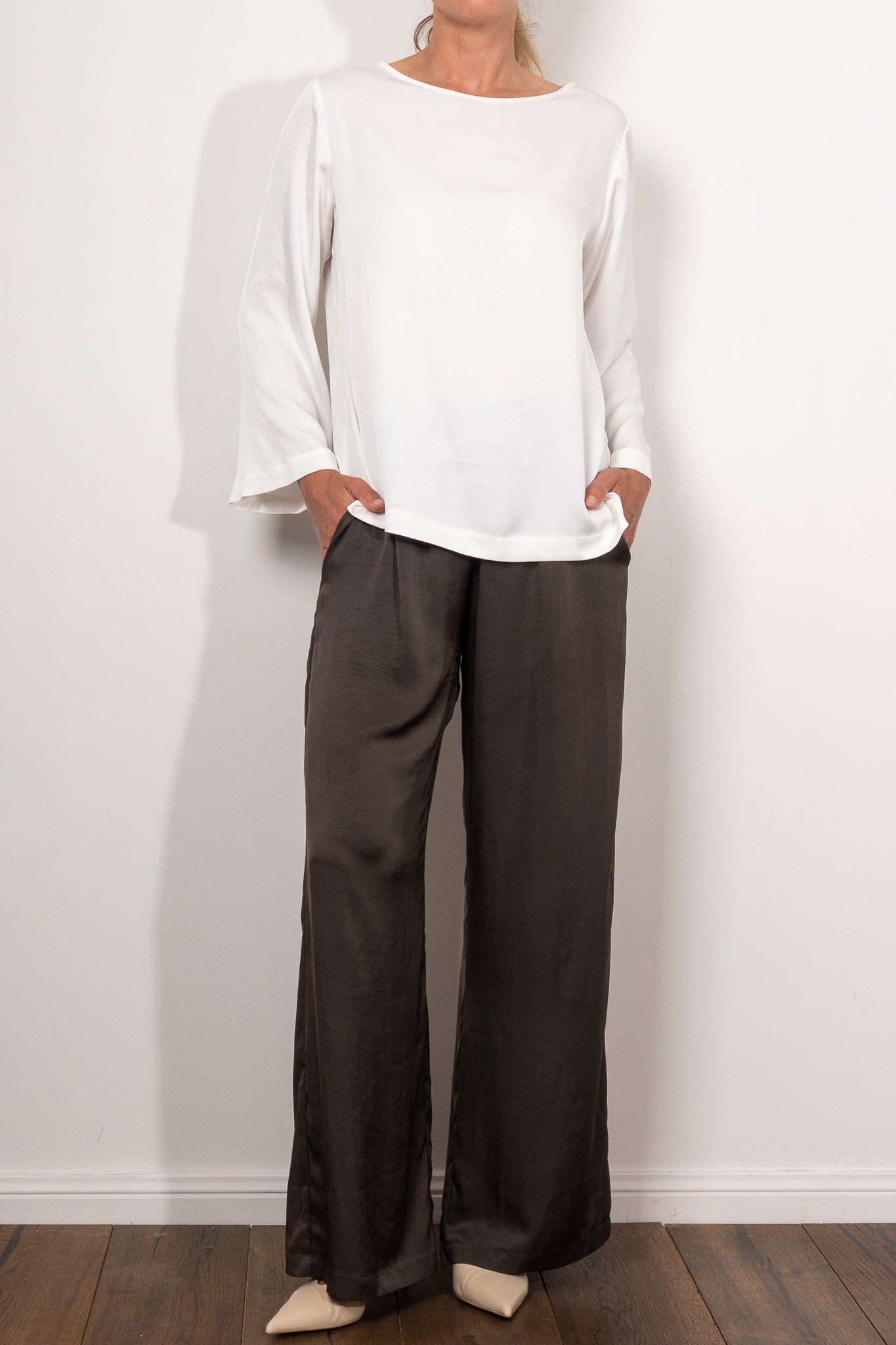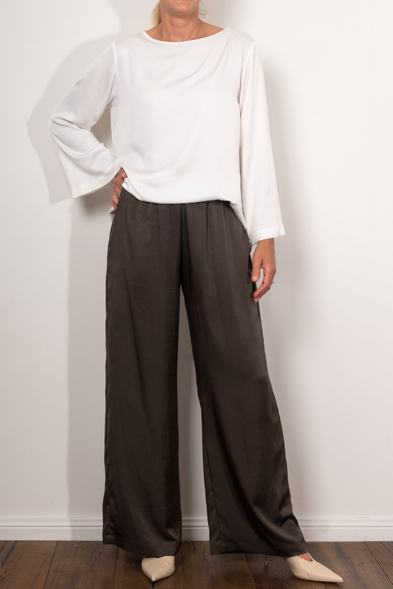 Enhance your wardrobe with the Mela Purdie Maxi Pace Pant. Crafted from premium Stretch Gloss fabric, this wide leg pant with a glass sheen offers both style and comfort. See full product description below for fabric and fit info.