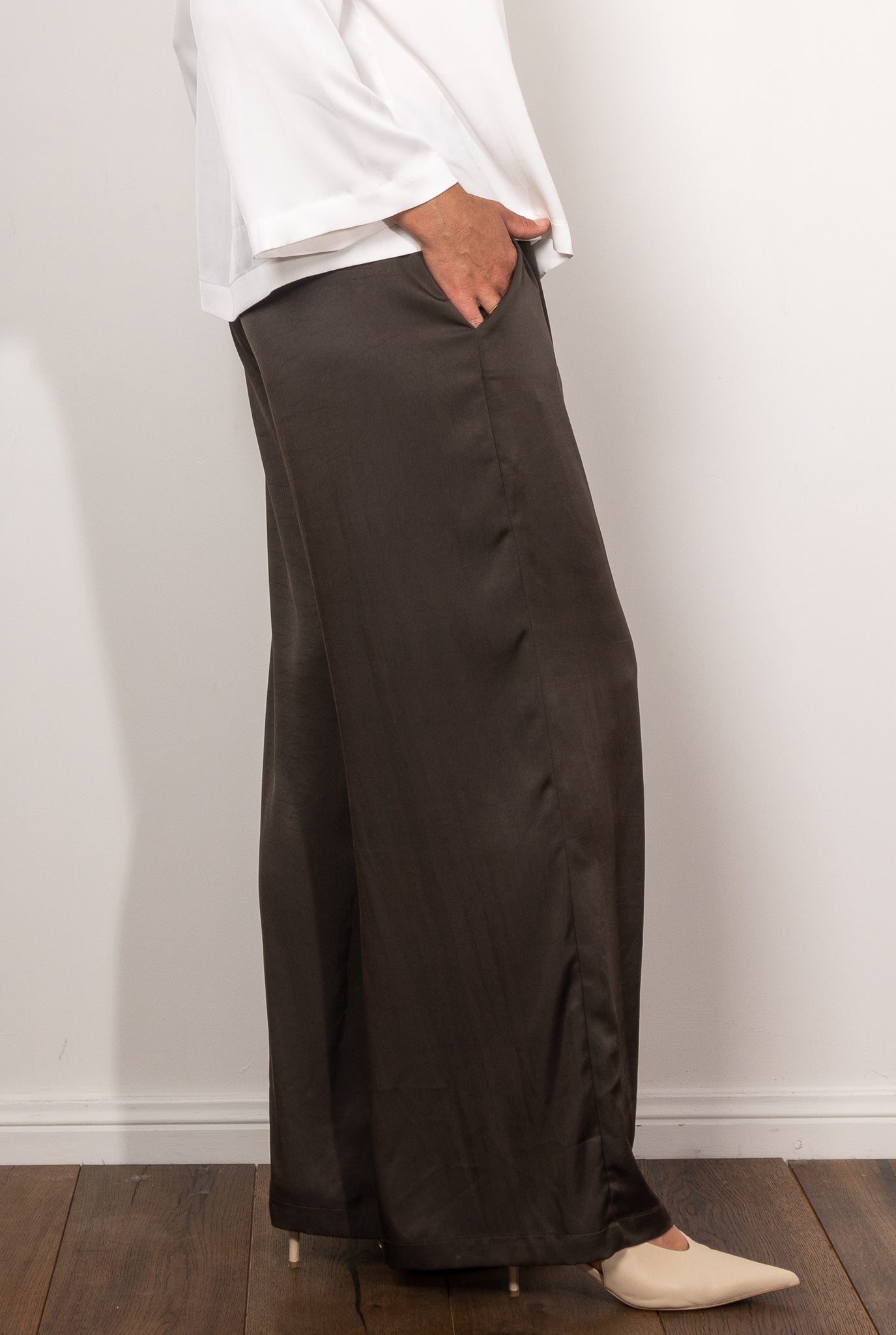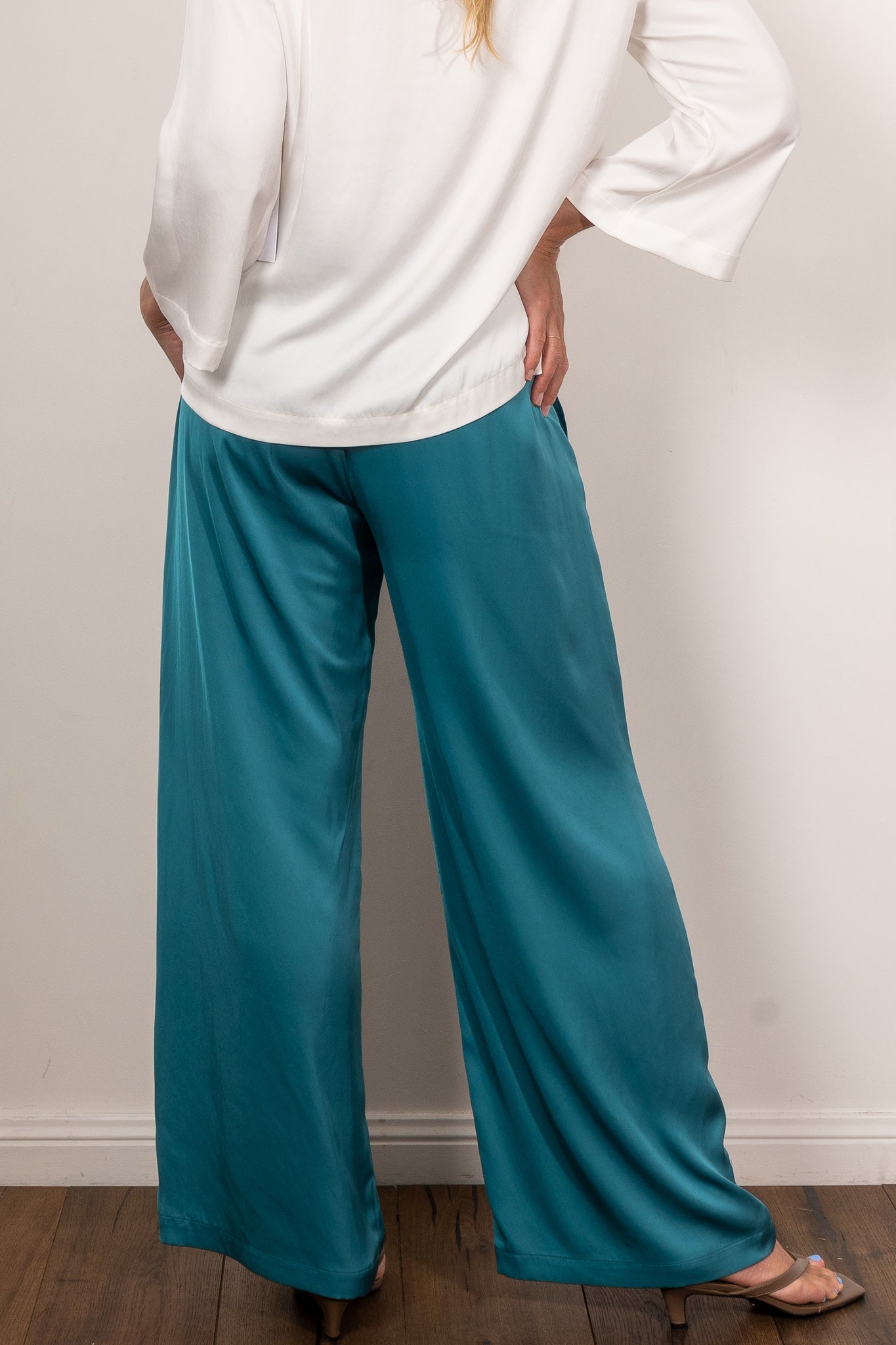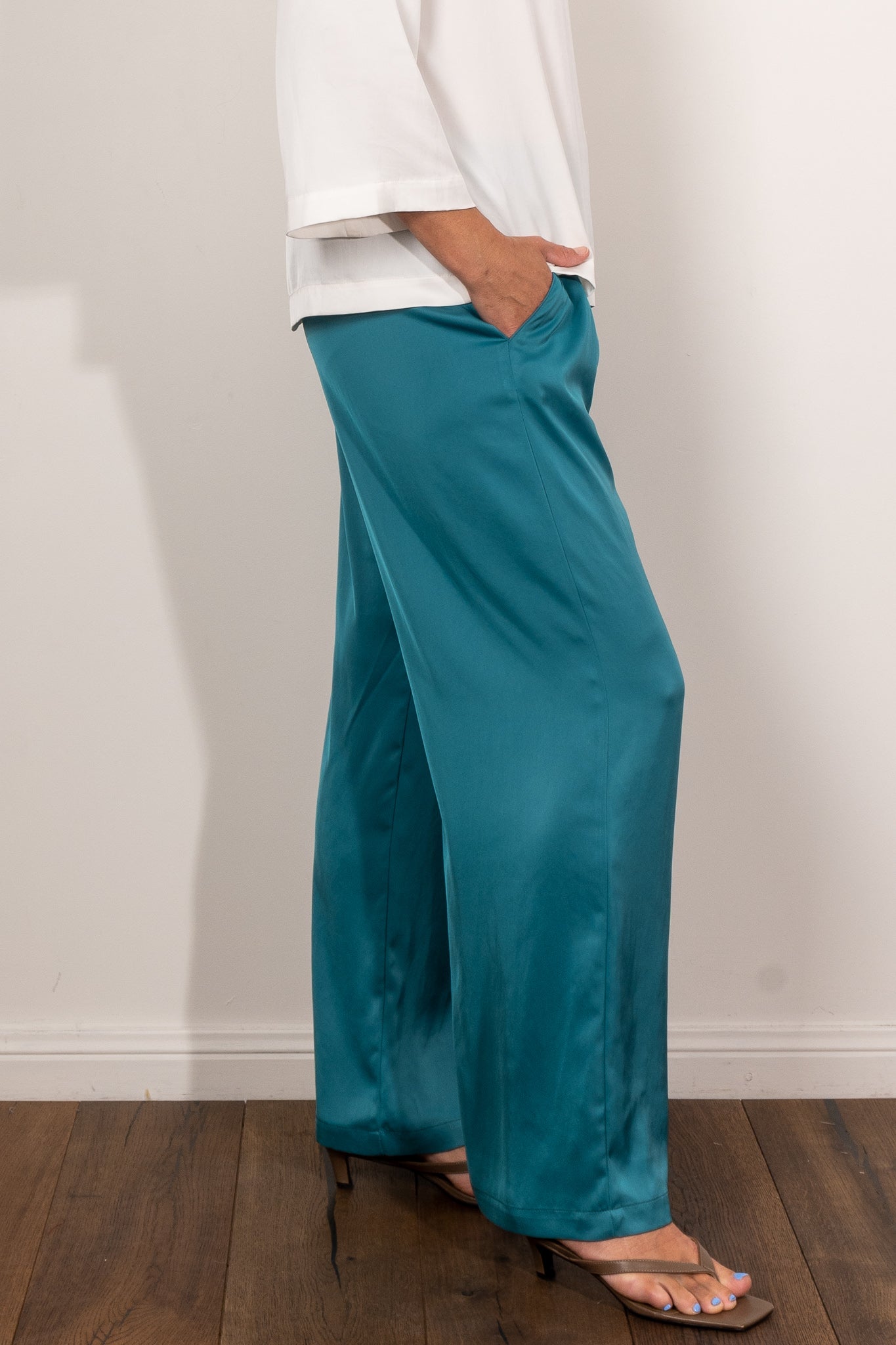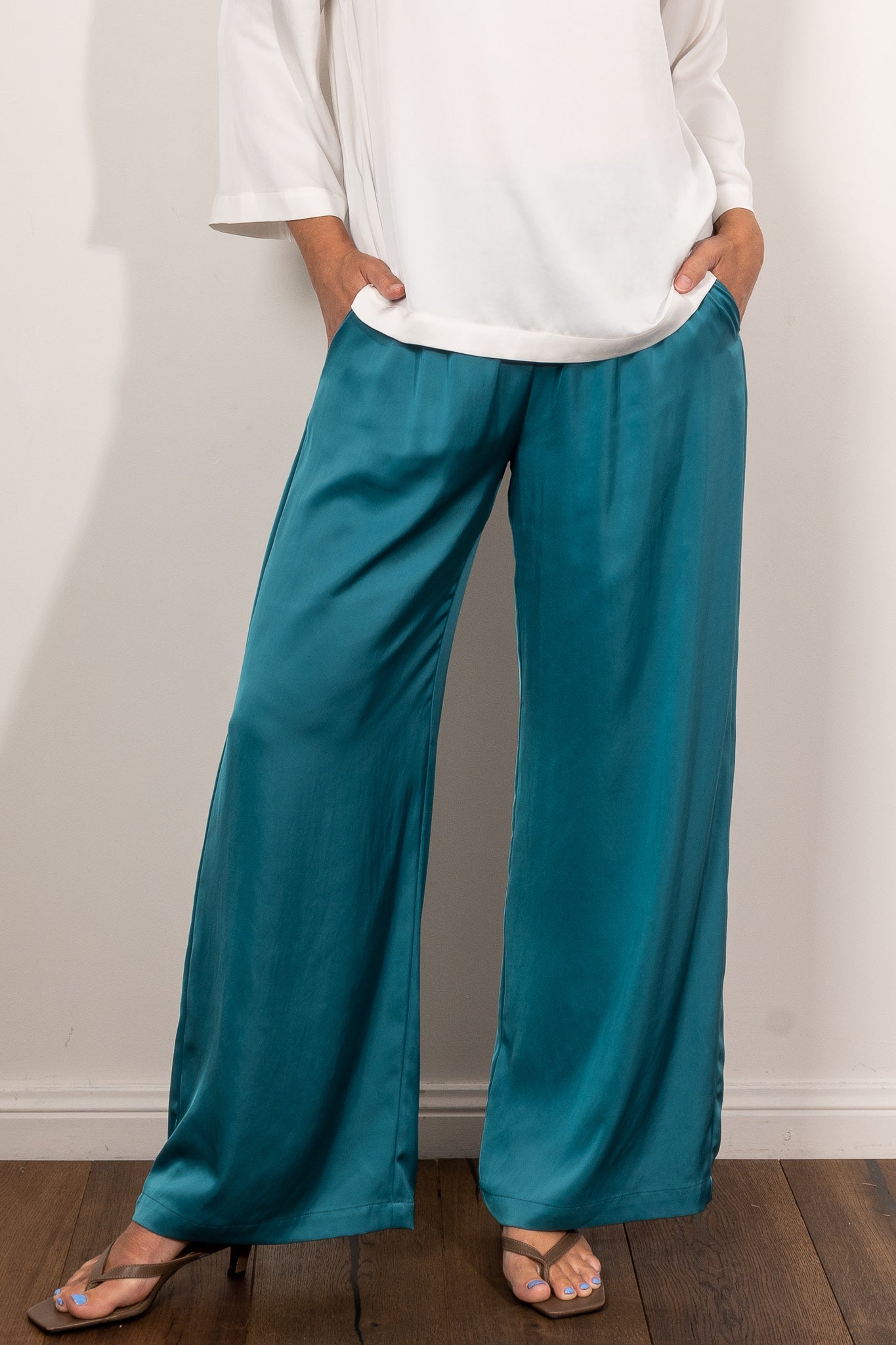 Enhance your wardrobe with the Mela Purdie Maxi Pace Pant. Crafted from premium Stretch Gloss fabric, this wide leg pant with a glass sheen offers both style and comfort. Features a standard rise, elasticated waist, and pockets at the hips. Designed and made in Australia for the perfect fit.