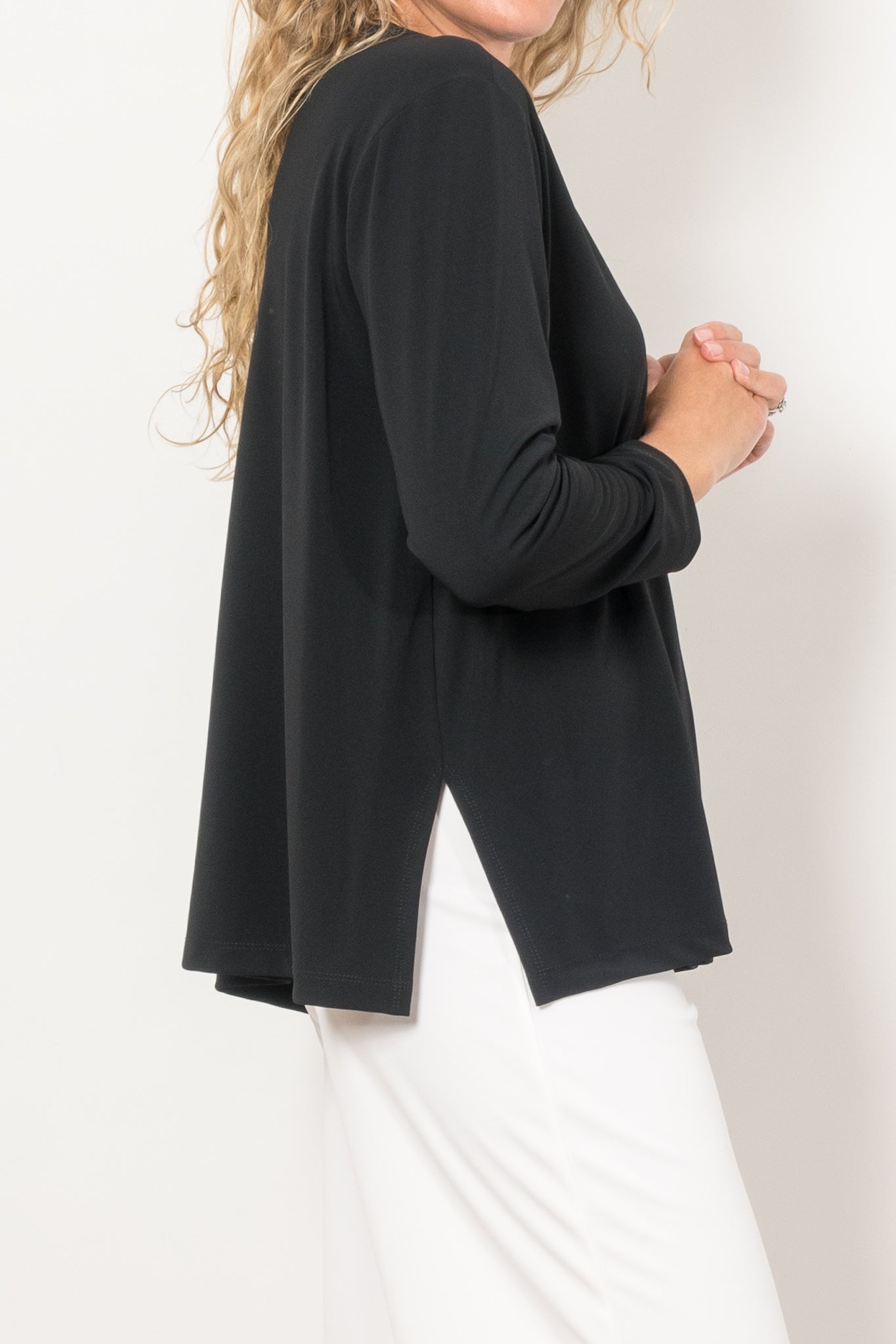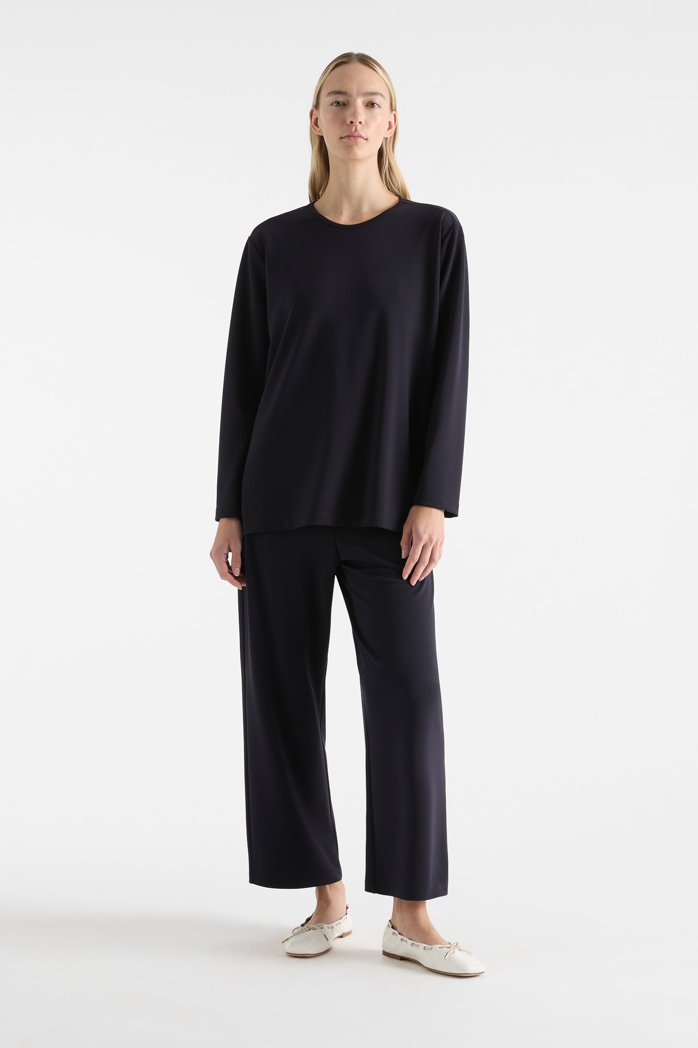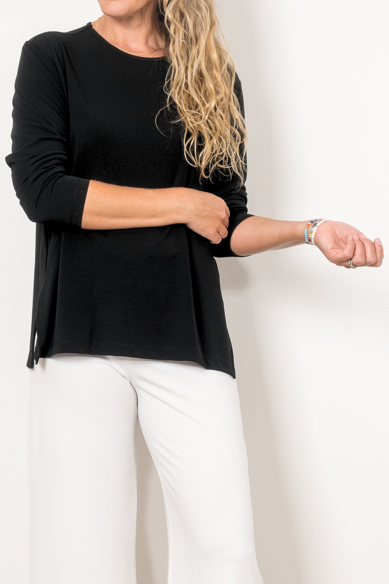 Indulge in effortless style with Mela Purdie's Chisel Sweater. Crafted from their signature Matte Finish Powder Knit, this sweater offers a stretchy and easy-care option for all occasions. Its loose, relaxed fit and mid length provide versatile styling, while the long sleeves and side split seams add a touch of elegance. Made with love in Australia. See full product description below for fabric and fit info.