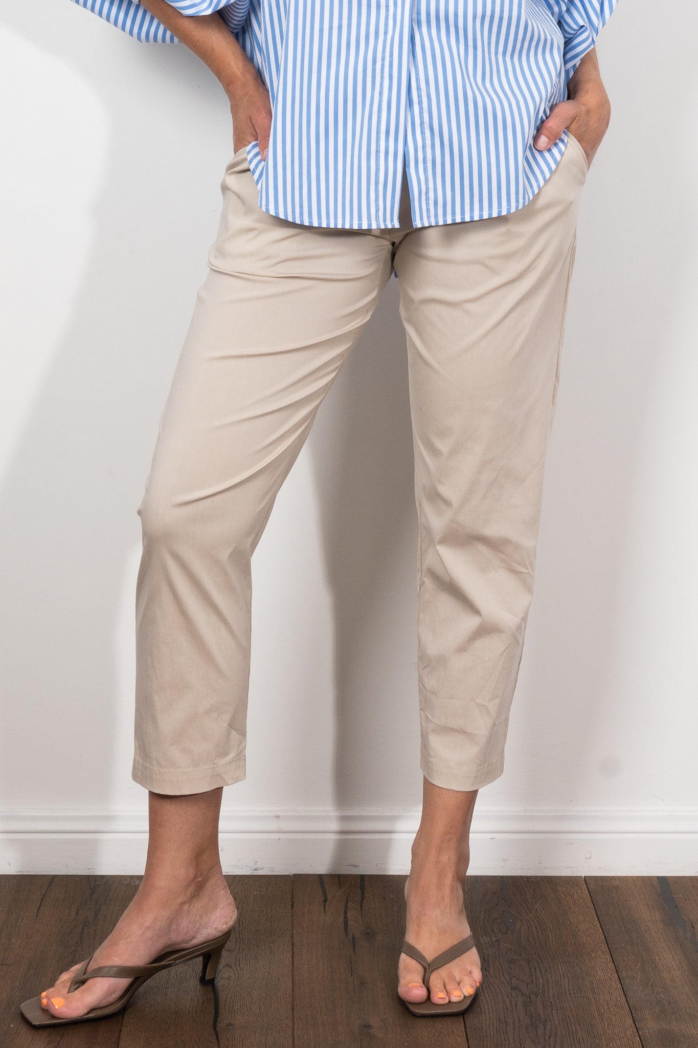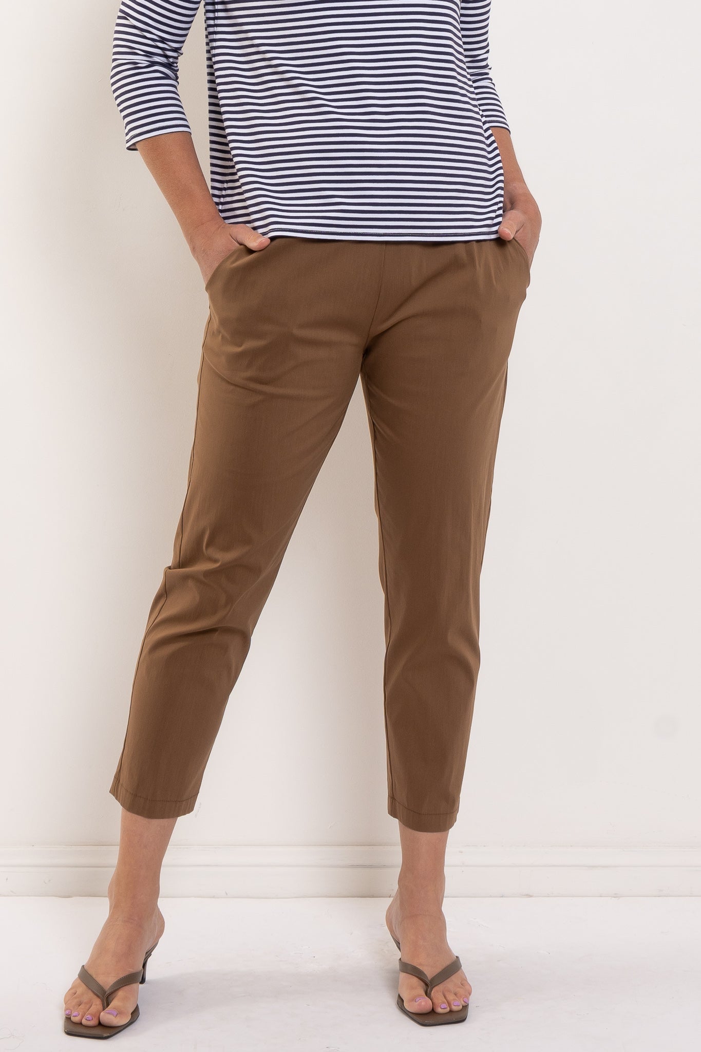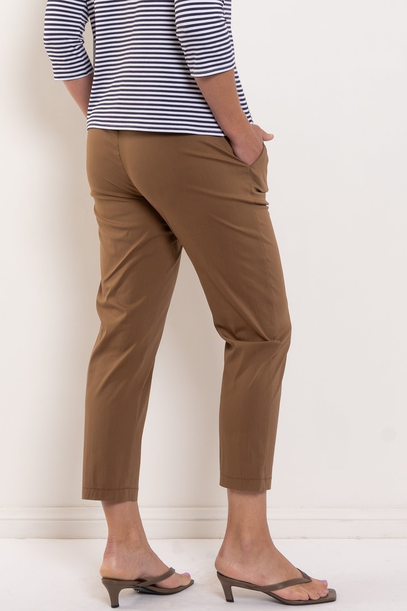 The Nomad Pant is made from Mela’s Microprene fabric. The Nomad pant comes in a 7/8 length and features an elasticated waistband and two slit pockets in a slim fit. This fabric has a smooth finish and a tapered cut making it super flattering on any figure. The Nomad is an incredibly versatile and comfortable pant for all seasons but is particularly suited to spring /summer thanks to its incredible light, breathable stretch cotton fabrication.