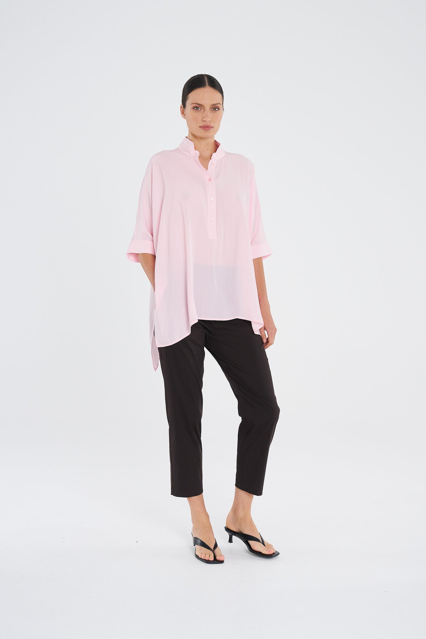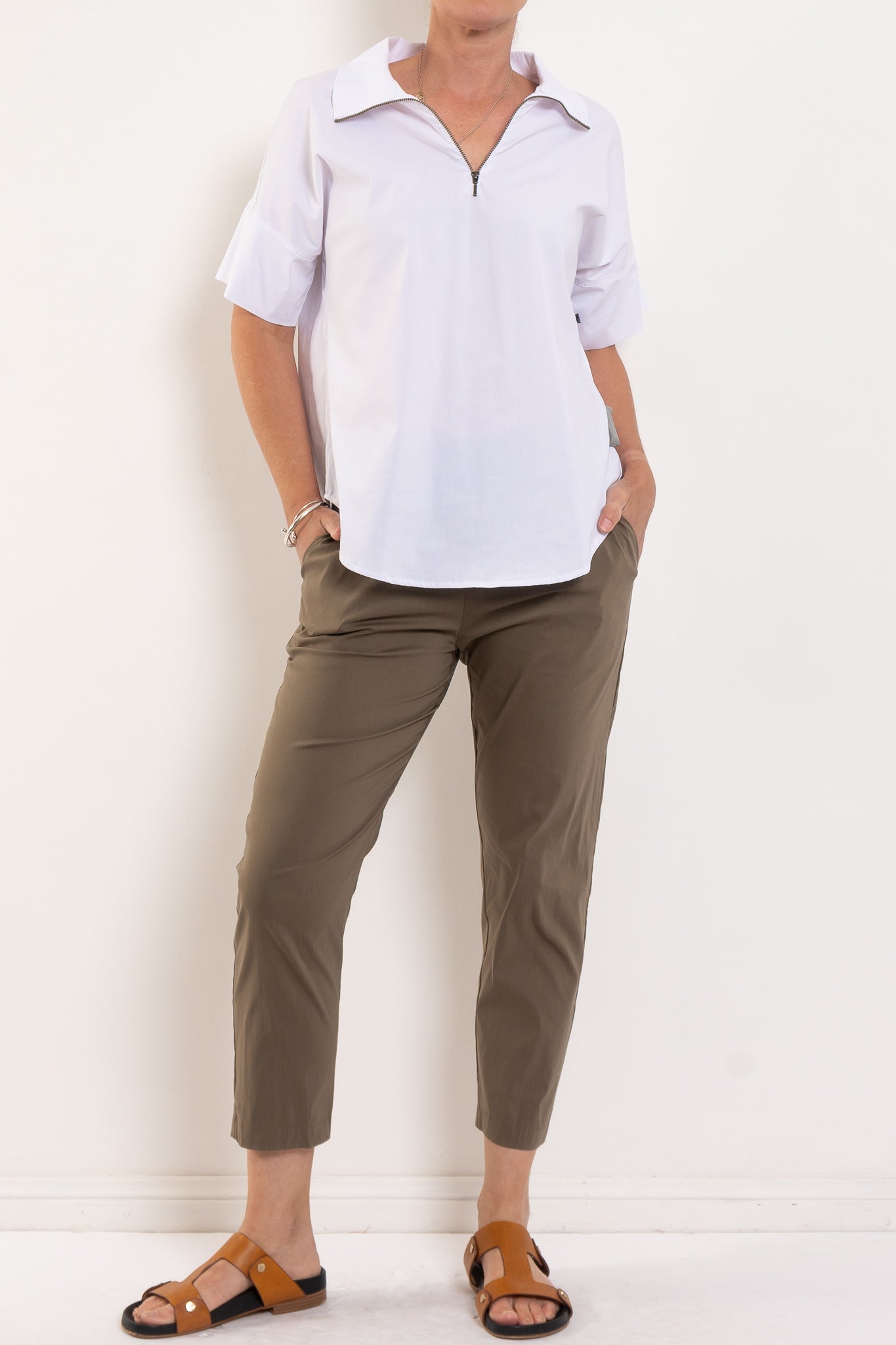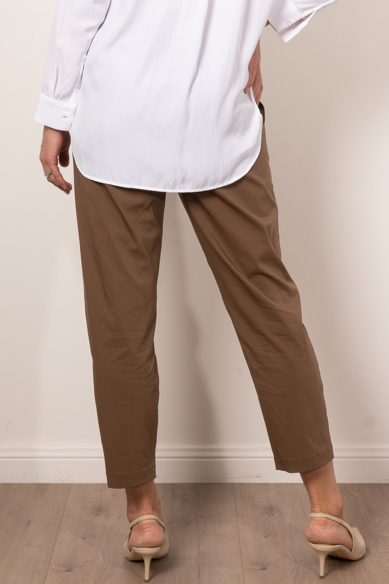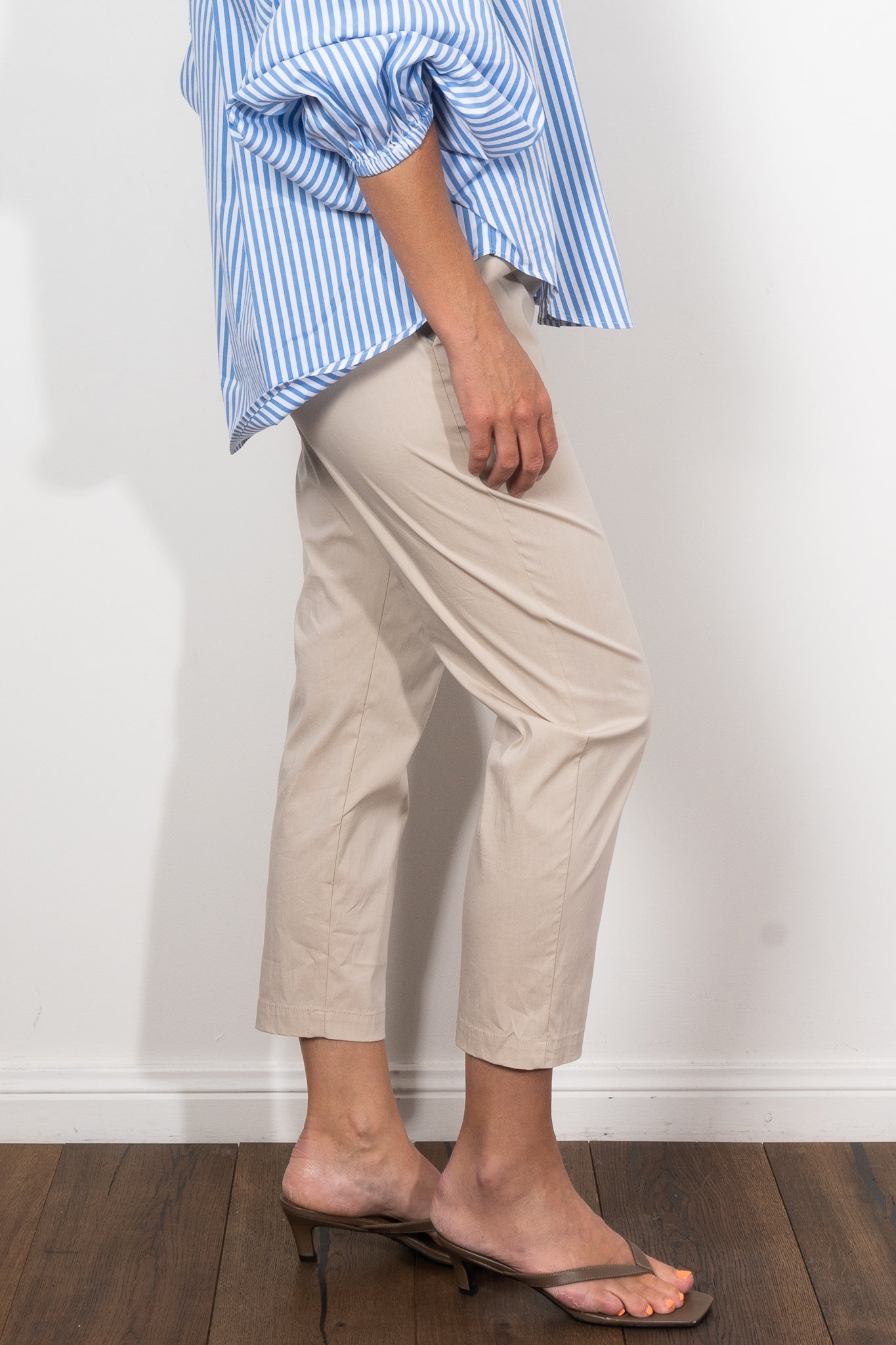 The Nomad Pant is made from Mela’s Microprene fabric. The Nomad pant comes in a 7/8 length and features an elasticated waistband and two slit pockets in a slim fit. This fabric has a smooth finish and a tapered cut making it super flattering on any figure. The Nomad is an incredibly versatile and comfortable pant for all seasons but is particularly suited to spring /summer thanks to its incredible light, breathable stretch cotton fabrication.