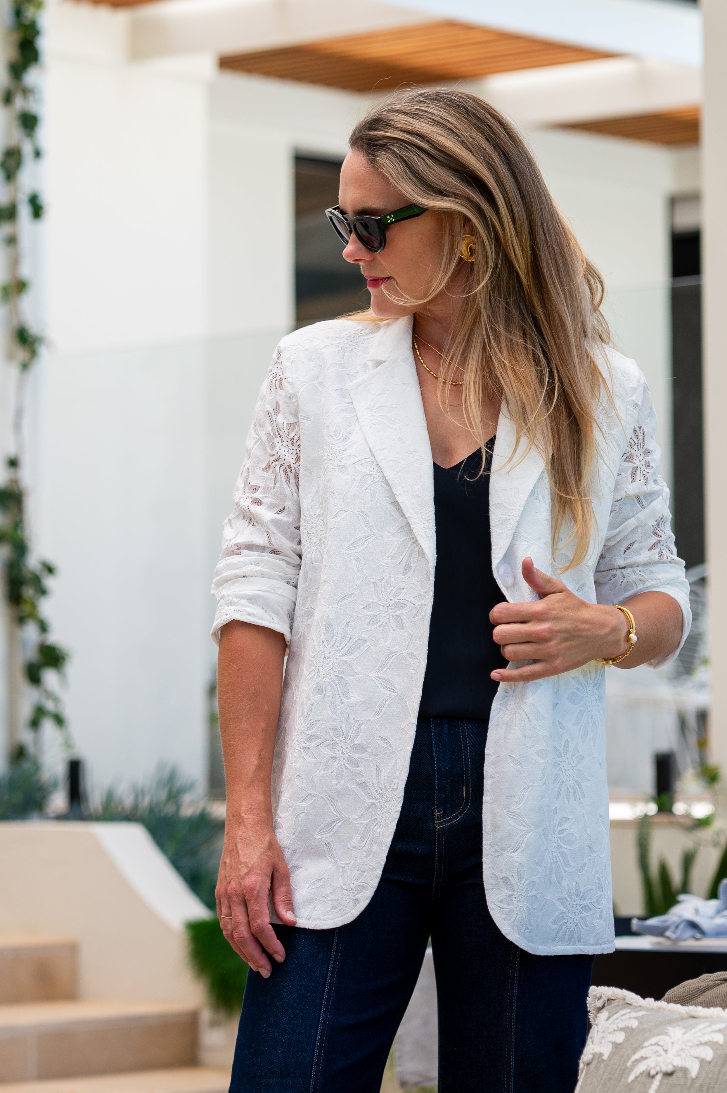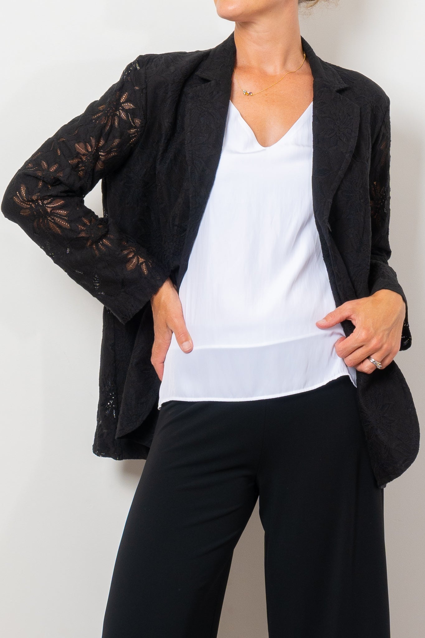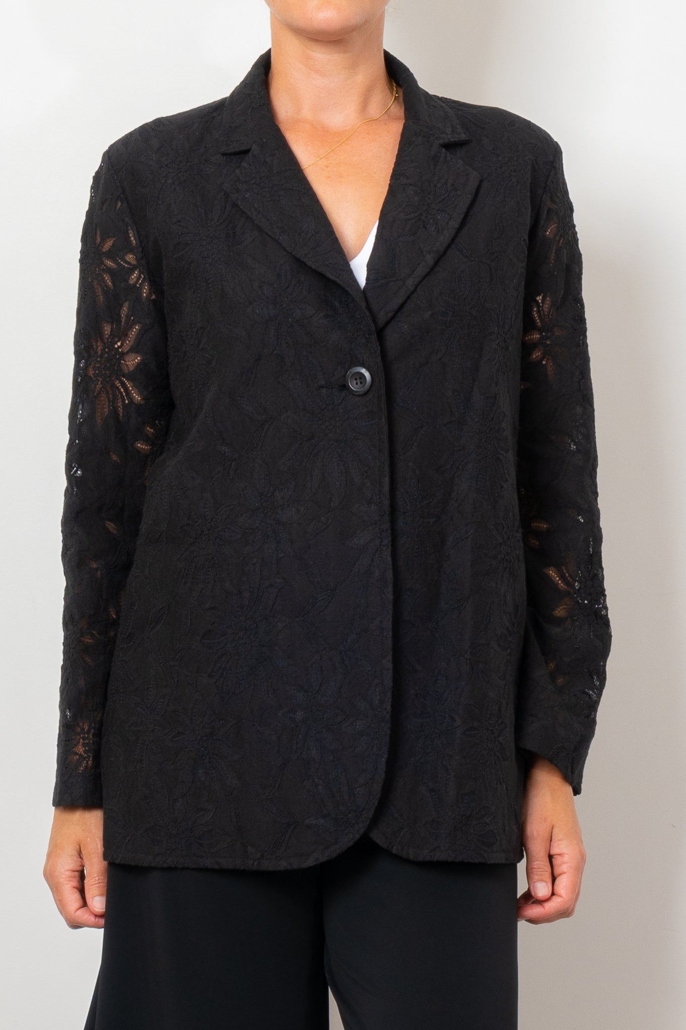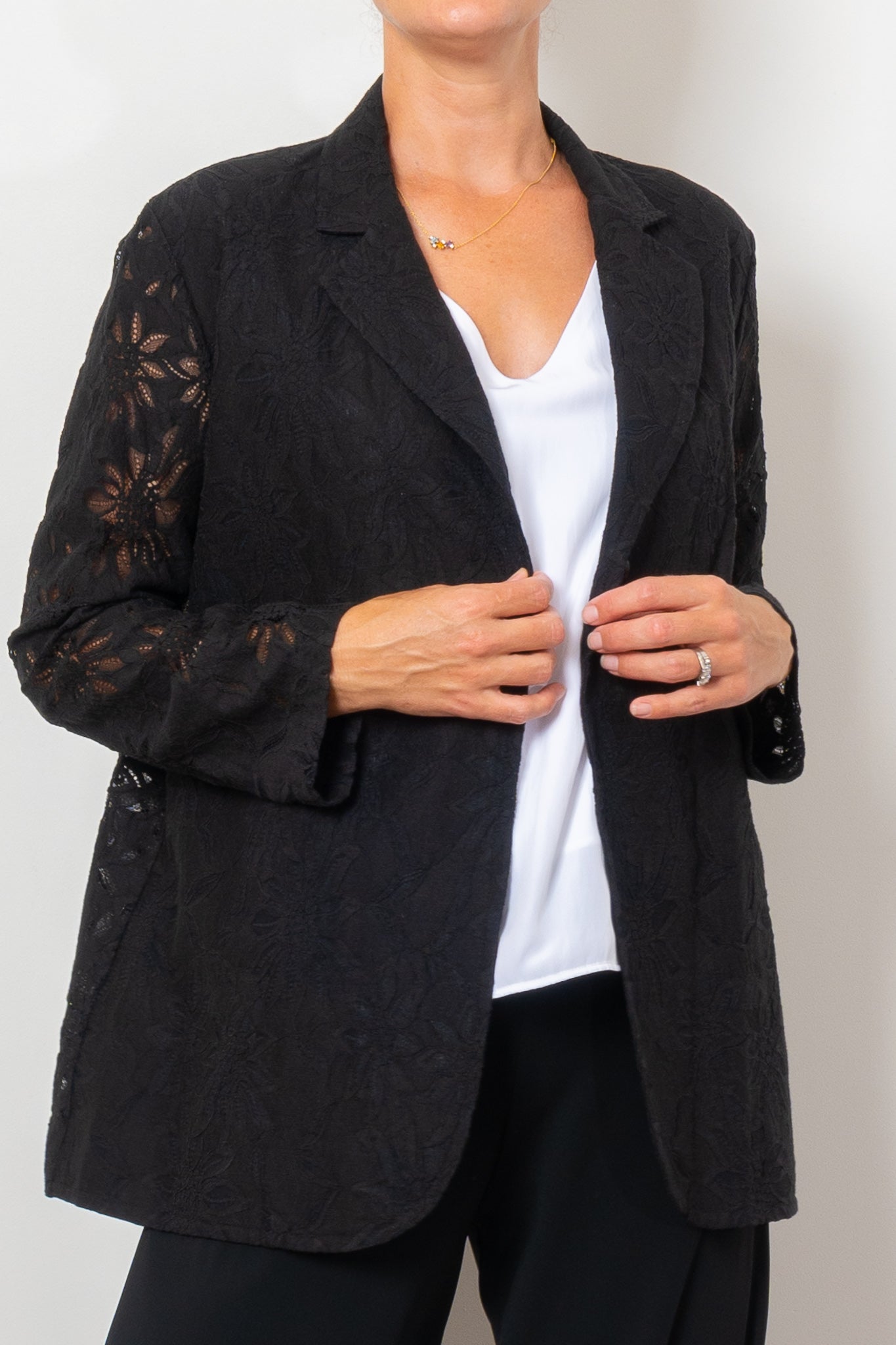 Update your Spring wardrobe with the Mela Purdie Button Blazer in Flora Lace. Made in Australia from the luxurious and detailed Flora Lace fabric, this blazer boasts a timeless, tailored fit that exudes sophistication. The knit, stretch fabric and double layer fronts provide a comfortable and flattering silhouette, while the one button closure and full length sleeves add elegance. Designed and made in Australia.