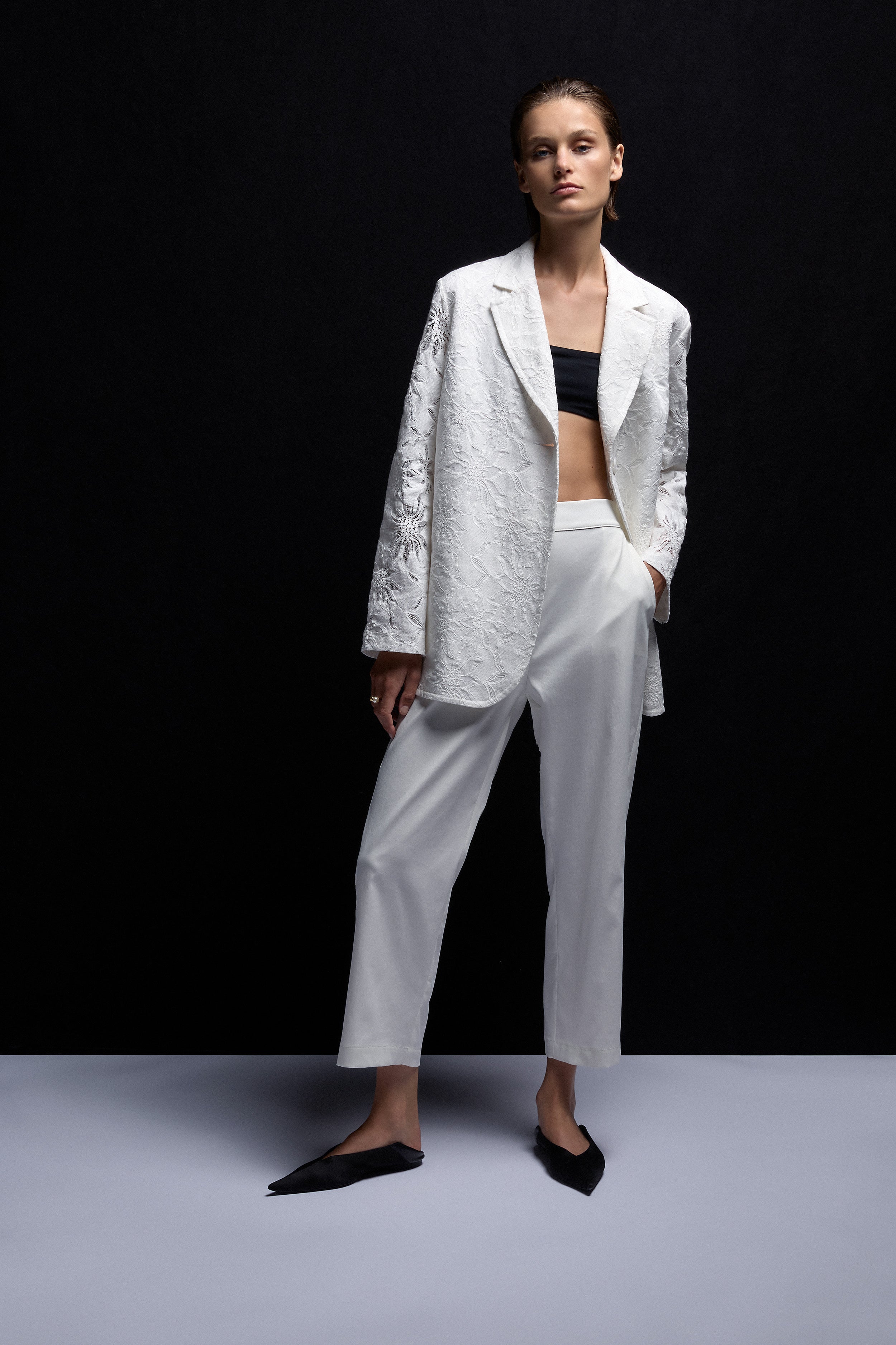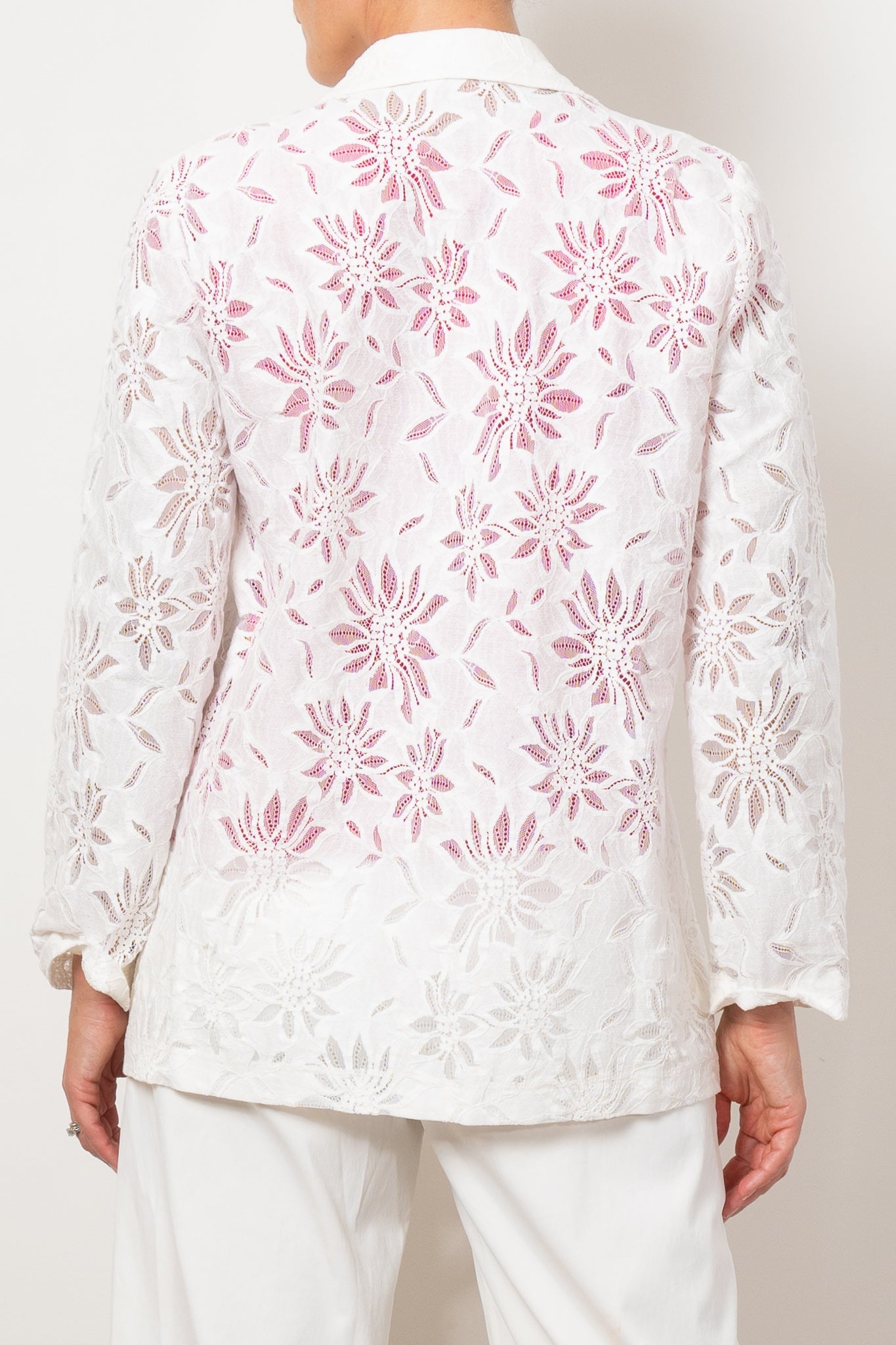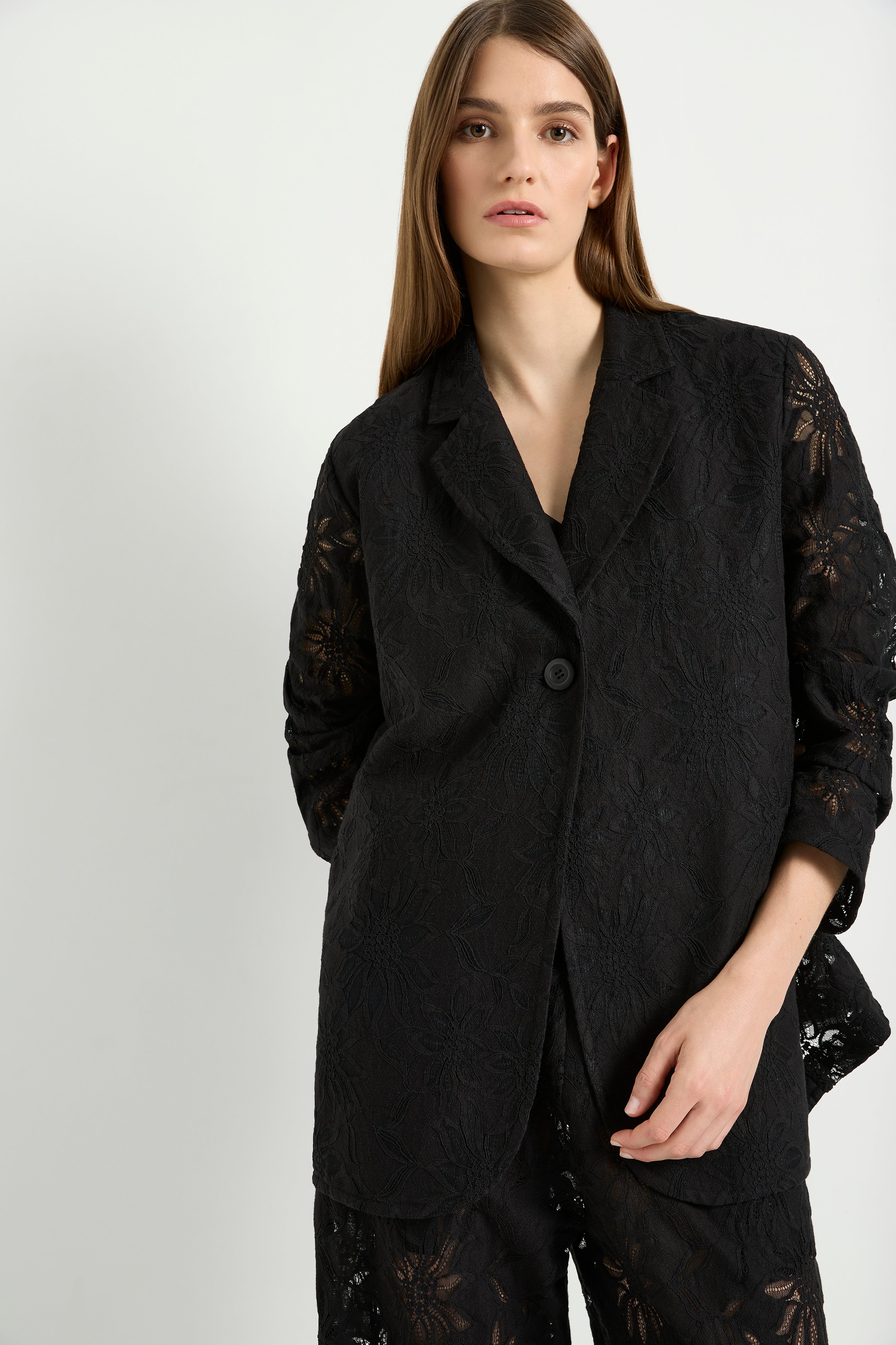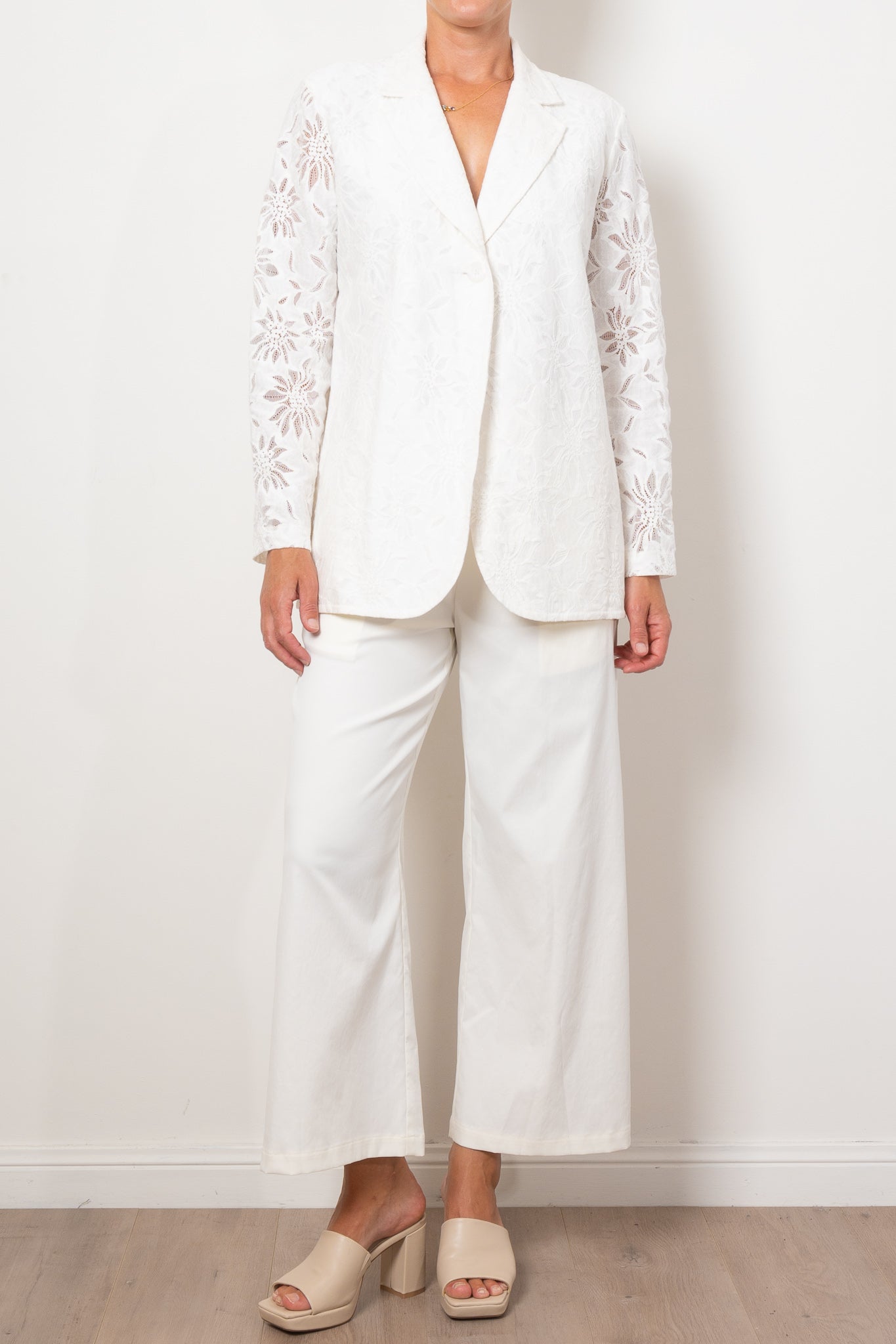 Update your Spring wardrobe with the Mela Purdie Button Blazer in Flora Lace. Made in Australia from the luxurious and detailed Flora Lace fabric, this blazer boasts a timeless, tailored fit that exudes sophistication. The knit, stretch fabric and double layer fronts provide a comfortable and flattering silhouette, while the one button closure and full length sleeves add elegance. Designed and made in Australia.