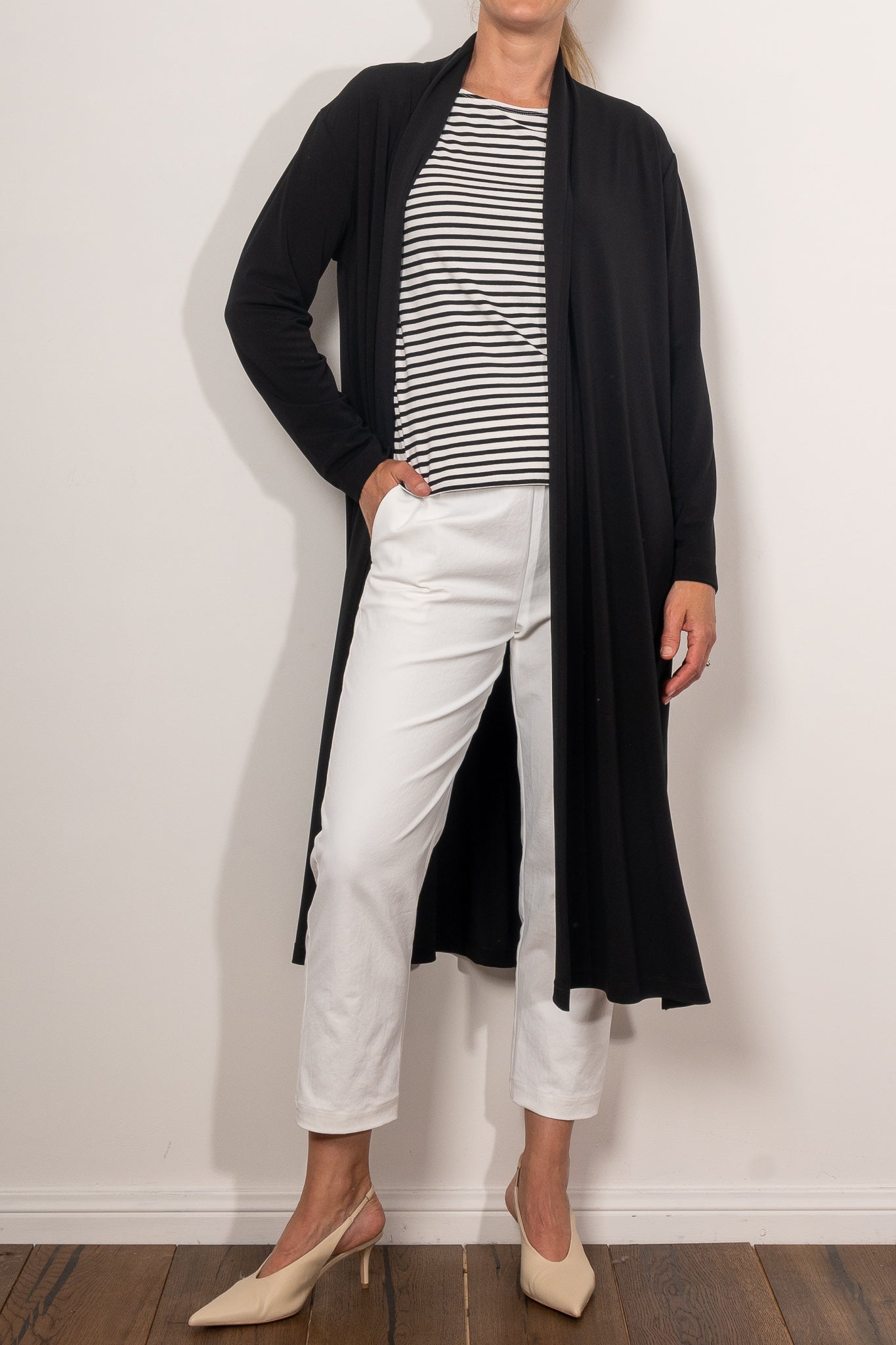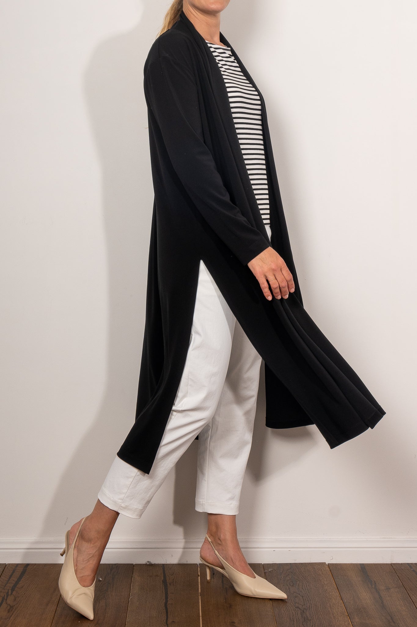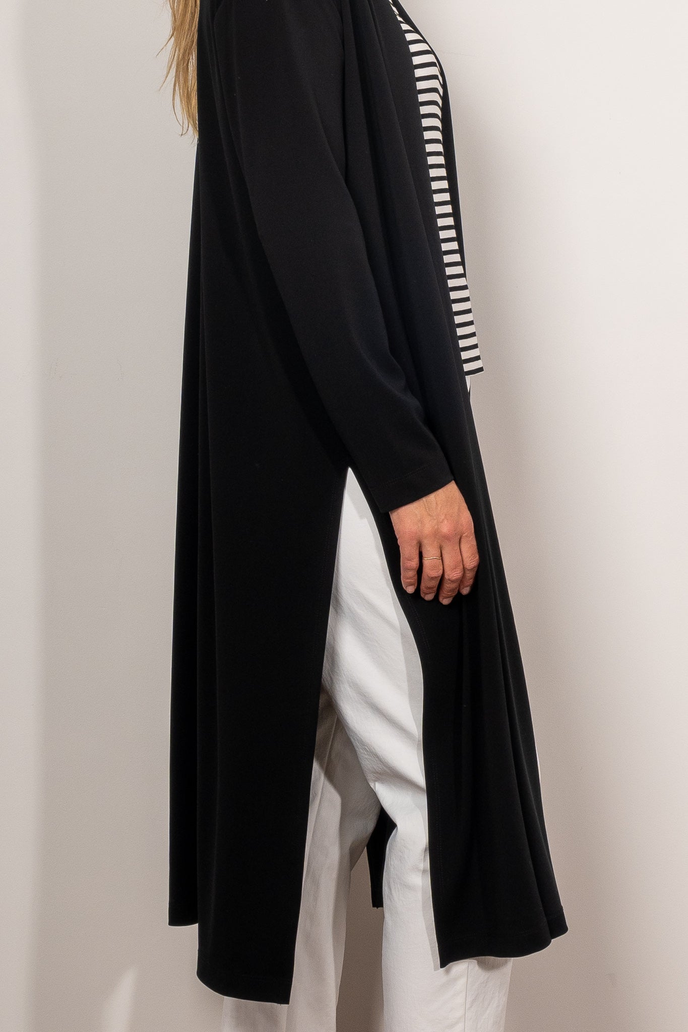 Effortlessly chic and versatile, the Mela Purdie Vent Duster is a must-have for any wardrobe. Its drapey silhouette and fold over front opening add a touch of elegance, while the compressed Japanese Stretch Knit fabric ensures comfort and style. See full product description below for fabric and fit info.