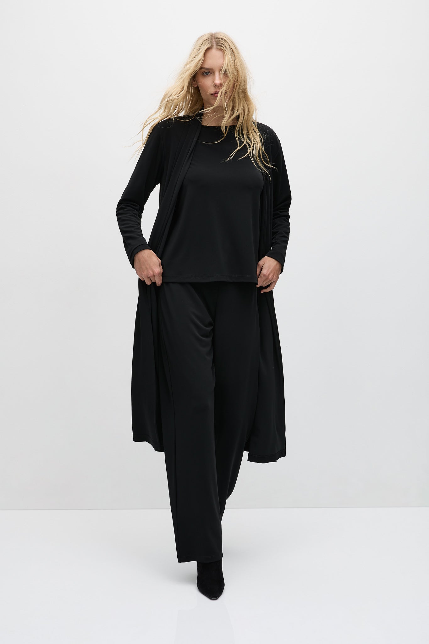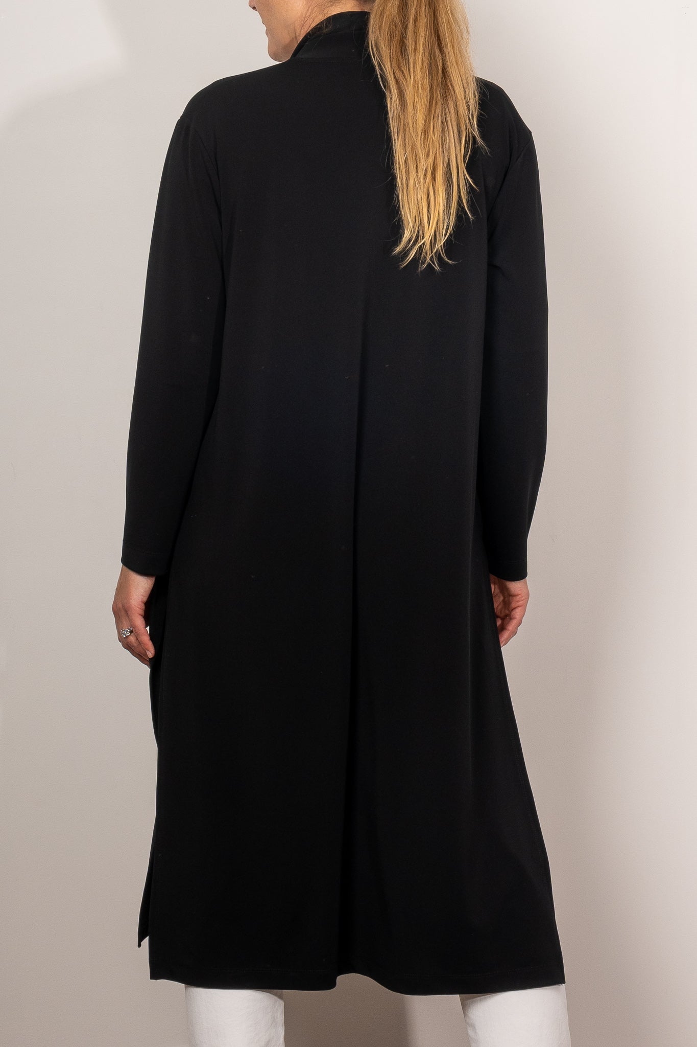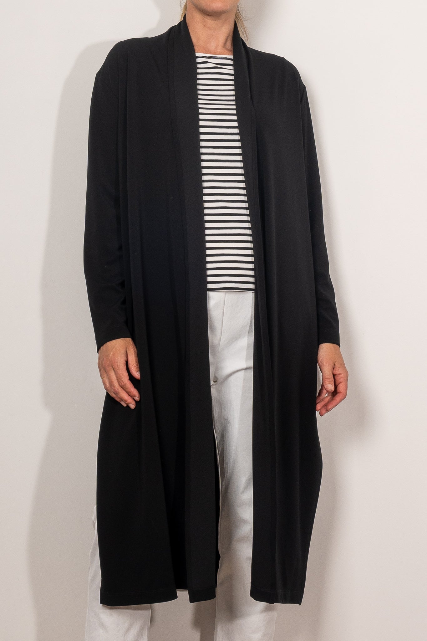 Effortlessly chic and versatile, the Mela Purdie Vent Duster is a must-have for any wardrobe. Its drapey silhouette and fold over front opening add a touch of elegance, while the compressed Japanese Stretch Knit fabric ensures comfort and style. See full product description below for fabric and fit info.
