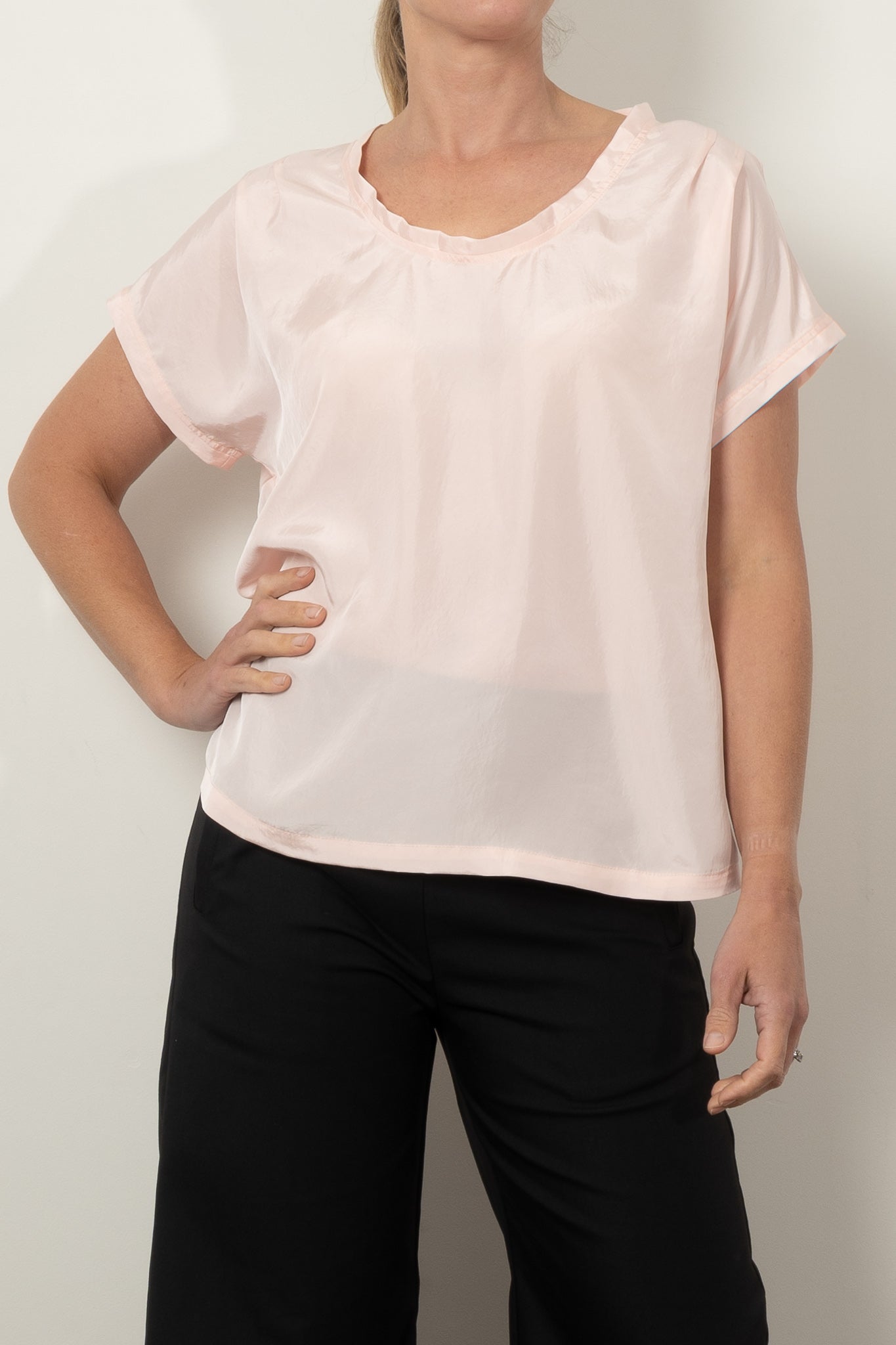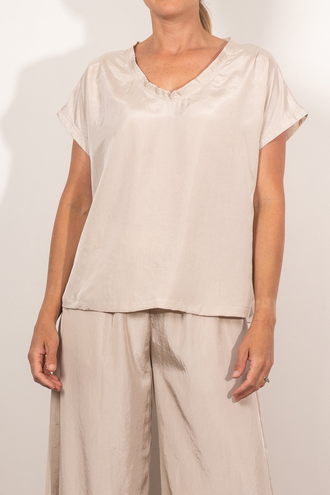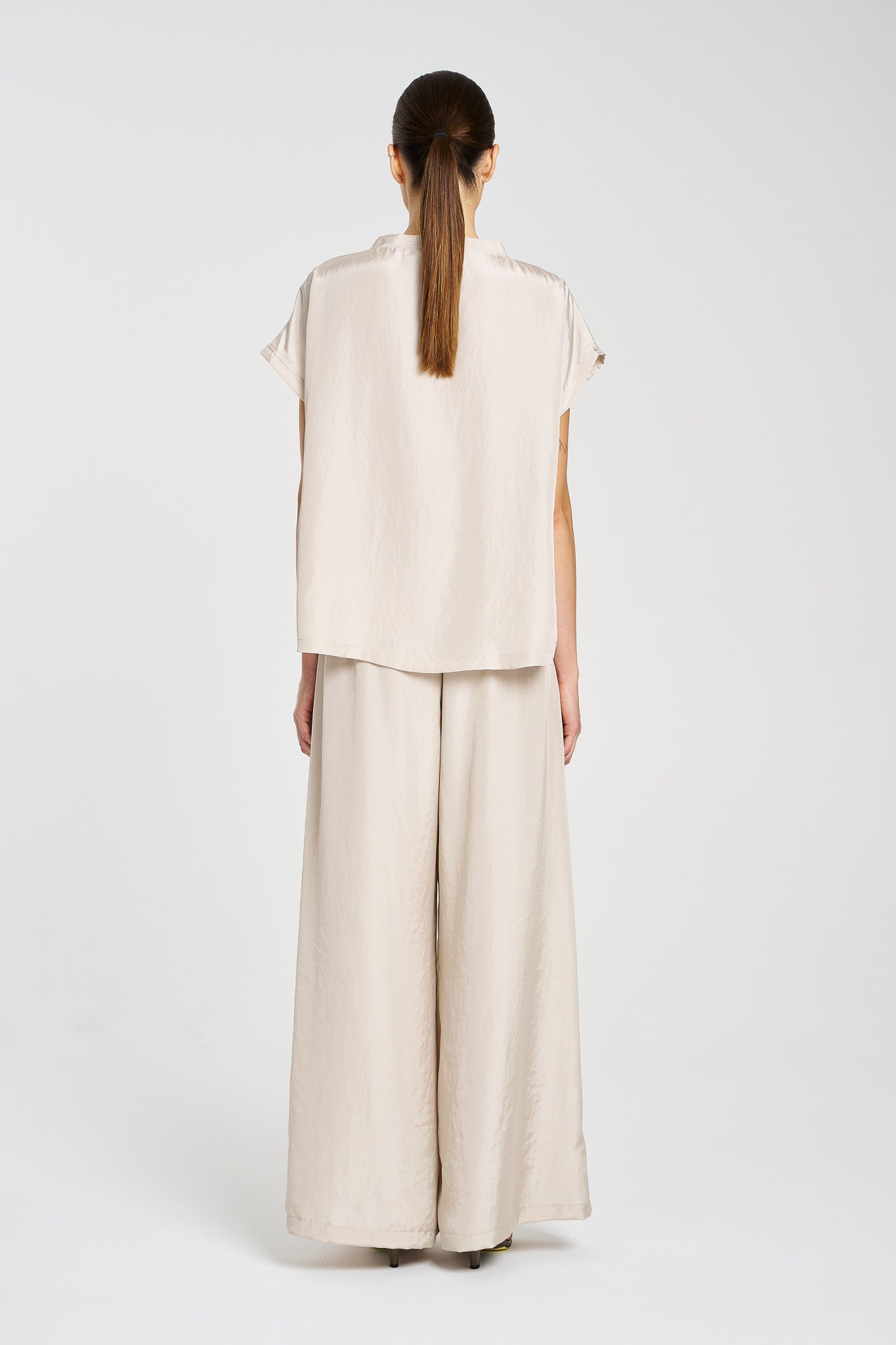 Lightweight yet structured, the Cruise Shell in Technical Tumbled Taffeta brings a crisp, modern edge to your everyday wardrobe. Made from a Japanese-woven taffeta with a subtle texture and soft sheen, this piece offers architectural shape without sacrificing comfort. Featuring a cap sleeve, relaxed fit, and softly curved hemline, it’s an ideal staple for refined, capsule dressing.
