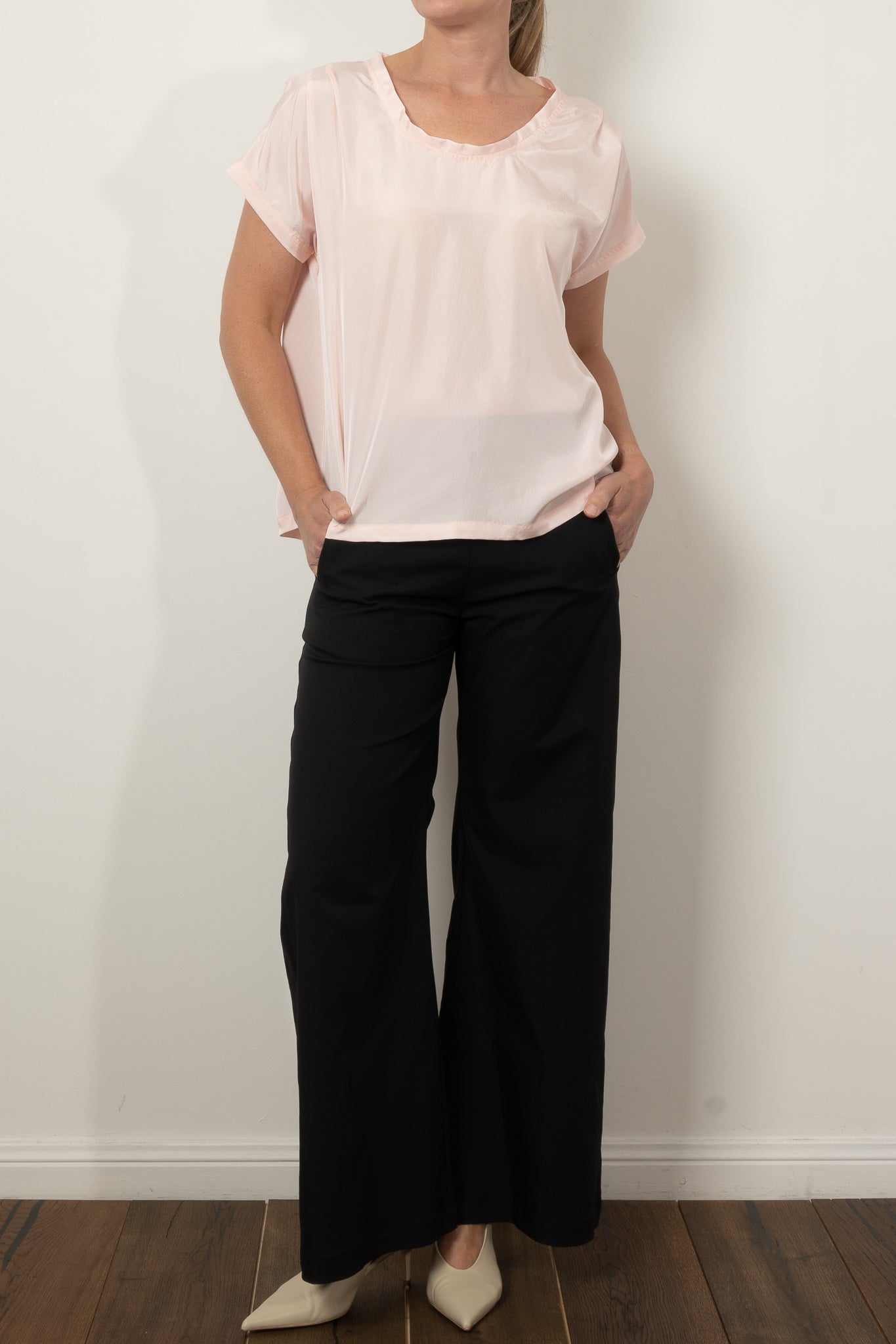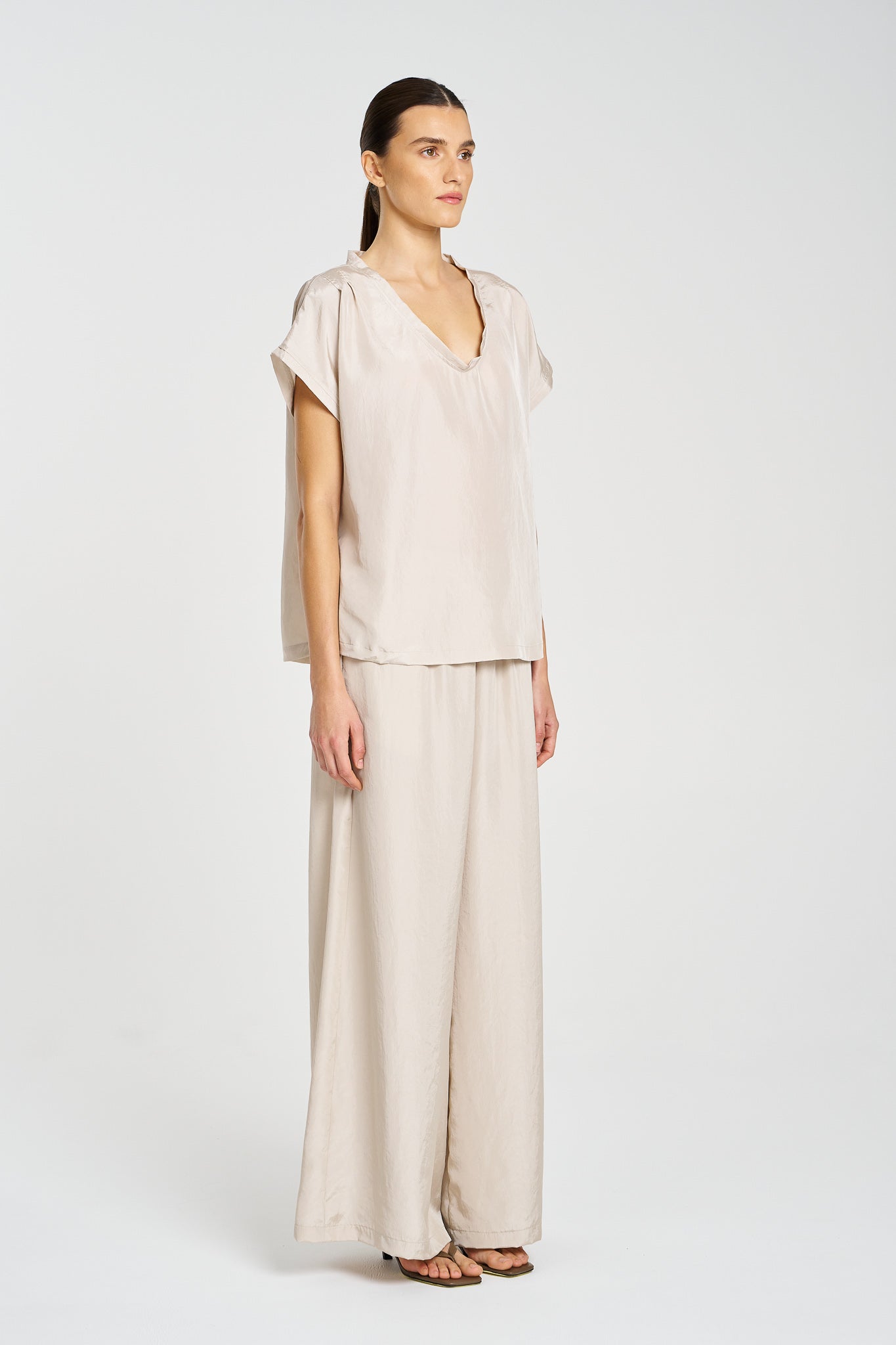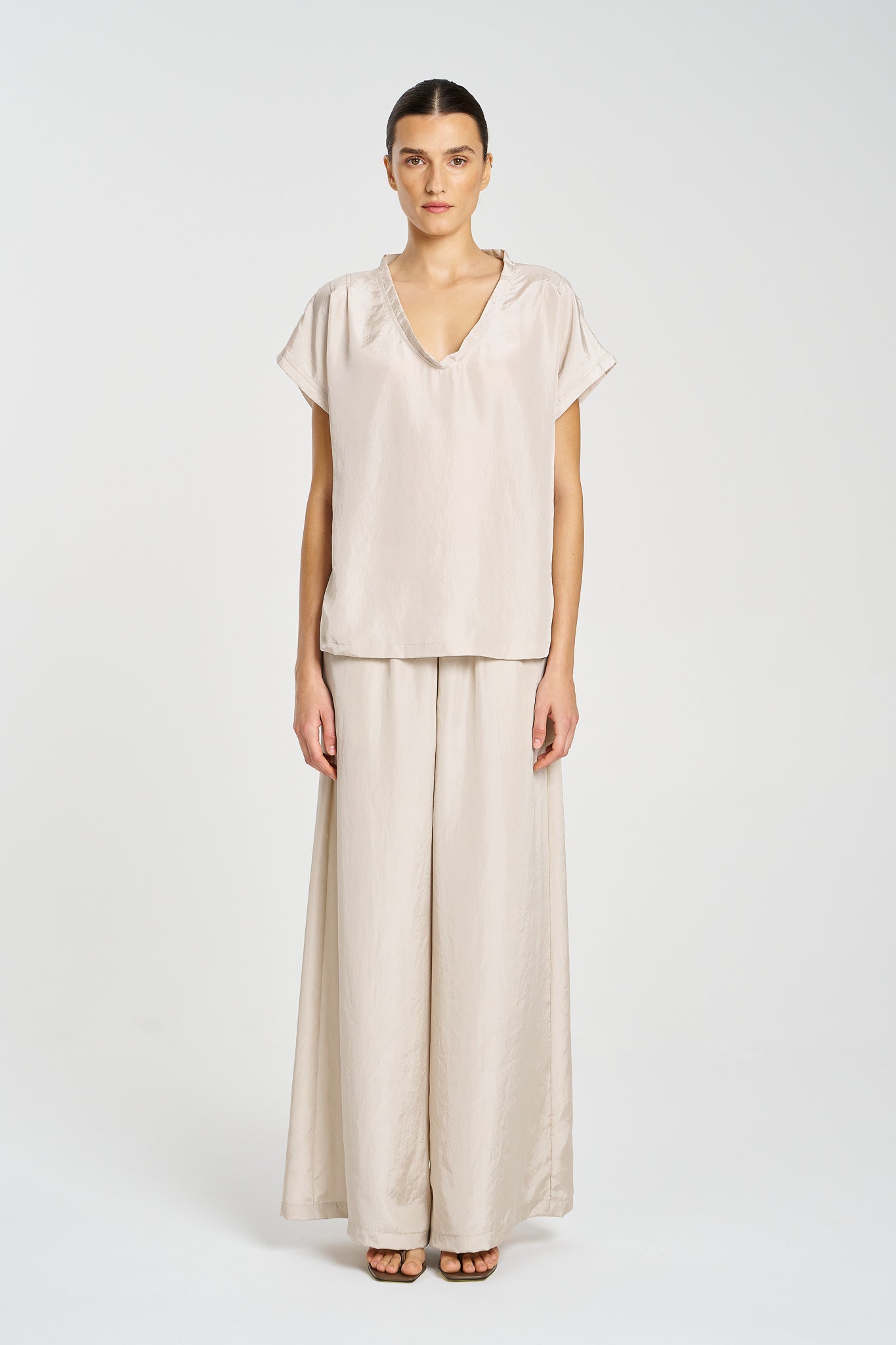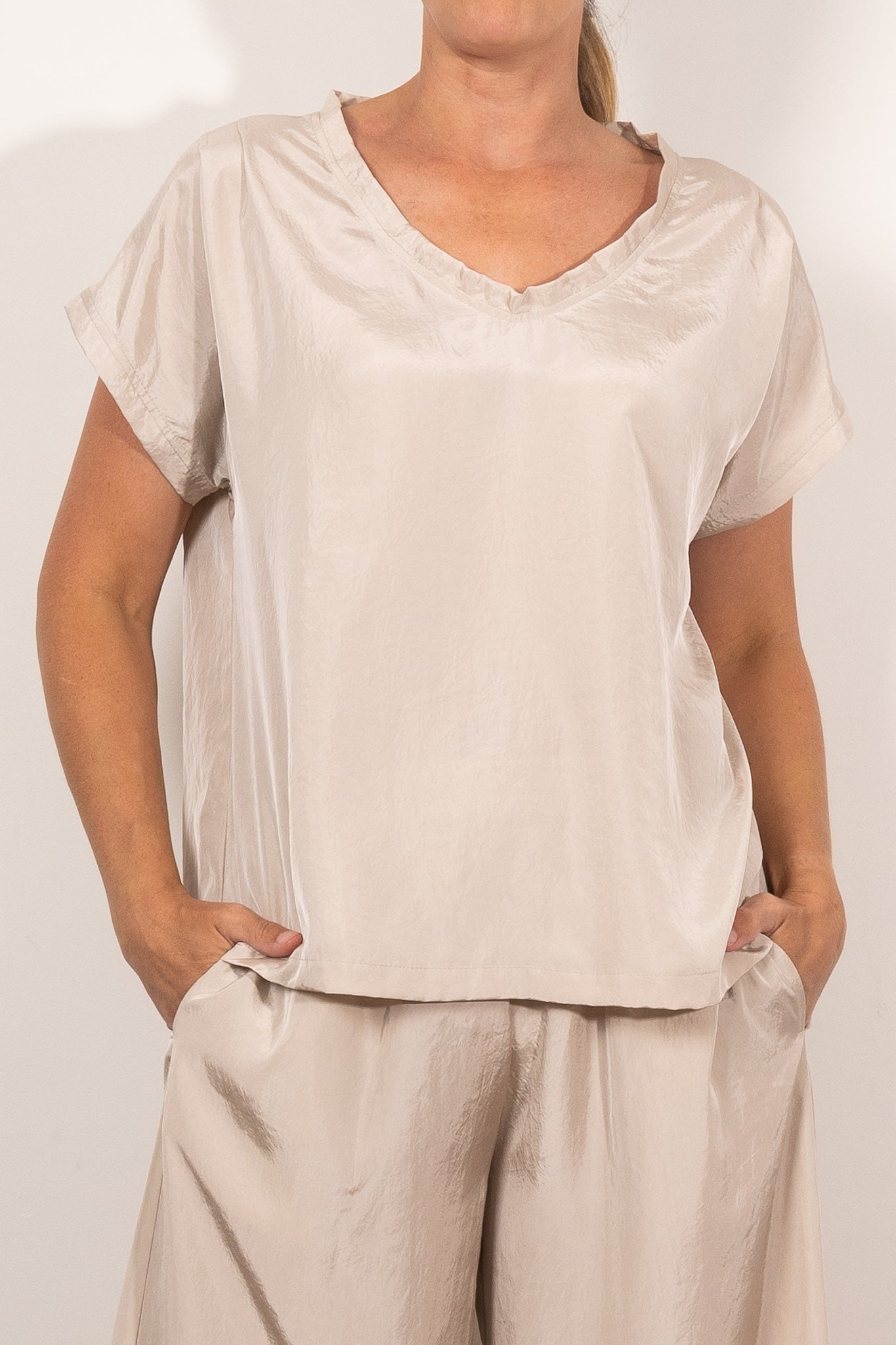Lightweight yet structured, the Cruise Shell in Technical Tumbled Taffeta brings a crisp, modern edge to your everyday wardrobe. Made from a Japanese-woven taffeta with a subtle texture and soft sheen, this piece offers architectural shape without sacrificing comfort. Featuring a cap sleeve, relaxed fit, and softly curved hemline, it’s an ideal staple for refined, capsule dressing.