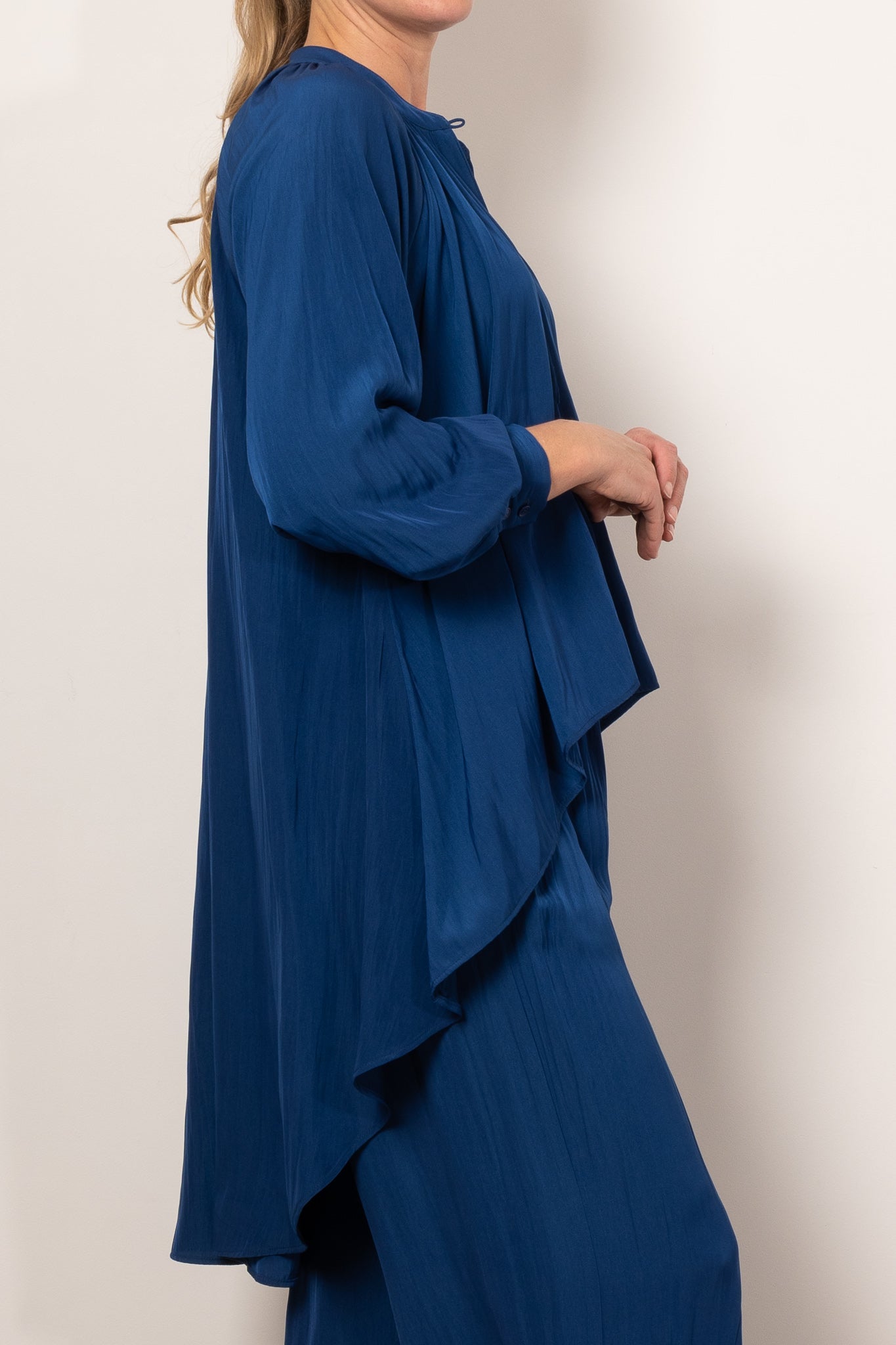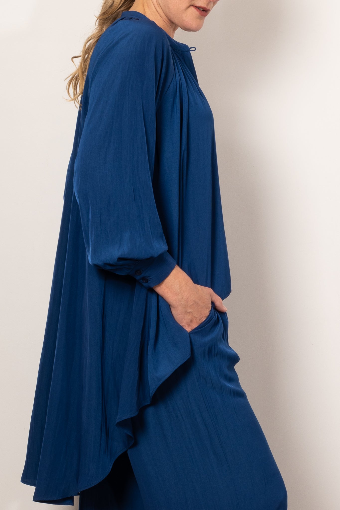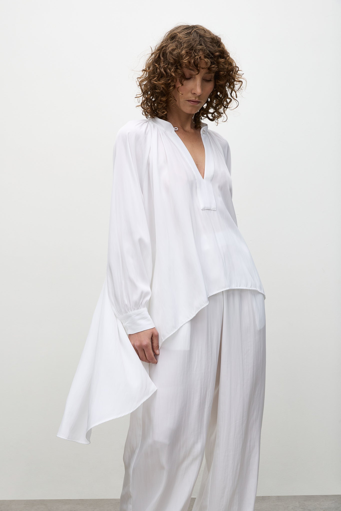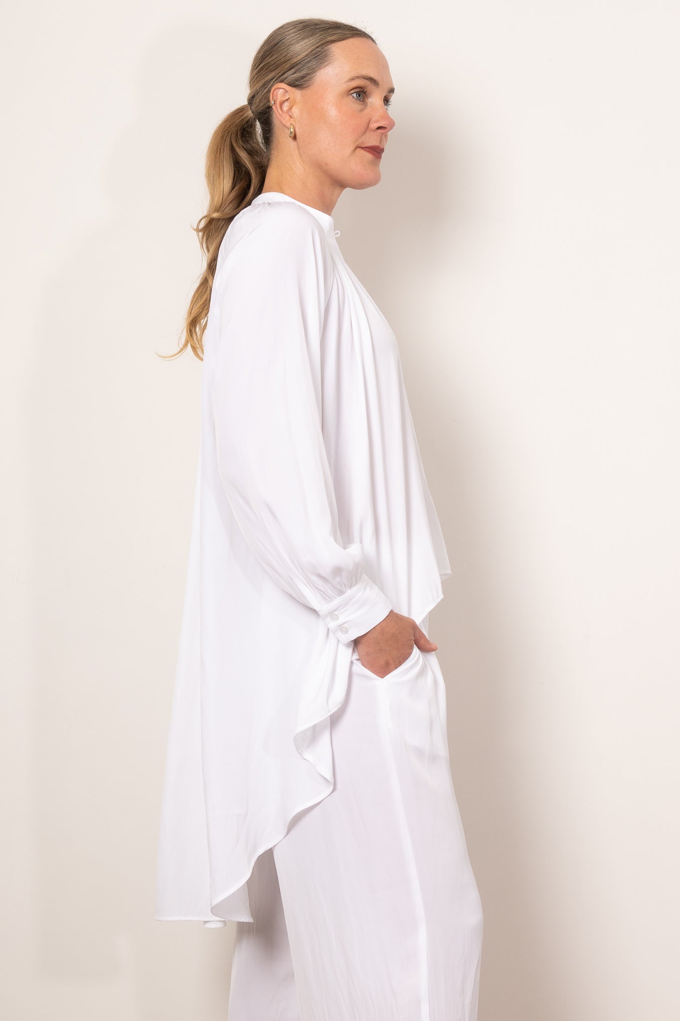 Elevate your wardrobe with the Mela Purdie Arc Blouse, crafted from luxurious Mache fabric for a smooth and fluid drape. Featuring intricate front gathering, a hi-low hem and a relaxed fit, this blouse exudes elegance and sophistication. Designed and made in Australia.