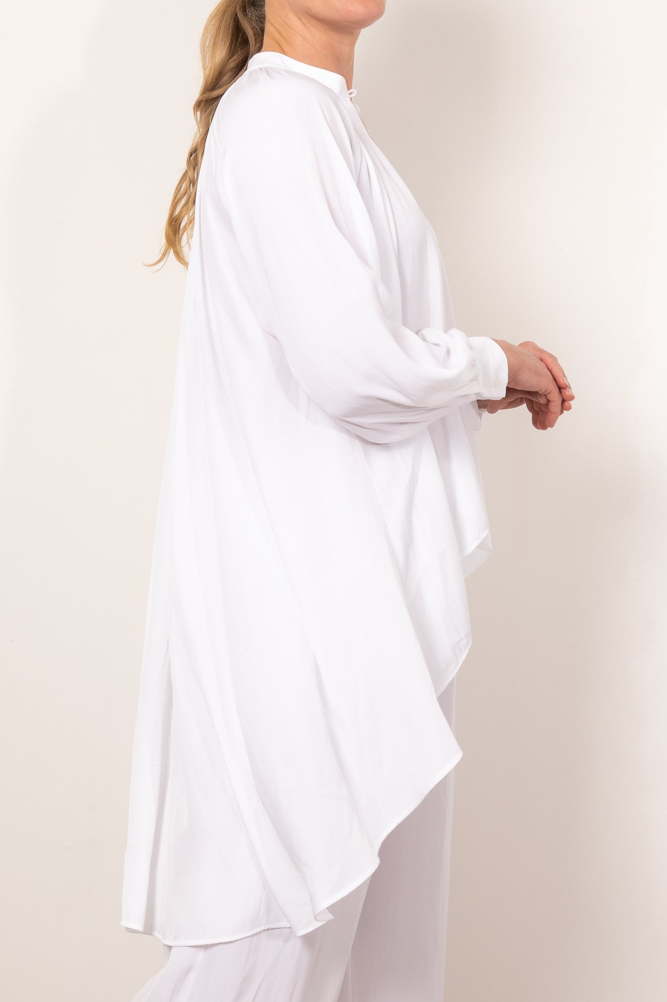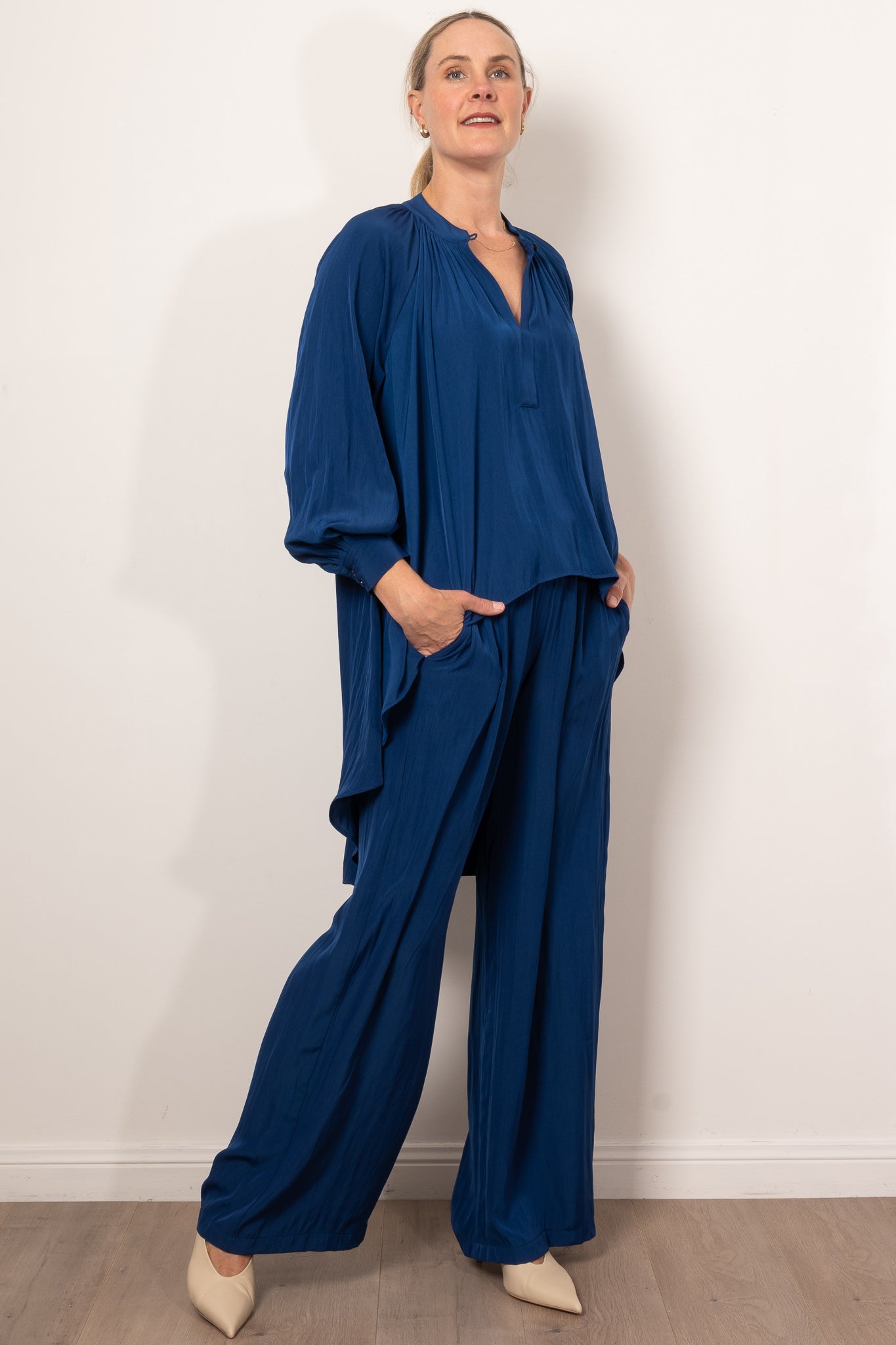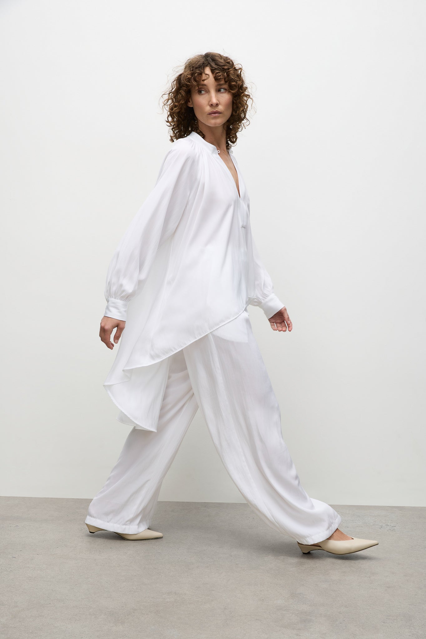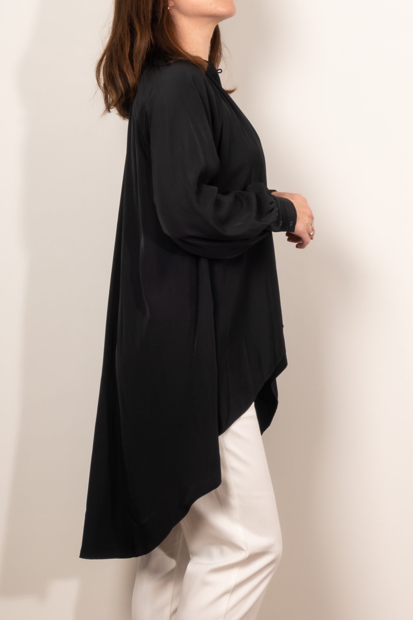 Elevate your wardrobe with the Mela Purdie Arc Blouse, crafted from luxurious Mache fabric for a smooth and fluid drape. Featuring intricate front gathering, a hi-low hem and a relaxed fit, this blouse exudes elegance and sophistication. Designed and made in Australia.