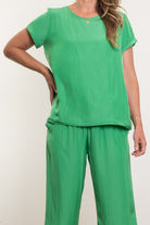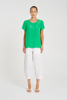 A wardrobe essential, the Transit T has an effortless, slightly loose fit. Crafted from Mela's fluid Mache, with a scoop neckline and flattering short sleeve, it is the perfect layering piece.