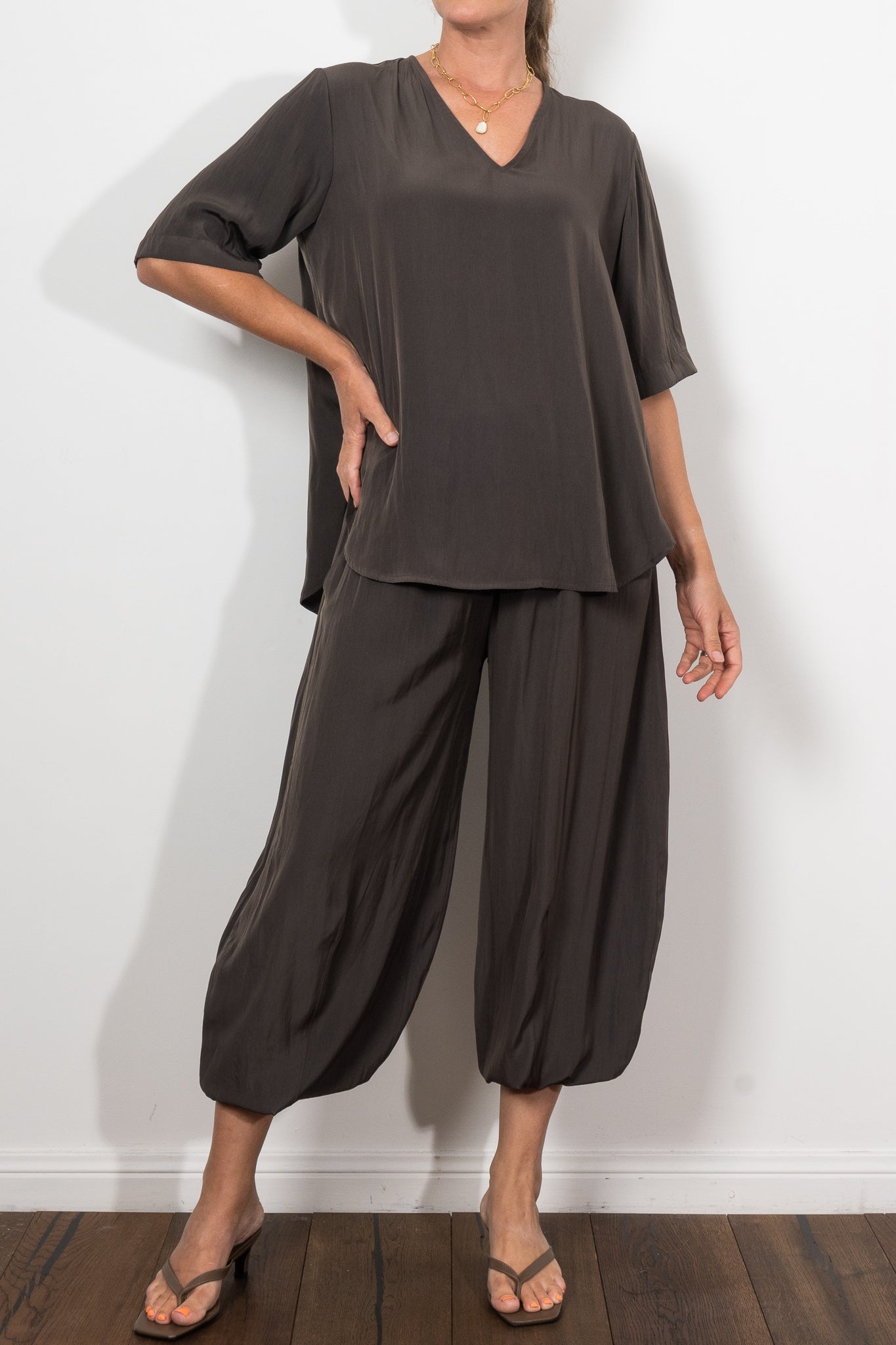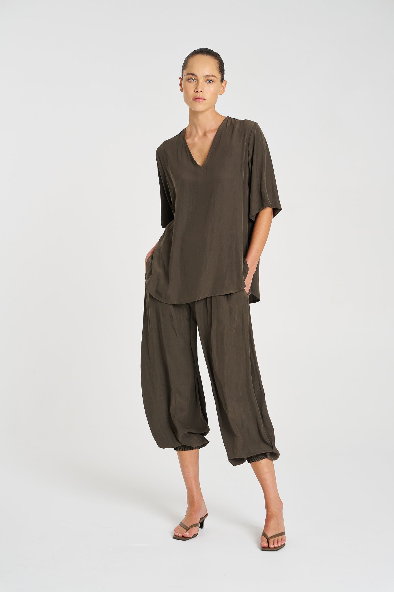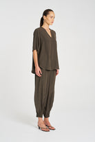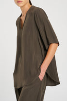 Some pieces earn their place in your wardrobe the moment you slip them on — the Swish Plaza Top is one of them. Cut from Mela Purdie’s signature Mache, this Japanese-crafted technical fabric feels like heavy silk but has the resilience of polyester. Finished with airy “air flow” technology, it floats and billows around you with every step, refusing to crease or crumple.