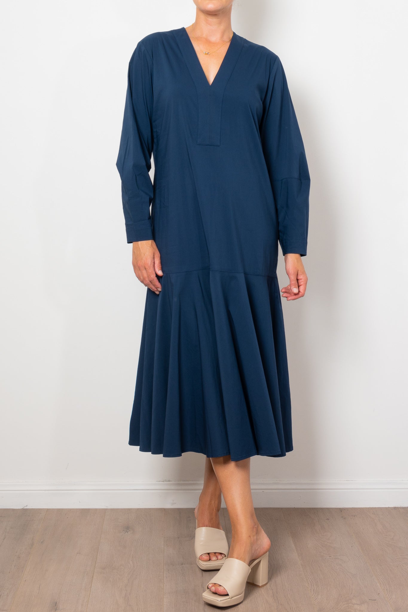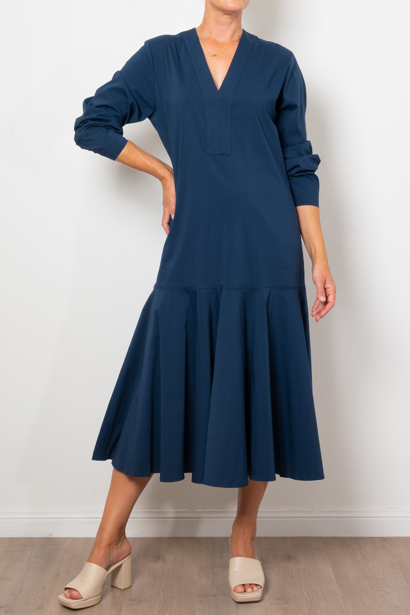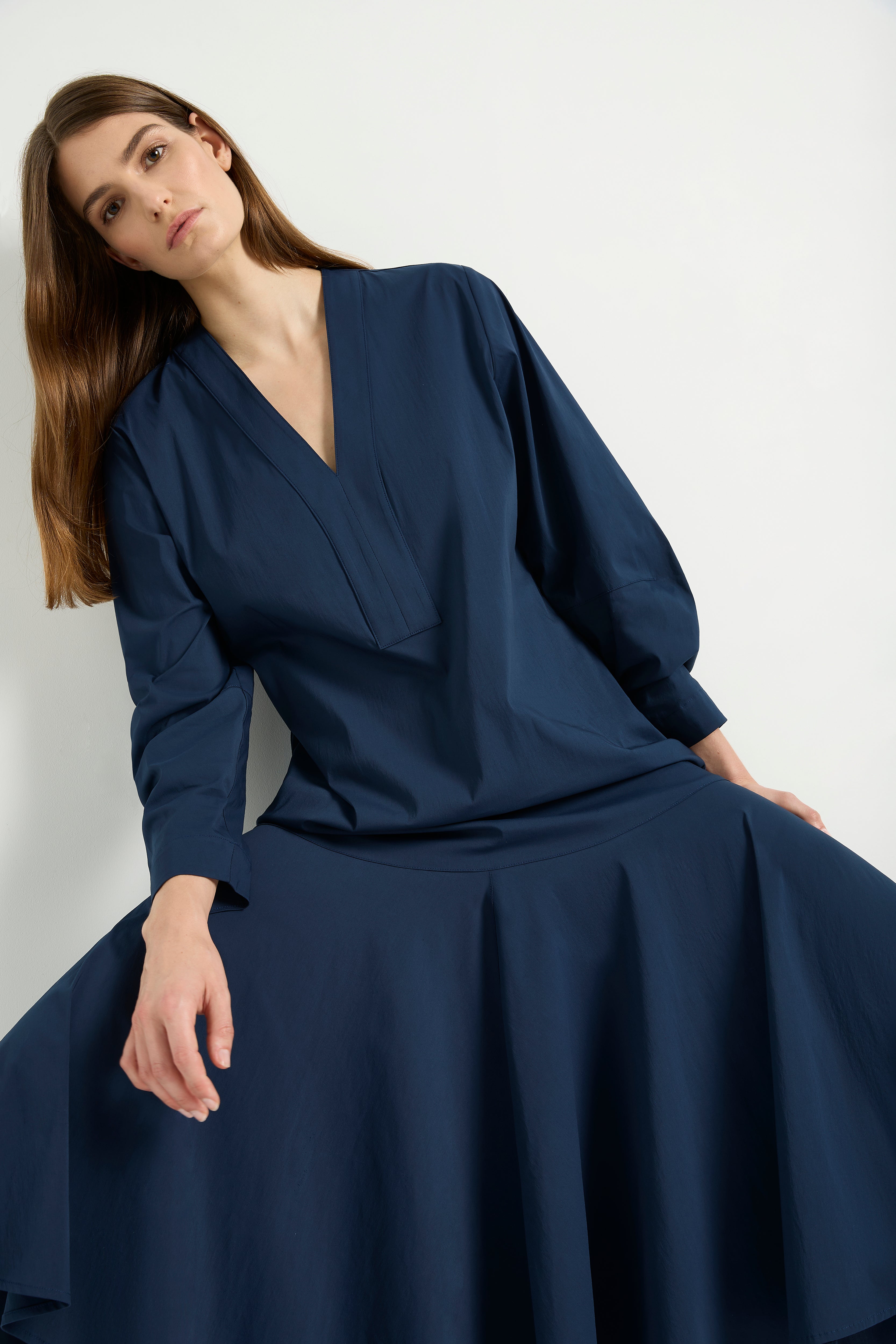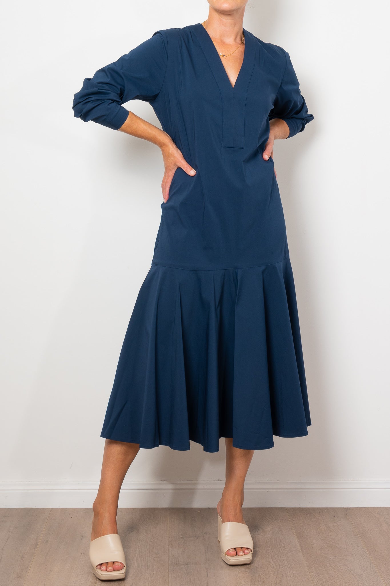 Add a touch of elegance to your wardrobe with the Mela Purdie Bell Dress in Microprene. Crafted from a crisp, high-stretch cotton blend, this dress features a chic deep V neckline and flared hem, adding a flattering silhouette to any look. The elasticated waistband and full length make it both comfortable and stylish for any occasion.