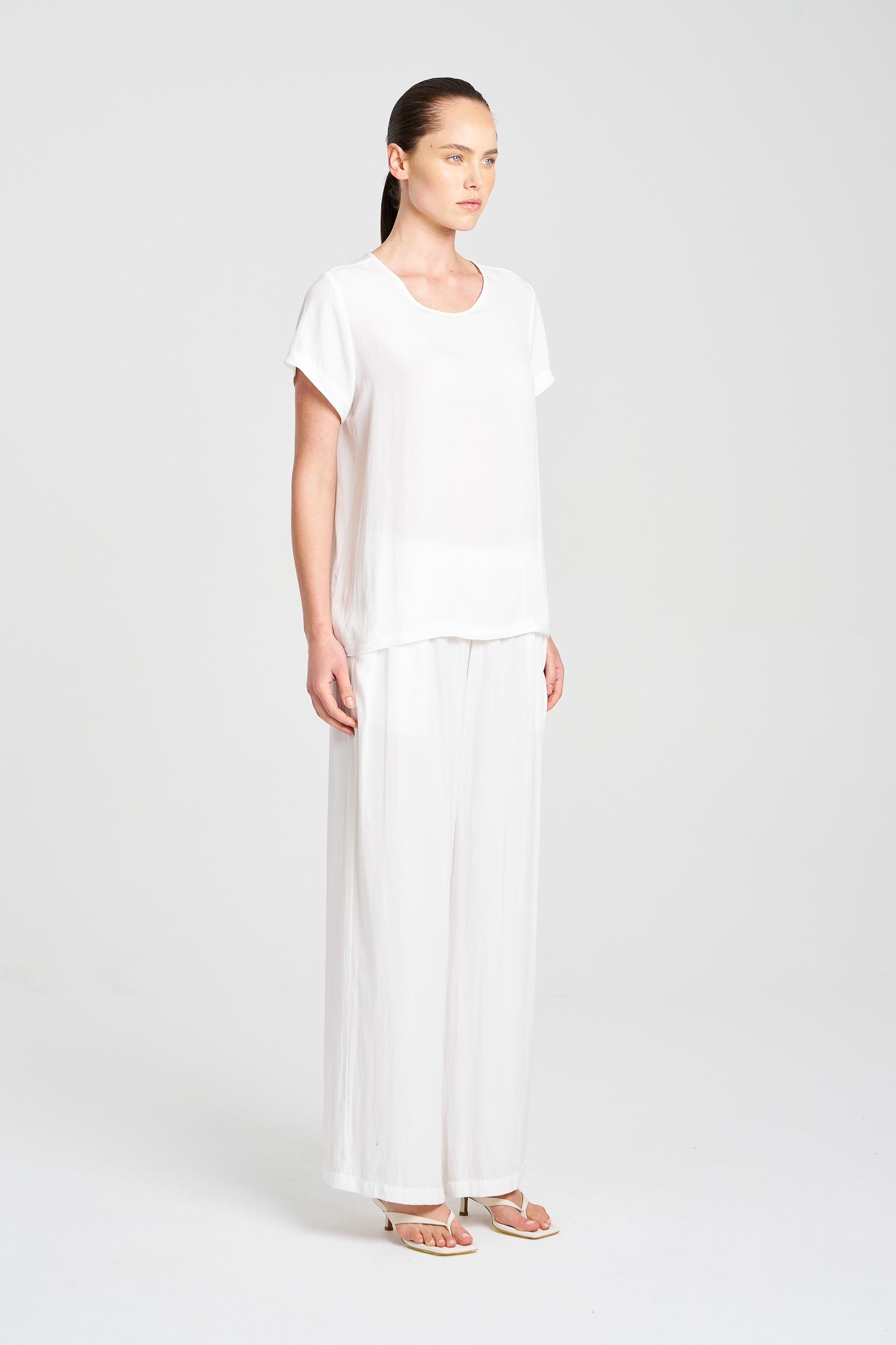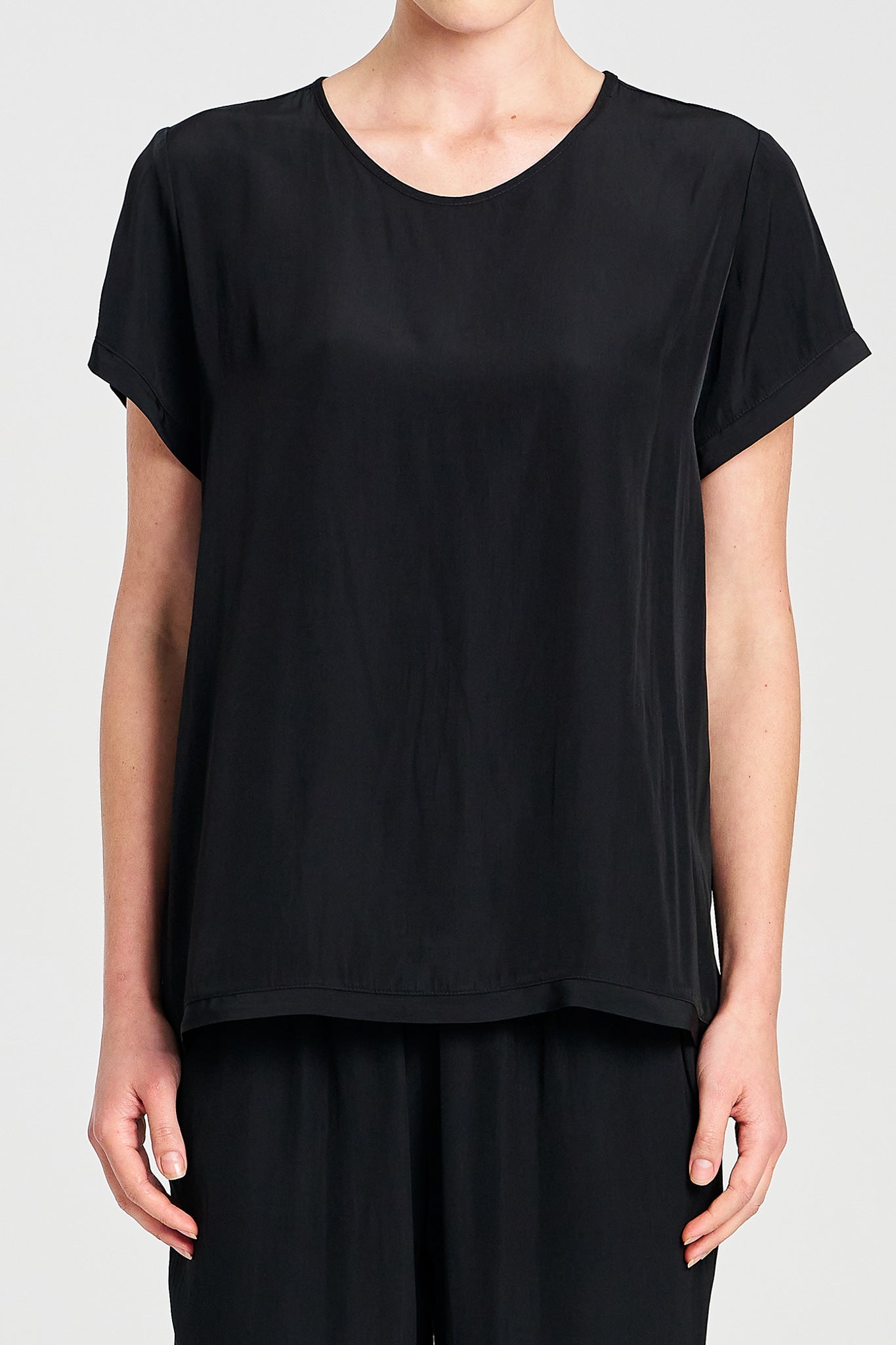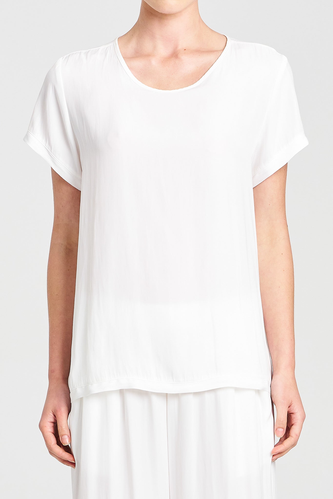 A wardrobe essential, the Transit T has an effortless, slightly loose fit. Crafted from Mela's fluid Mache, with a scoop neckline and flattering short sleeve, it is the perfect layering piece.