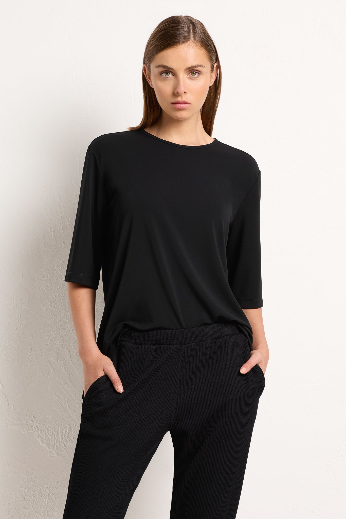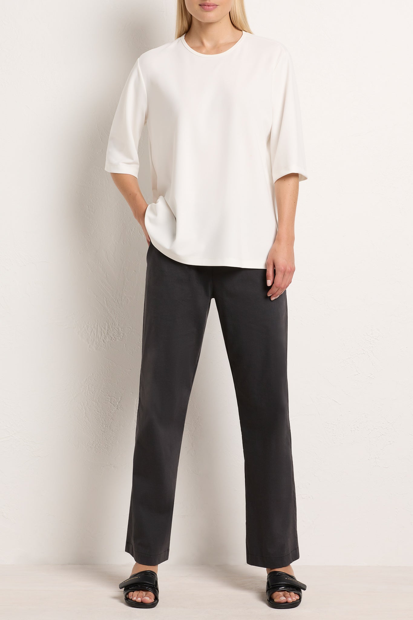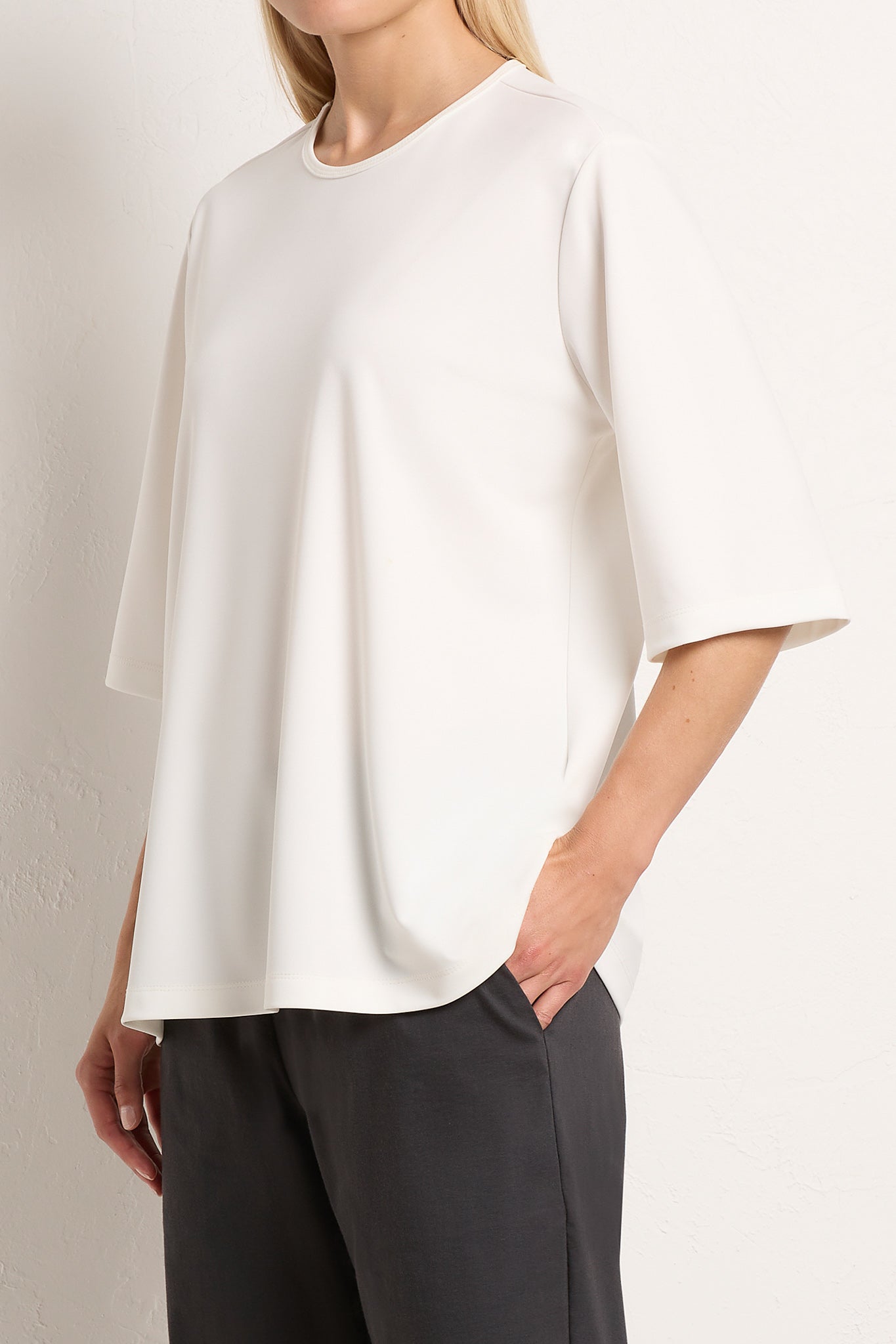 Made from Mela Purdie's lightweight, matte-carrying Powder Knit, the Stretch Plaza is an essential piece for every wardrobe. It features a relaxed, slightly oversized fit, a ribbed crew neckline, and roomy elbow-length sleeves. Crafted in Australia.