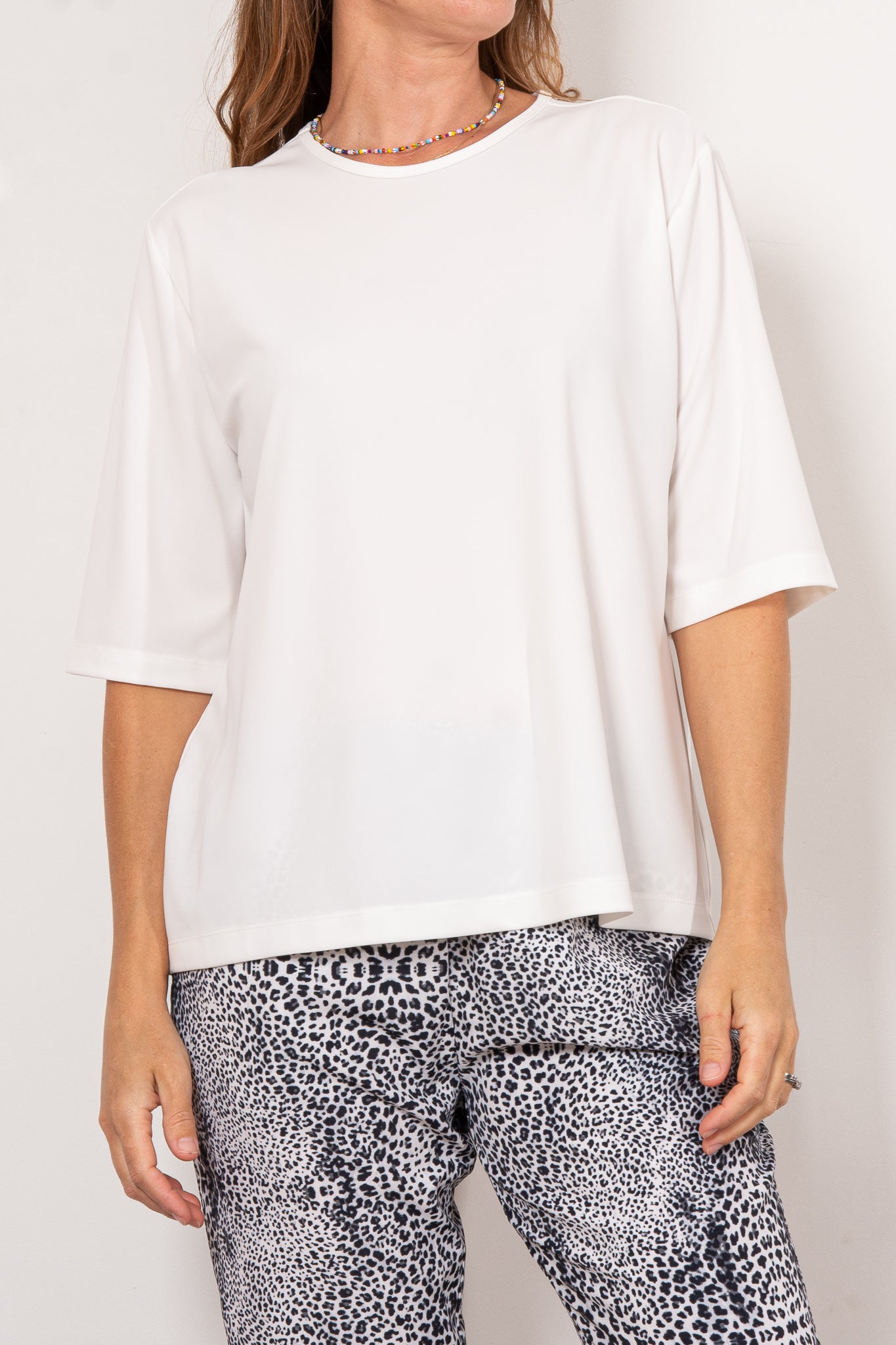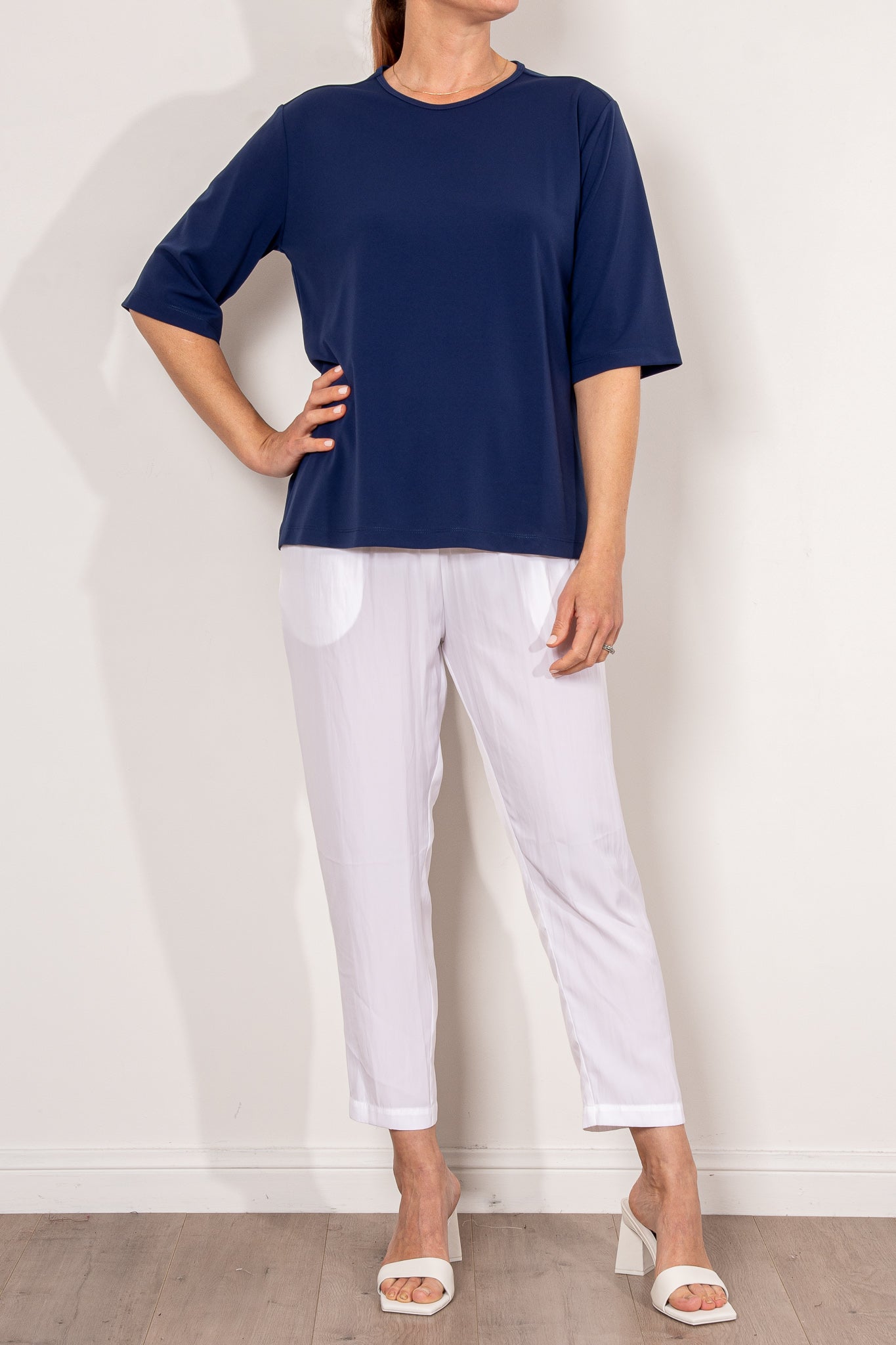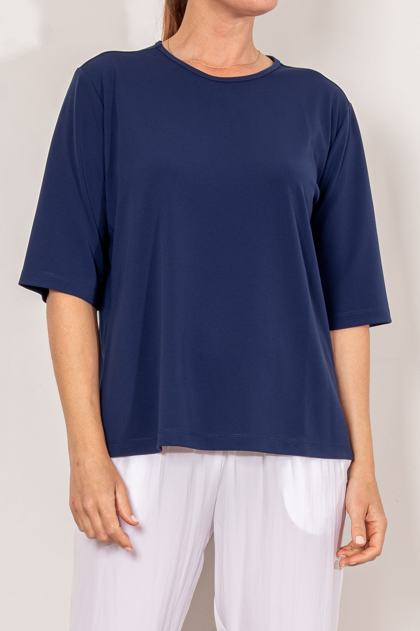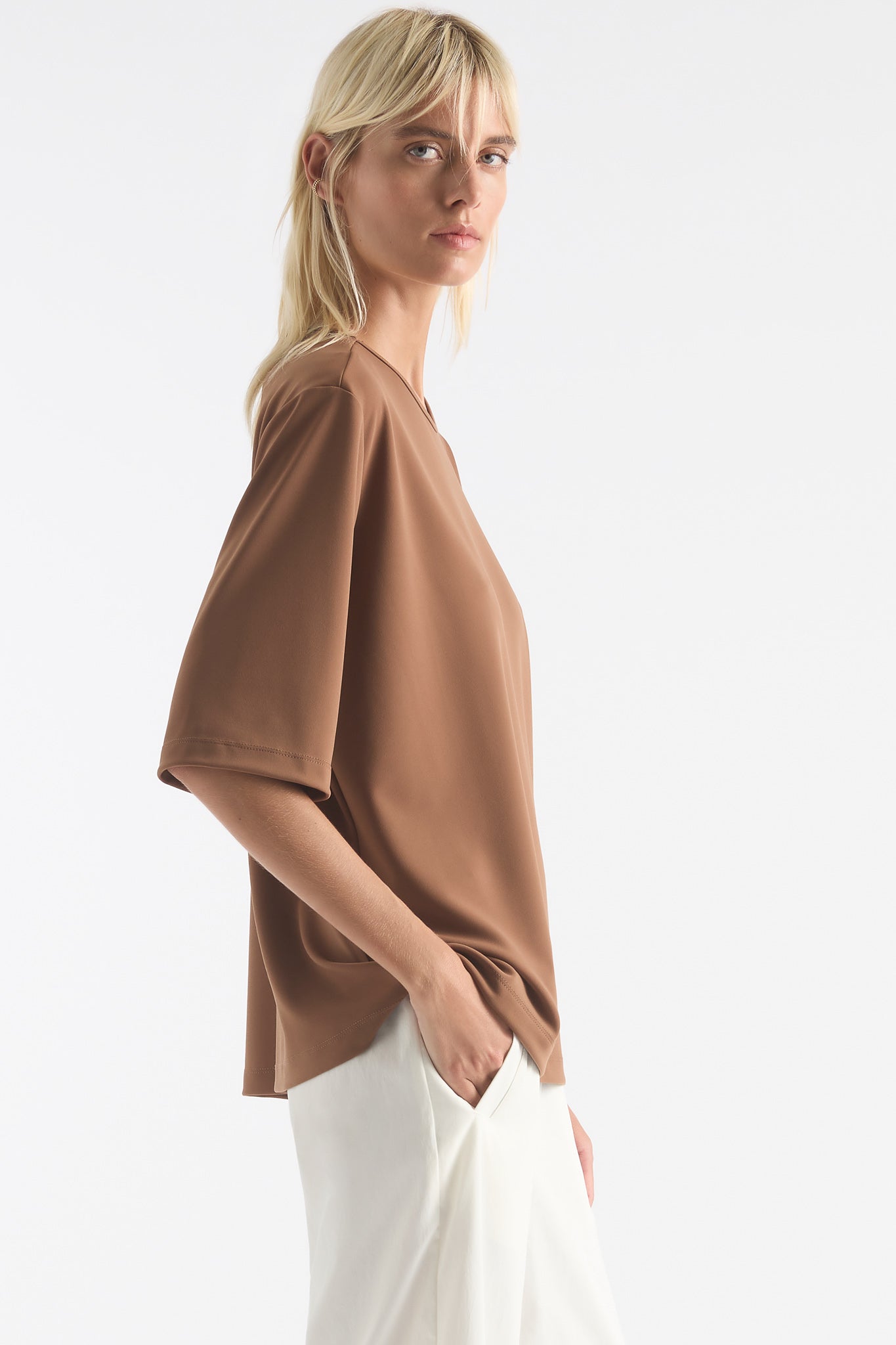 Made from Mela Purdie's lightweight, matte-carrying Powder Knit, the Stretch Plaza is an essential piece for every wardrobe. It features a relaxed, slightly oversized fit, a ribbed crew neckline, and roomy elbow-length sleeves. Crafted in Australia.