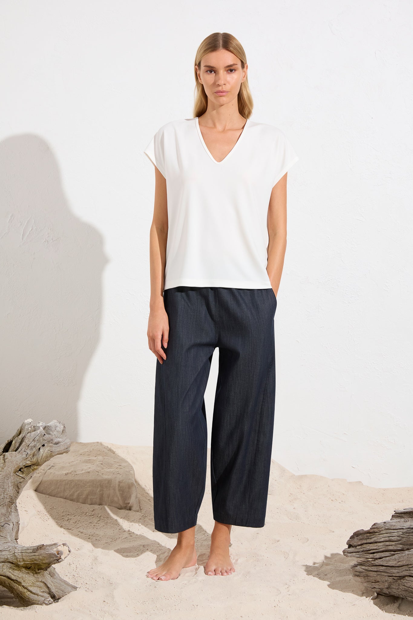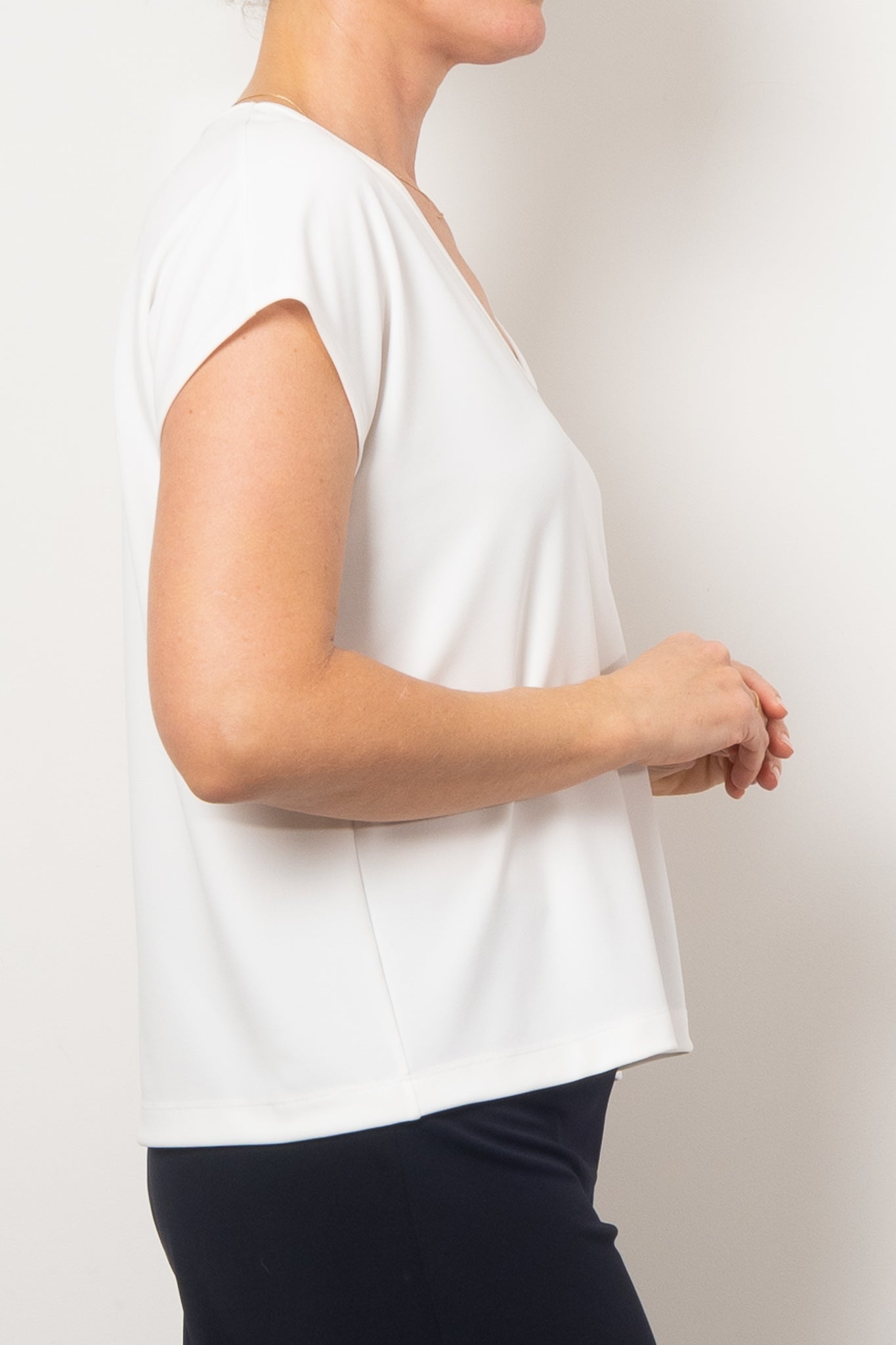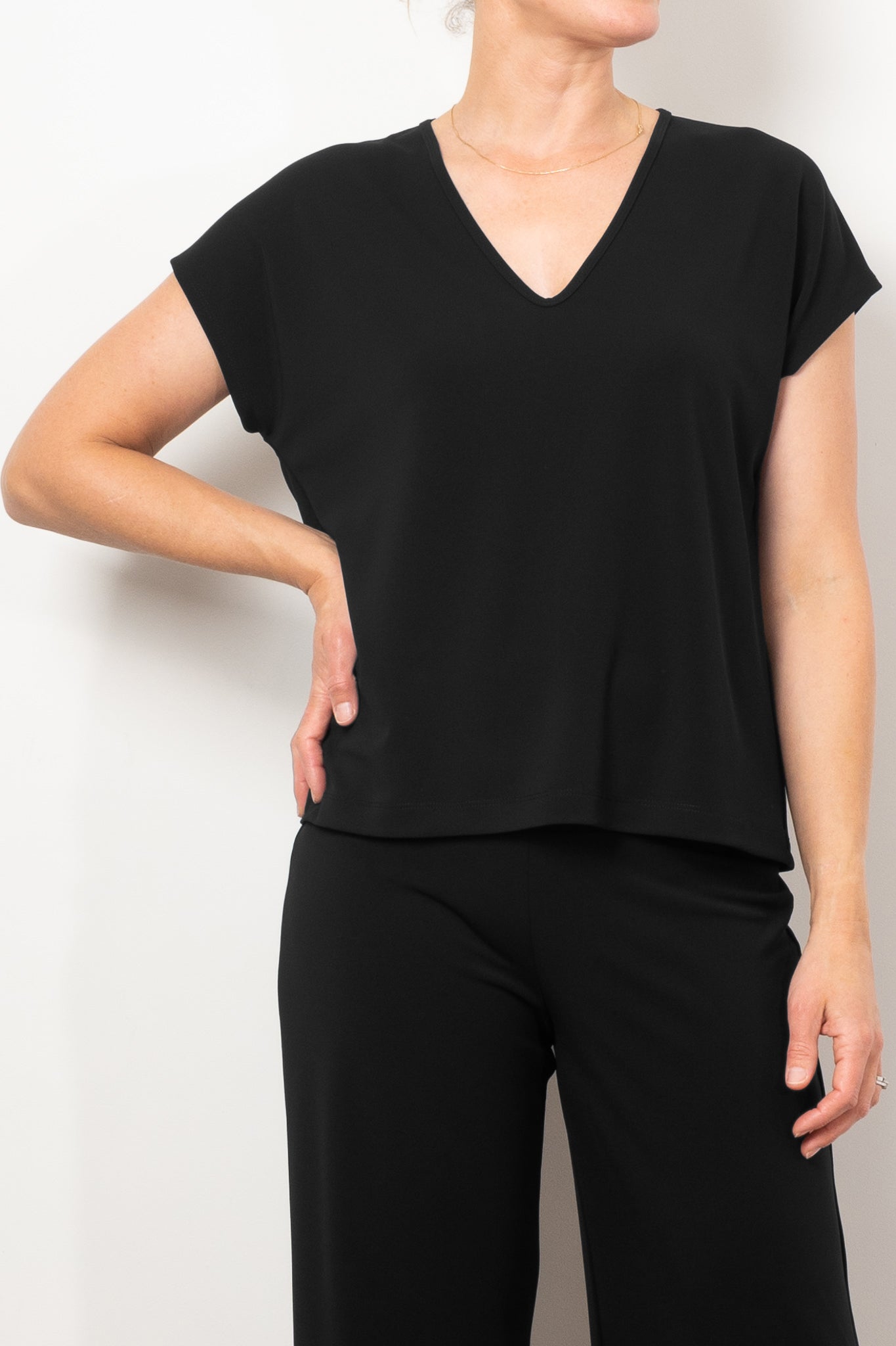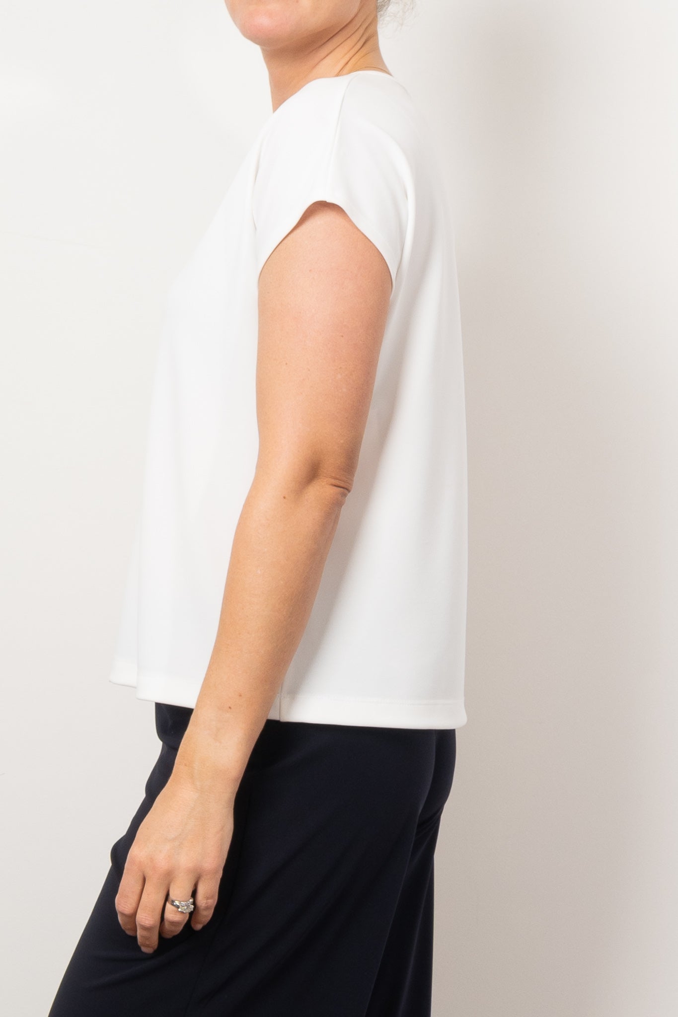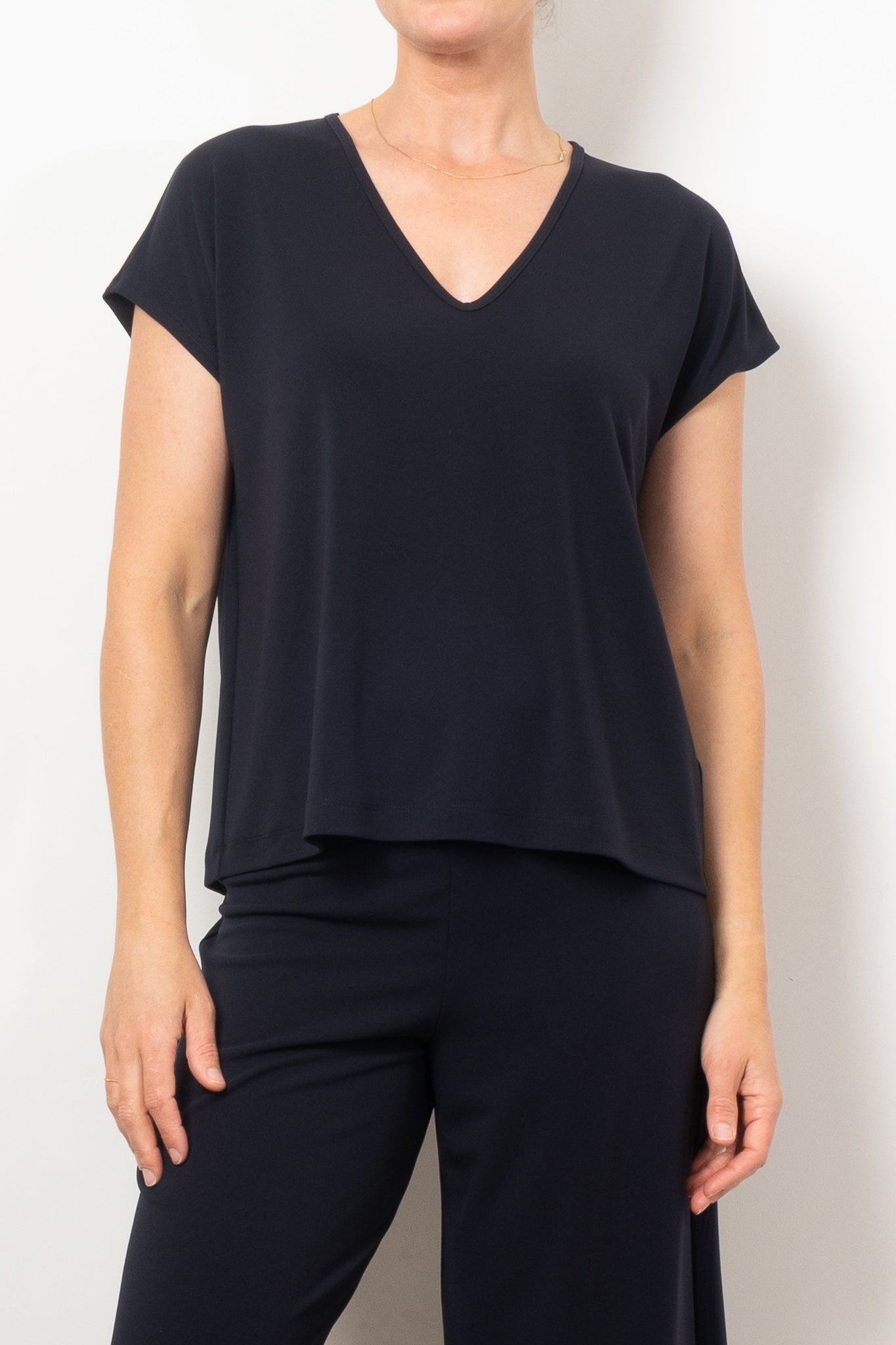Introducing the Mela Purdie V Shell Powder Knit - a slim fitted silhouette with a soft V neckline and capped sleeves, made with Mela Purdie's signature Powder Knit, a compressed Matte Finished fabrication. Designed and made in Australia, this top offers both style and comfort.