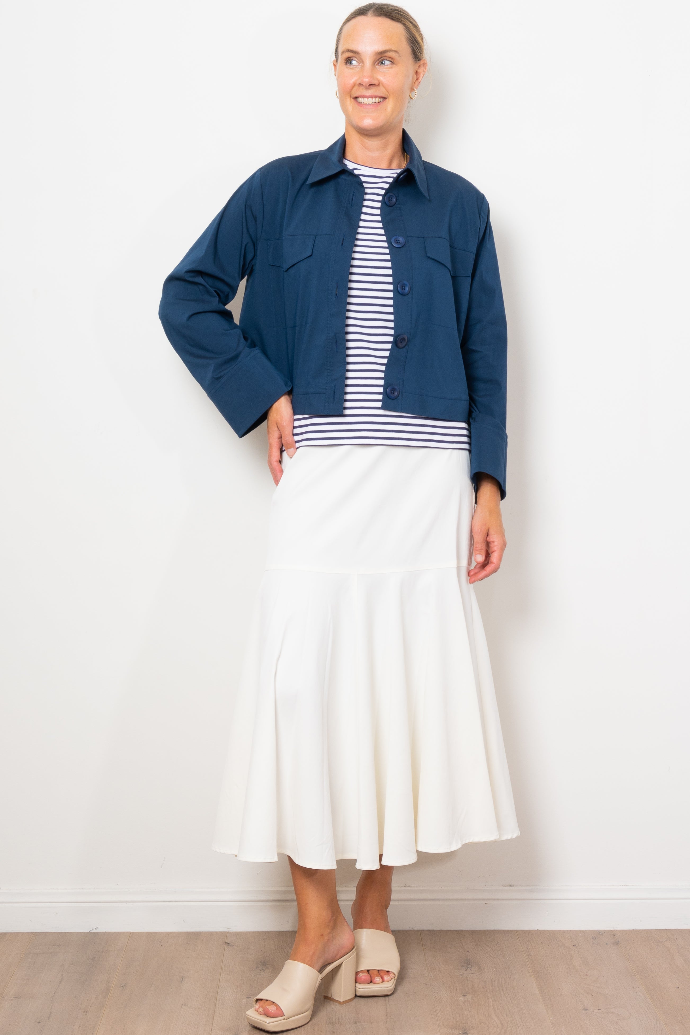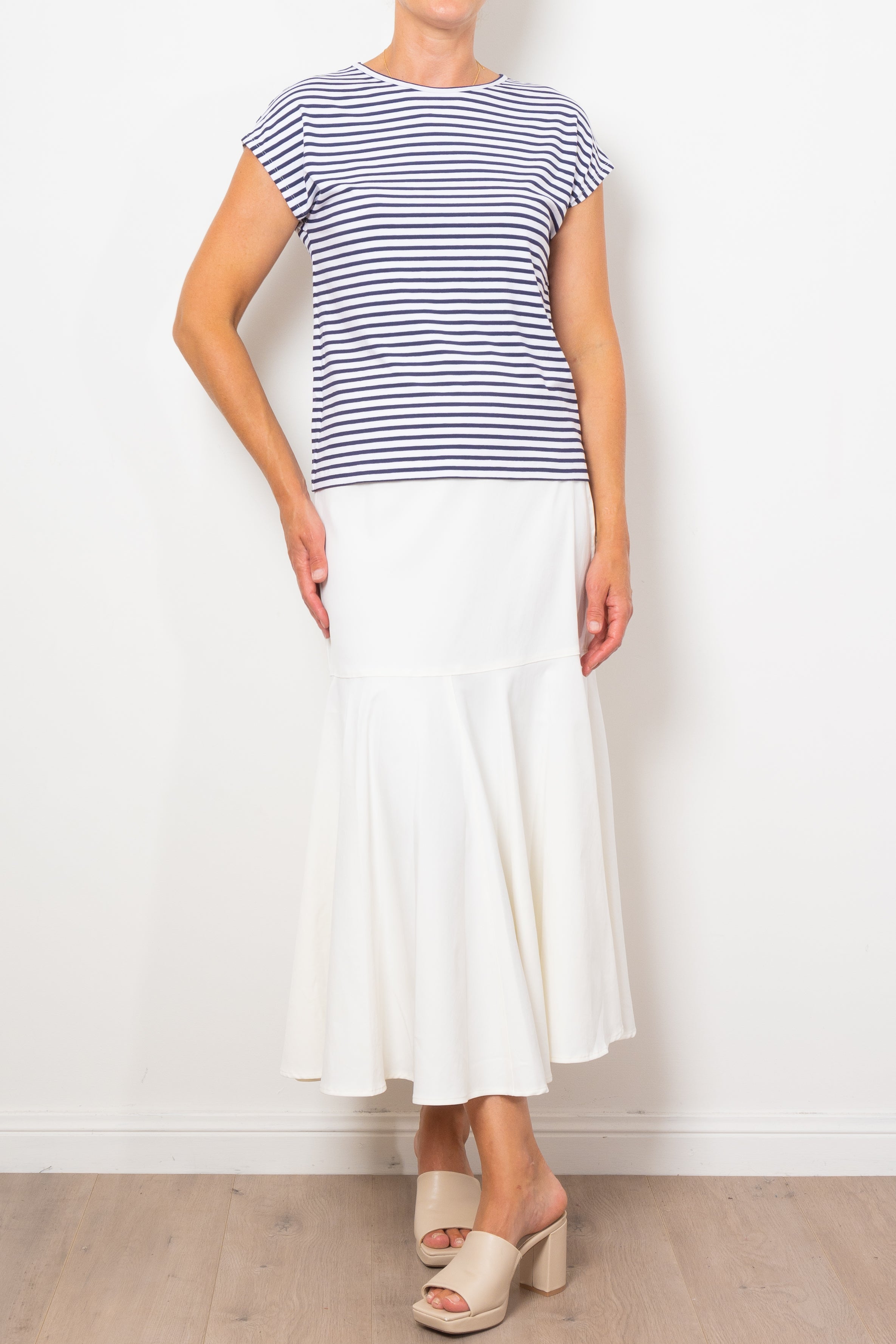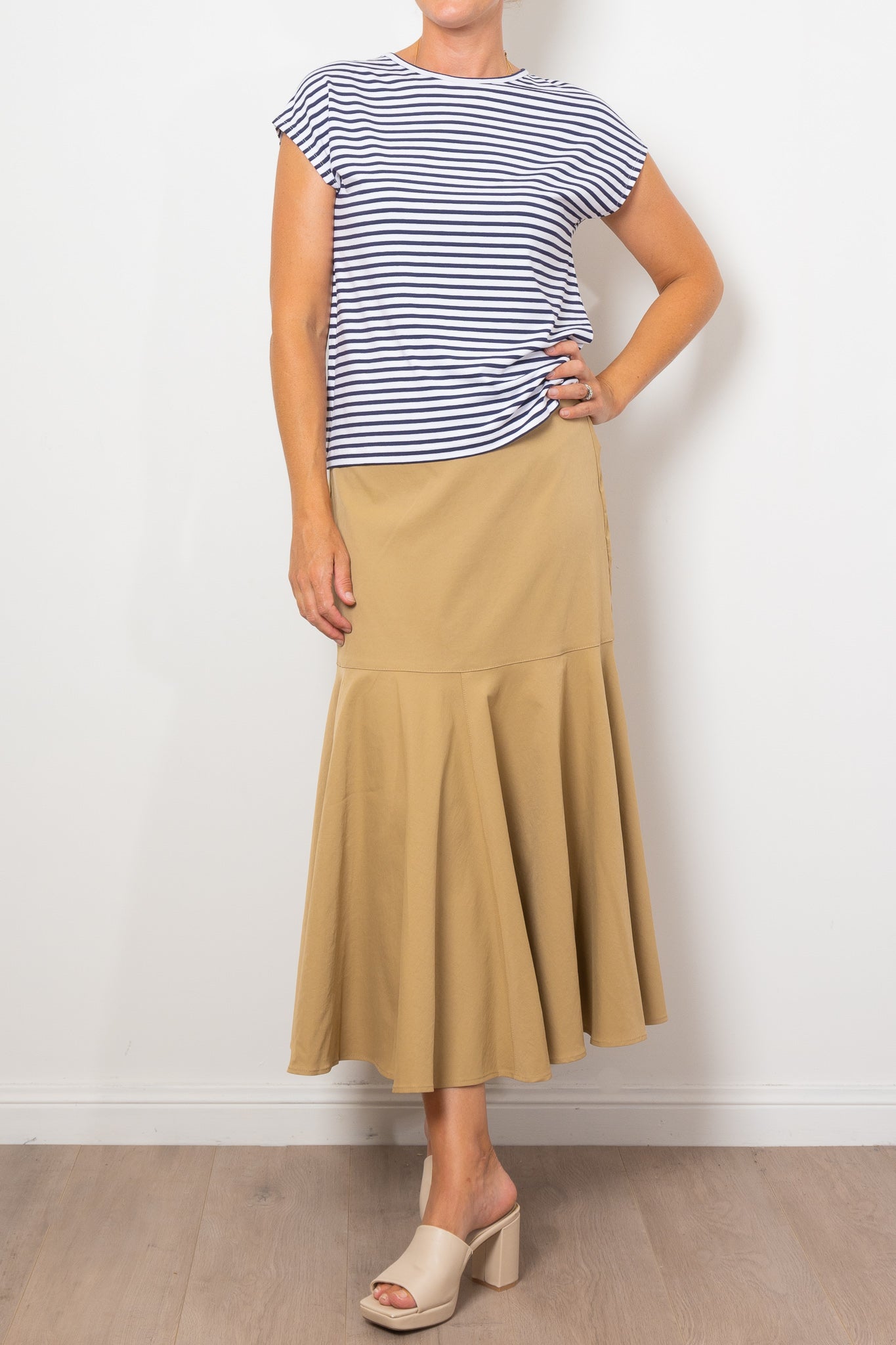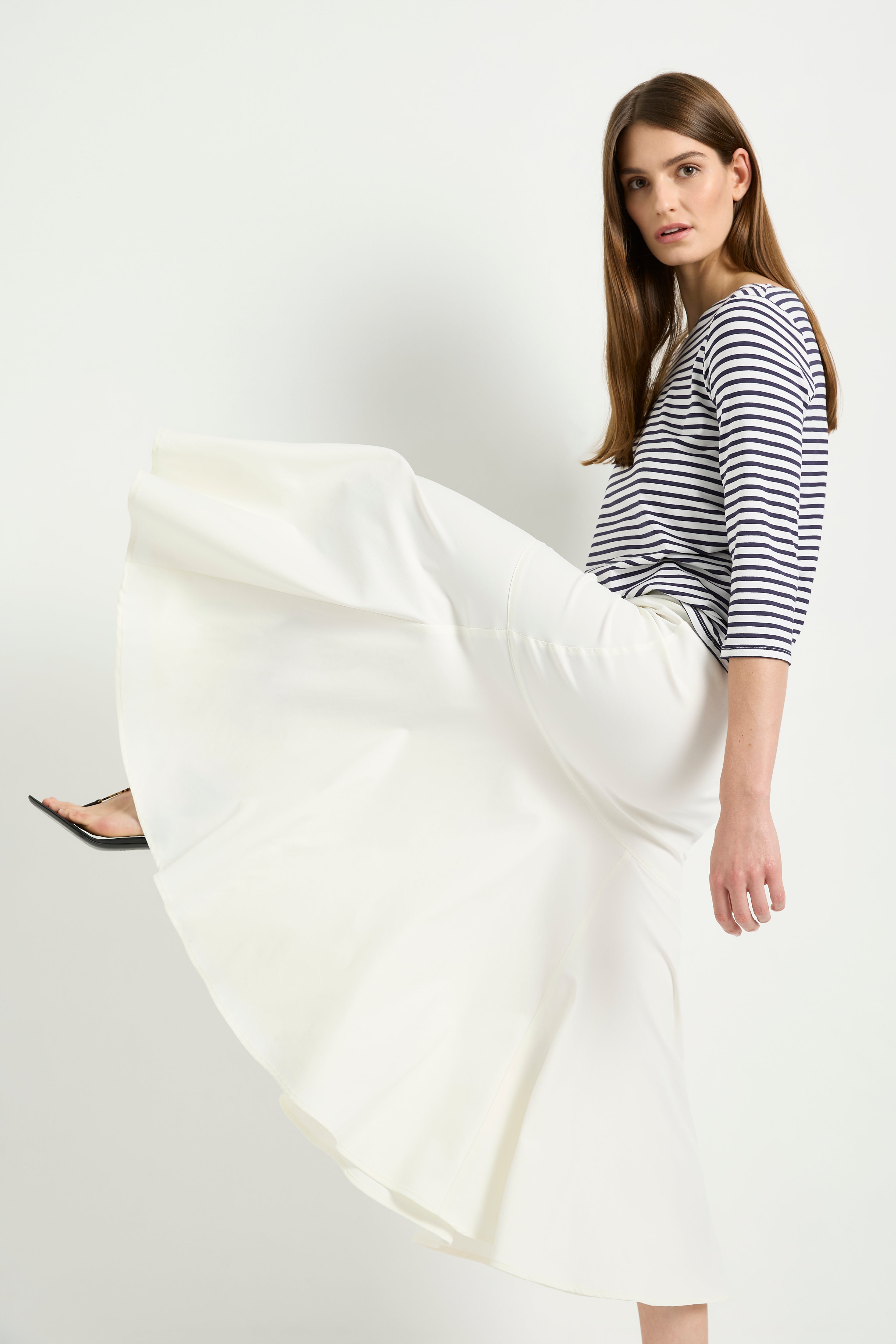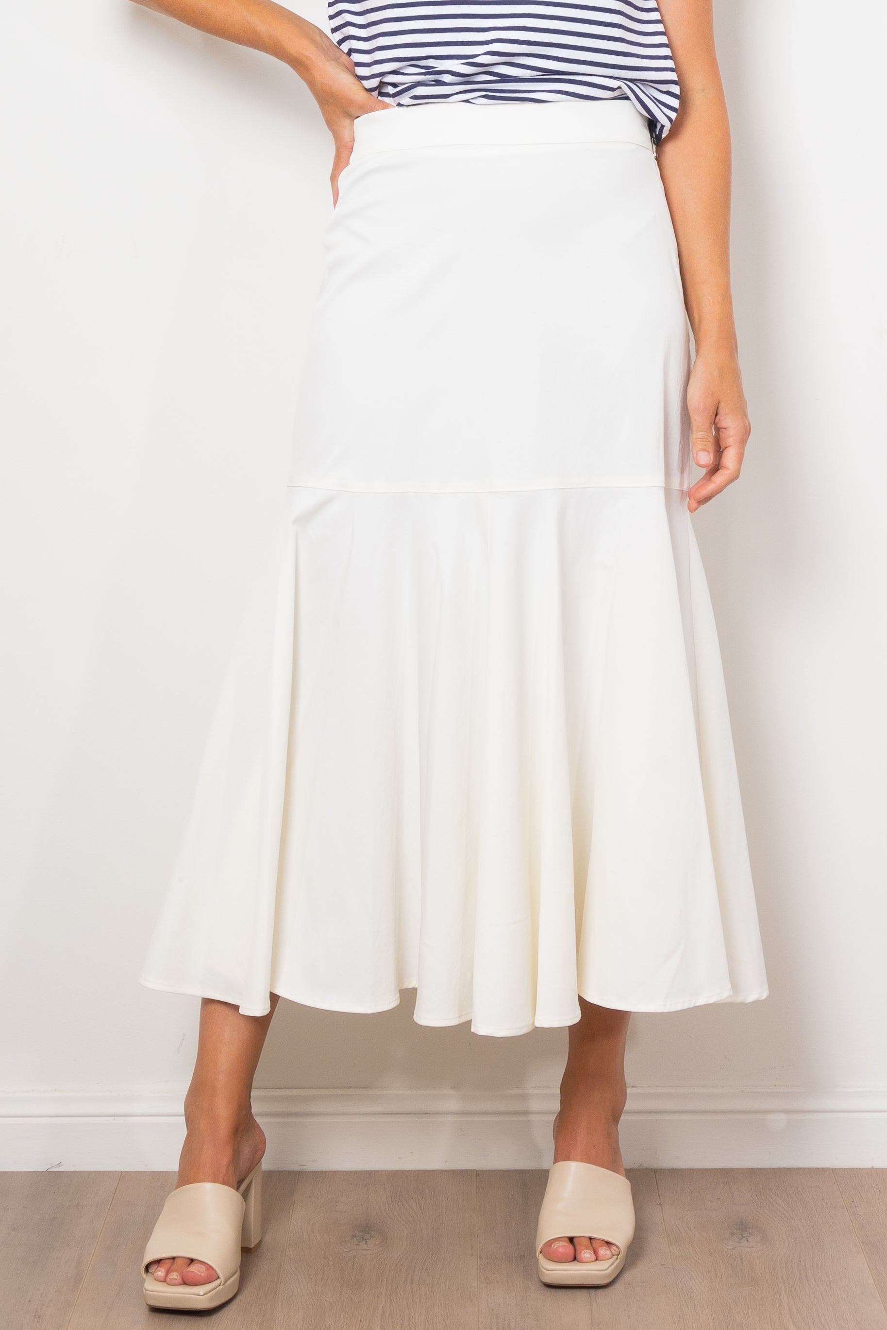 Experience luxury and comfort with Mela Purdie's refined Bell Skirt. Made from a woven, subtle stretch fabric, this midi-length skirt features panelling details and a flared hem for a flattering silhouette. Perfect for any occasion, this Japanese-crafted skirt will elevate your style. Designed and made in Australia.