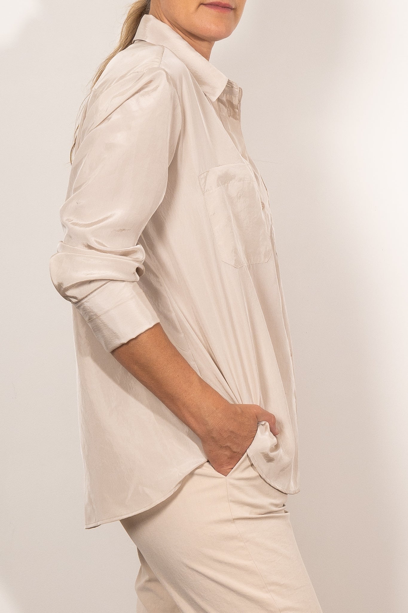 The Crisp Shirt is a modern classic, crafted from Mela Purdie’s ultra-light, travel-friendly Technical Tumbled Taffeta. See full product description below for fabric and fit info.