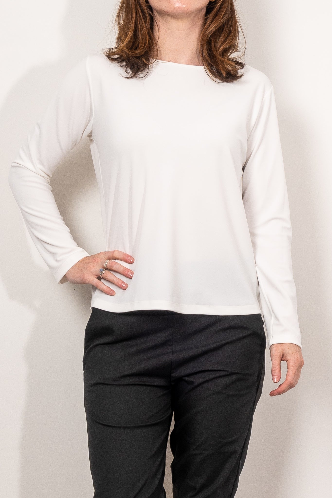 Elevate your wardrobe with the Mela Purdie Long Sleeve Powder Boater. Made with Japanese Stretch Knit, this slim fit top features a relaxed Boat Neck for all-day comfort. Perfect for all seasons, this classic silhouette is a must-have essential in any wardrobe. Designed and crafted in Australia.