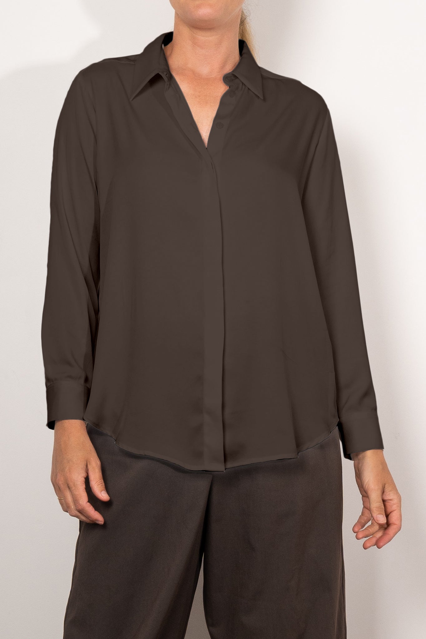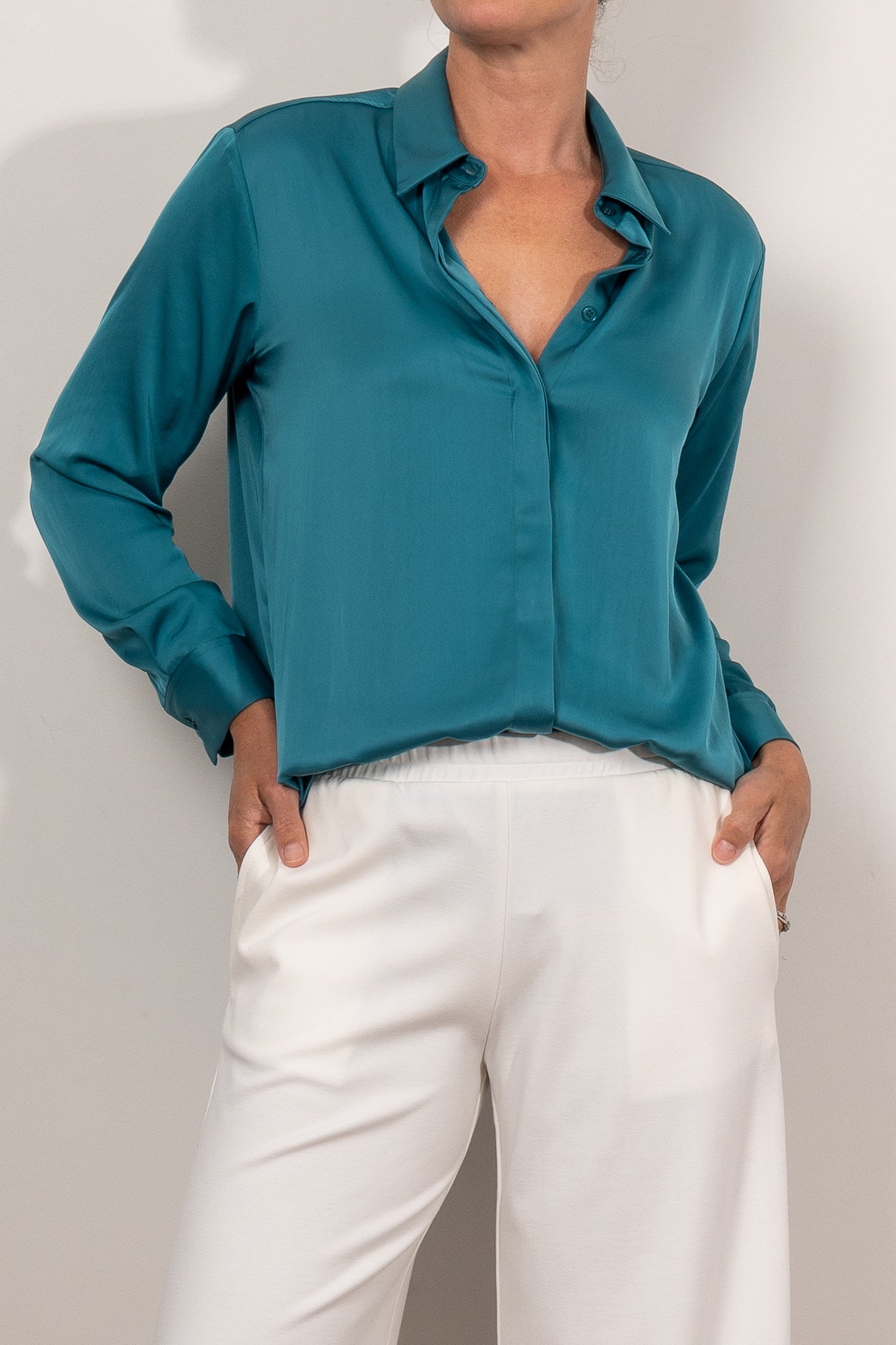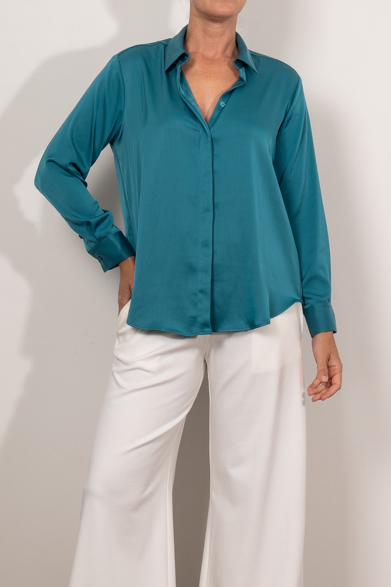 Indulge in luxury with the Mela Purdie Soft Shirt Stretch Gloss. Crafted from premium technical stretch Satin with a glass sheen, this shirt offers a timeless silhouette perfect for day to night wear. See full product description below for fabric and fit info.