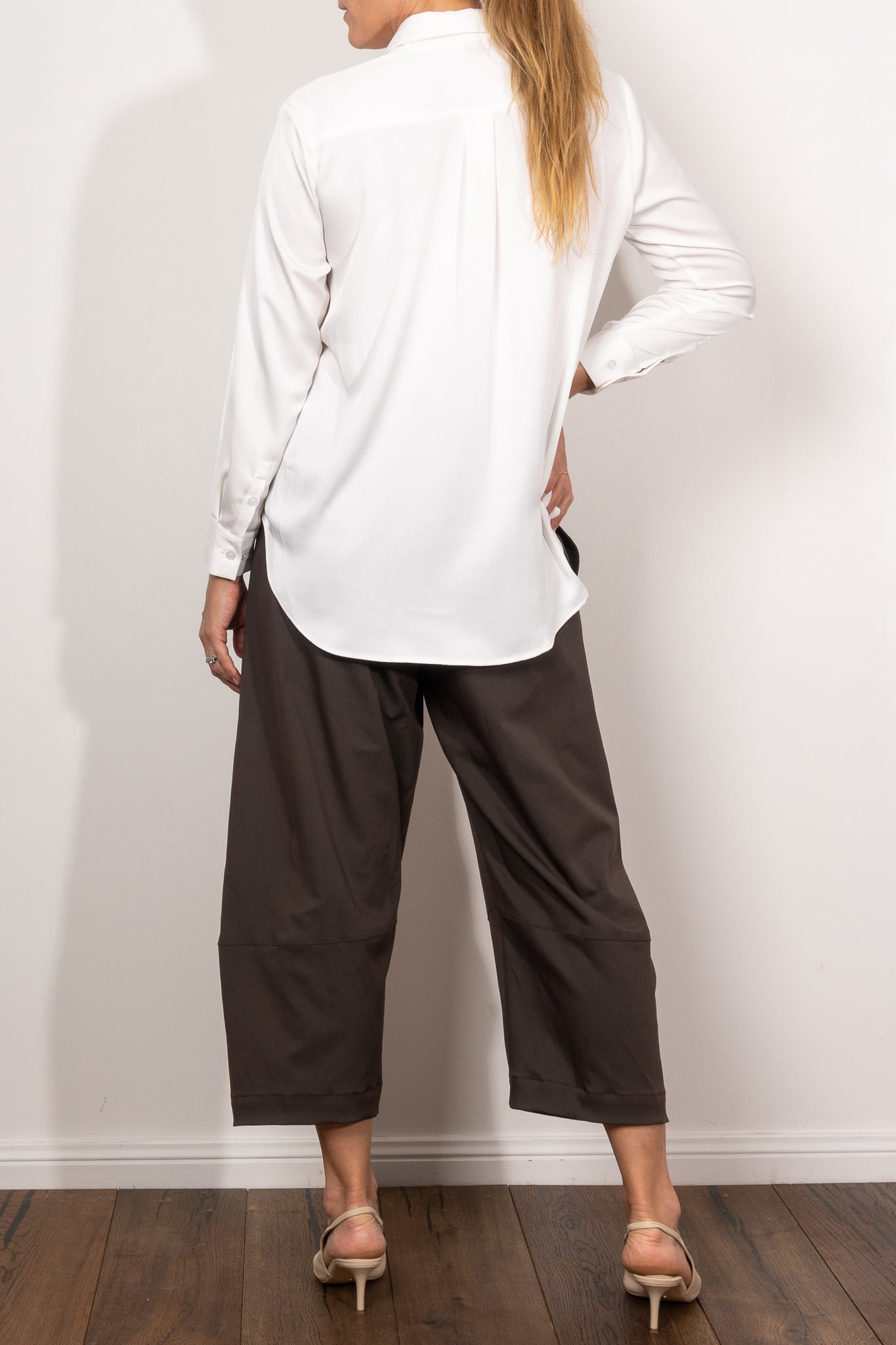 Indulge in luxury with the Mela Purdie Soft Shirt Stretch Gloss. Crafted from premium technical stretch Satin with a glass sheen, this shirt offers a timeless silhouette perfect for day to night wear. With Japanese fabrication and mechanical stretch, classic shirt collar, concealed front placket, and back yoke with pleat detailing, this shirt is designed and made in Australia for the ultimate blend of style and comfort.