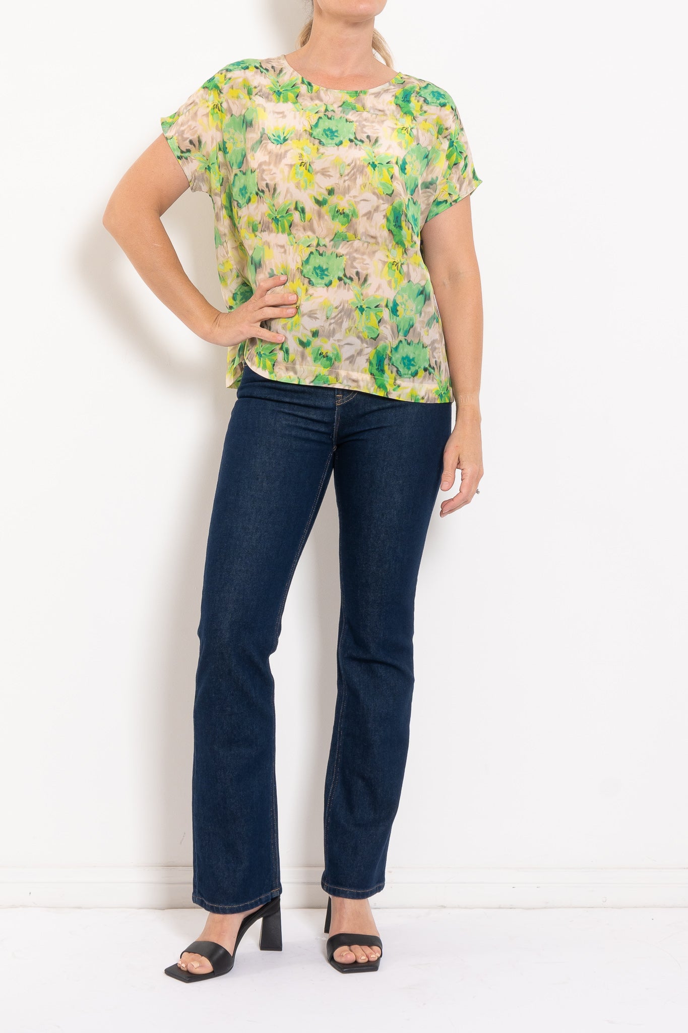 Crafted from soft-washed Silk Crepe De Chine, the Silk Lilly Print Cap Shell delivers luxe drape and luminous colour. Featuring a relaxed fit, flattering scoop neckline, back pleat and cap sleeves, it’s as versatile as it is striking. Pair it with tailored pants and heels for events, tuck into a skirt for the office, or style back with linen shorts and sandals for breezy summer days.