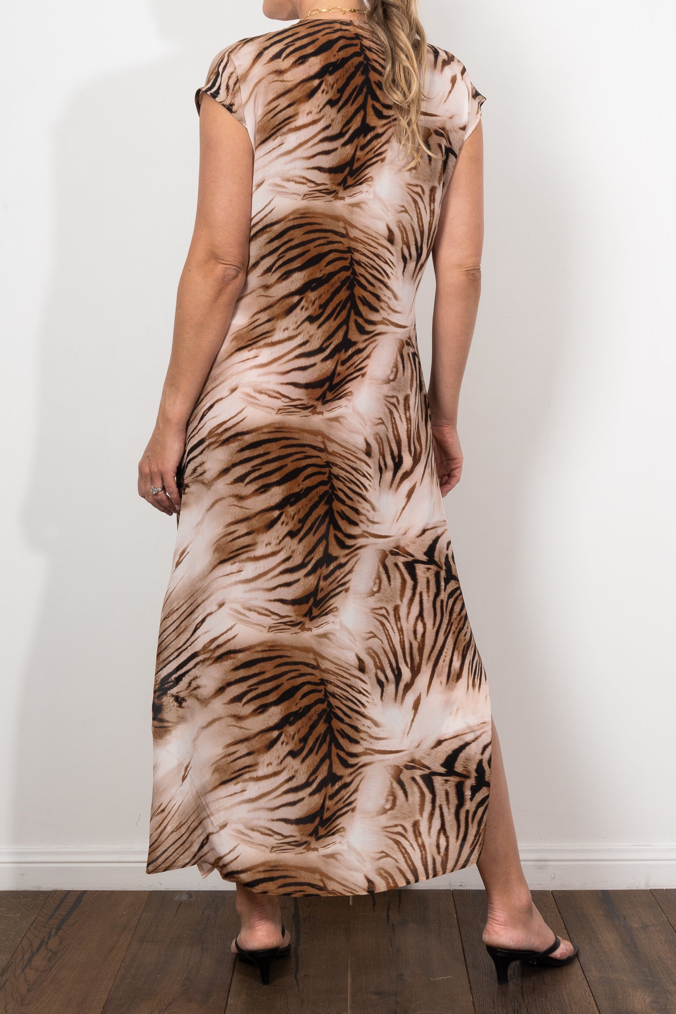 Mela Purdie Maxi Slice Dress Silk Tiger Print