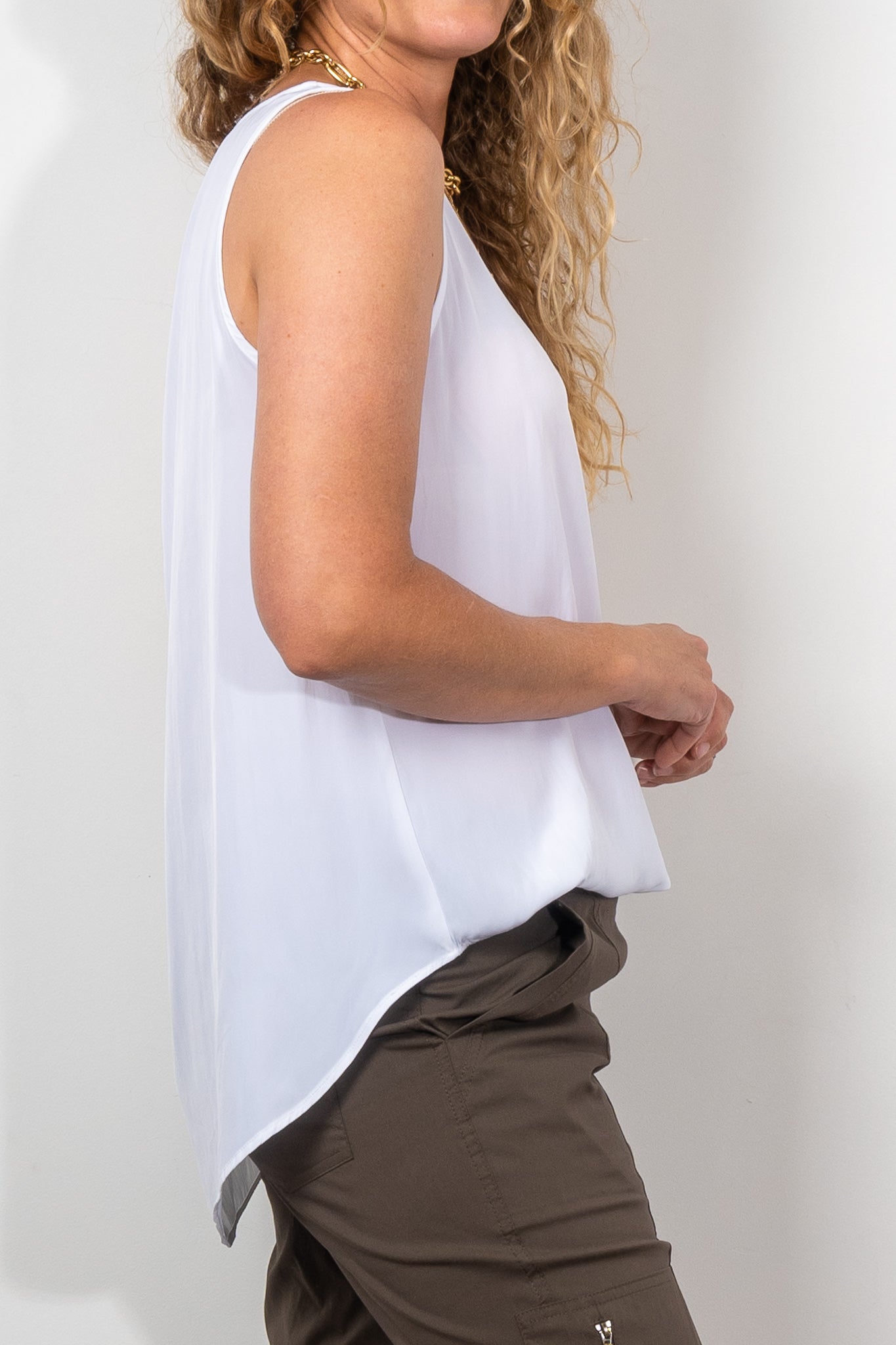 Look chic and timeless in the Audrey Tank from Mela Purdie. The relaxed fit and double-layered front create a flattering silhouette, while the woven non-stretch fabric ensures comfort. Splits at the side seams elevate the style. Step out in style with this Australian-made essential.